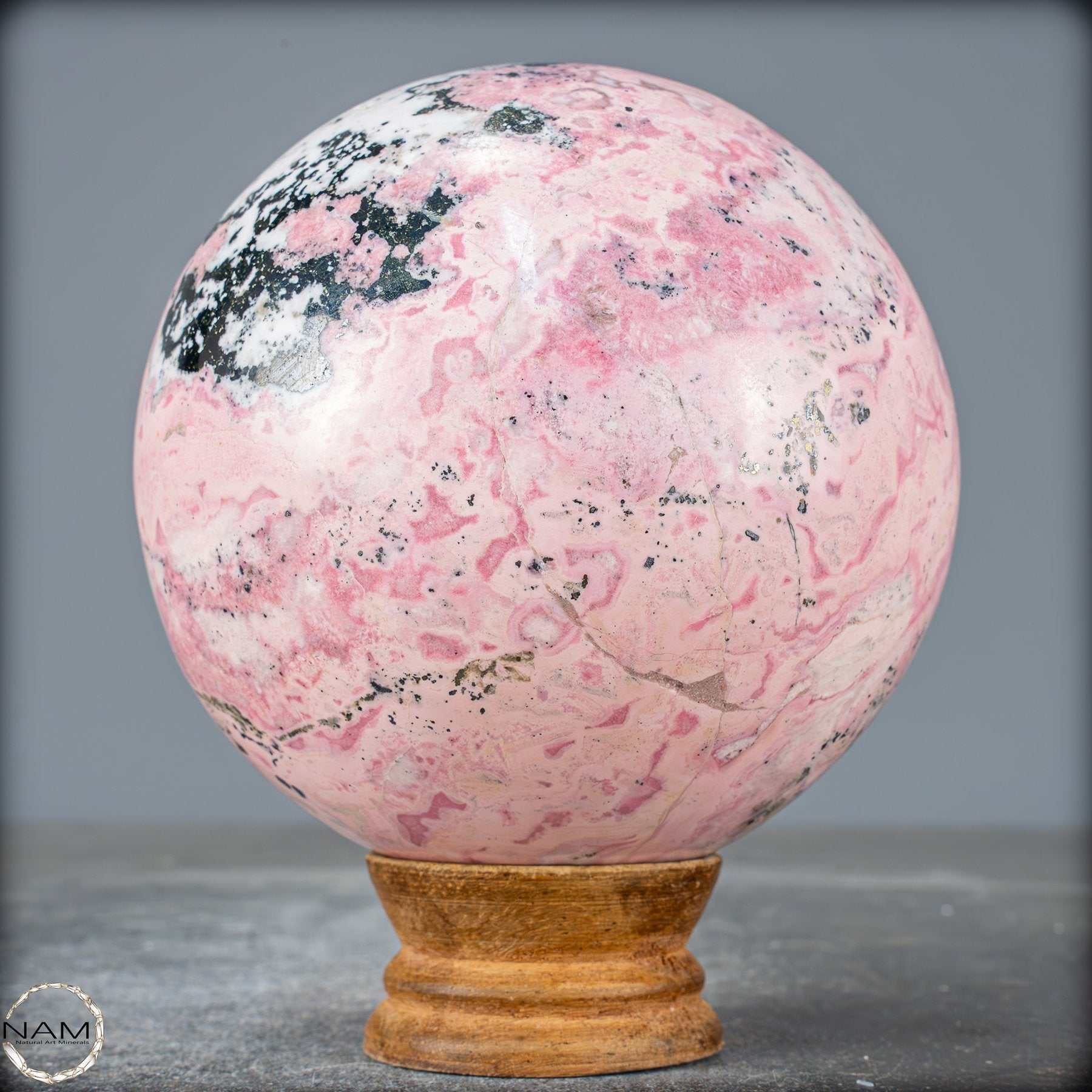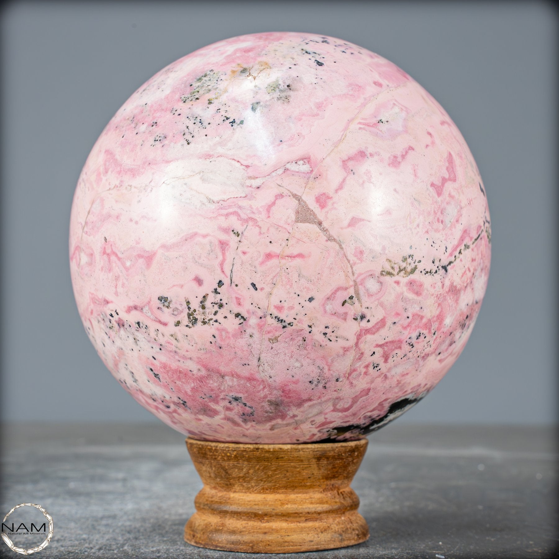 Natürliche Rhodonit-Kristall Kugel mit Pyrit aus Peru- 1780,51g