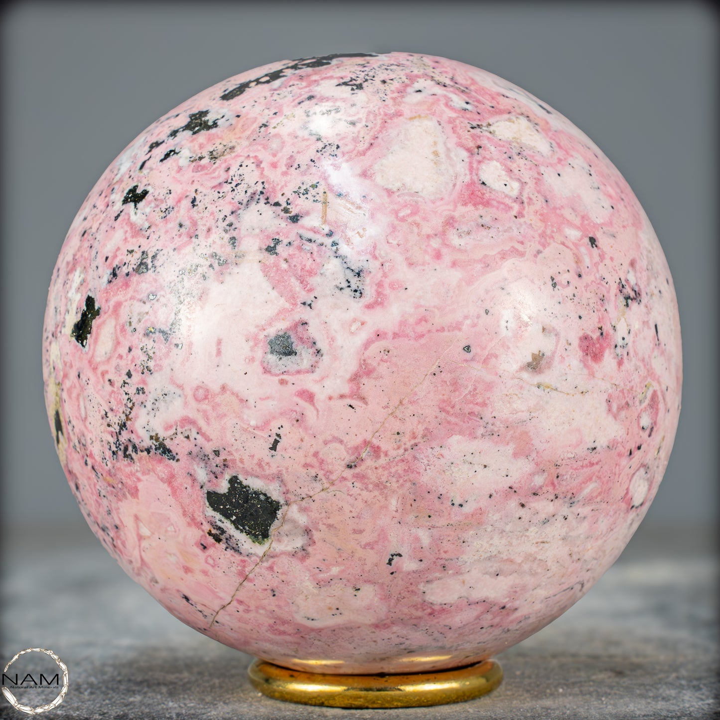 Natürliche Rhodonit-Kristall Kugel mit Pyrit aus Peru- 1920,41g - 106mm