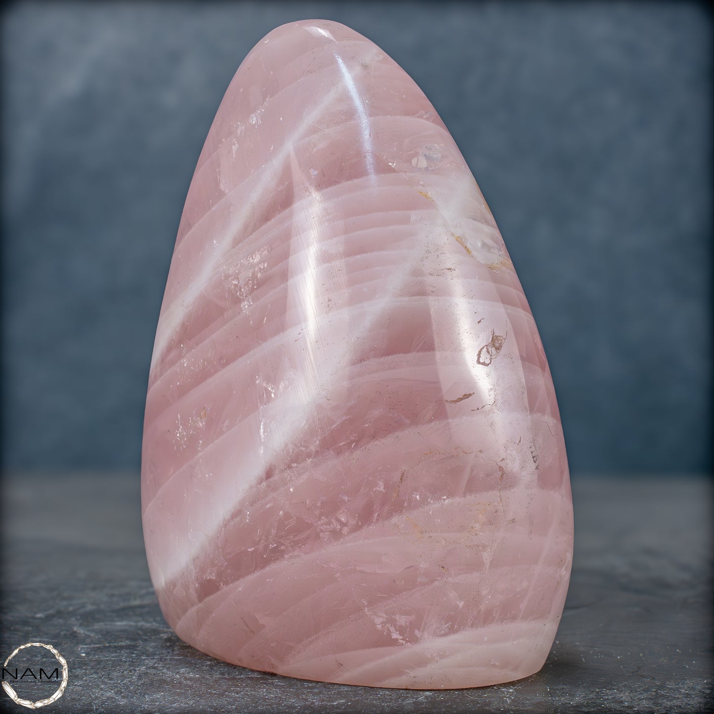 Faszinierender Rosenquarz, perfekt für Sammler sowie jedes zuhause. Dieser natürliche Rosenquarz ist der Inbegriff von Essenz sowie Liebe und verwandelt jeden Raum in einen ganz besonderen Ort der Gelassenheit. Die wunderschön polierte Oberfläche des Rosenquarzes strahlt in zarten Rosatönen.