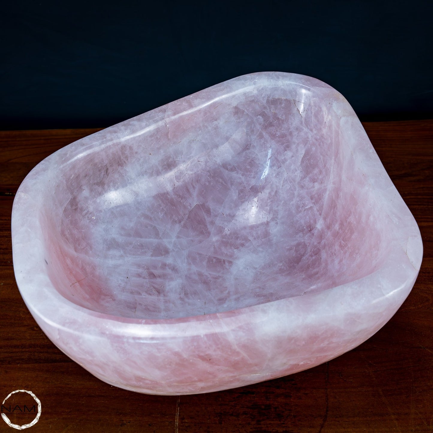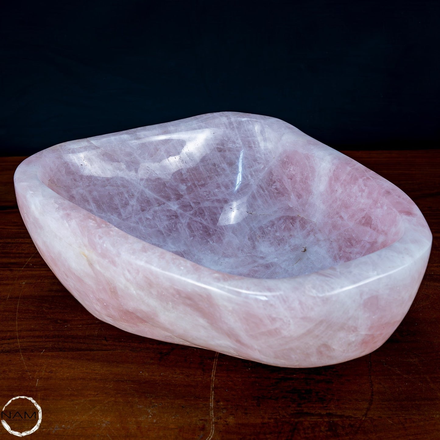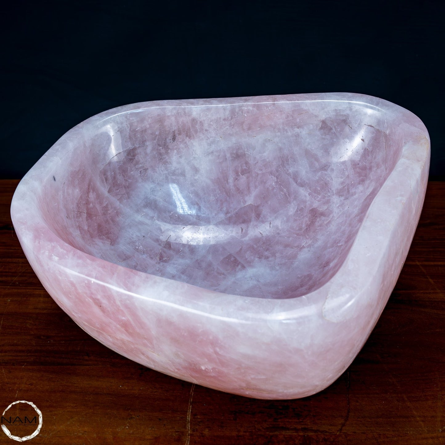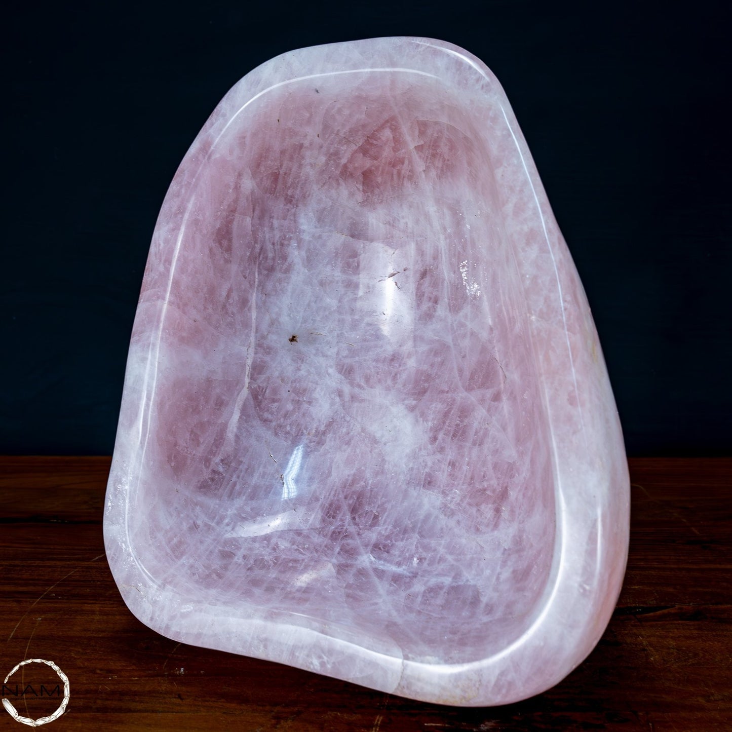 Der Rosenquarz wird traditionell mit Liebe, Frieden und Heilung assoziiert und macht diese Schüssel ideal für spirituelle Zwecke oder als einzigartiges Herzstück in Ihrer Sammlung. Ob als dekoratives Element, für energetische Rituale oder als luxuriöses Geschenk – diese Schüssel ist ein Statement der Exklusivität und Schönheit der Natur.