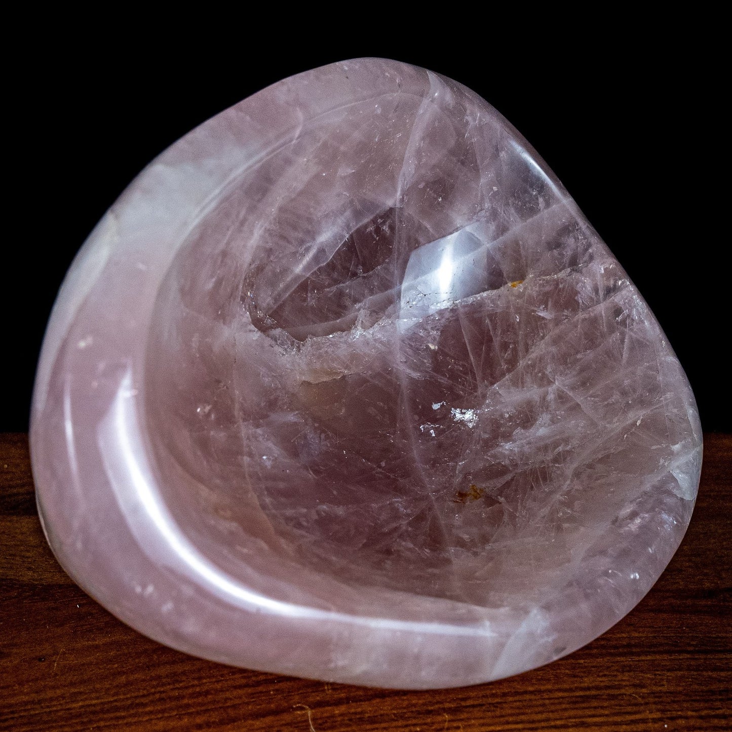 Diese exquisite Schüssel besteht aus hochwertigem Rosenquarz und stammt aus Brasilien. Rosenquarz ist bekannt für seine zarte, rosafarbene Tönung, die von blassem Rosa bis hin zu einem tieferen, rötlichen Rosa reicht. Die Schüssel zeigt die charakteristische durchscheinende Qualität und die feinen, natürlichen Einschlüsse, die Rosenquarz so einzigartig machen.