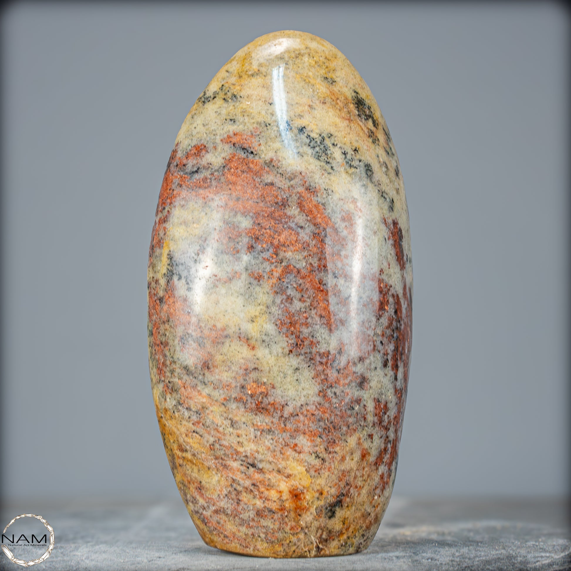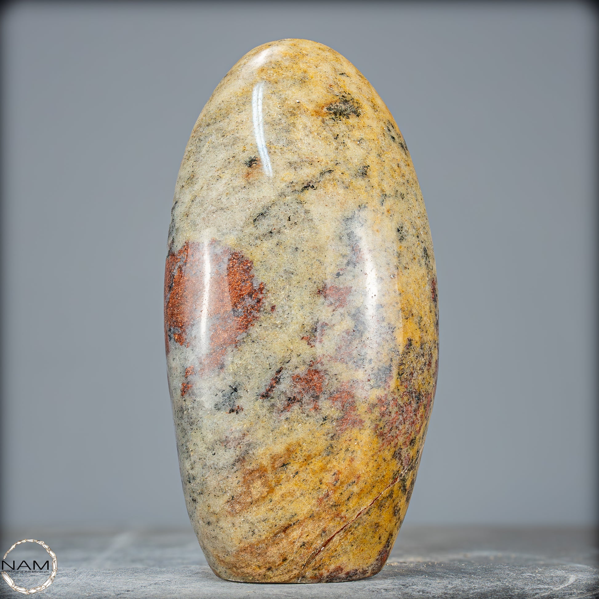 Diese Freiform ist nicht nur ein optisches Highlight, sondern lädt mit ihrer warmen, erdigen Energie dazu ein, neue Wege mit Klarheit und innerer Stärke zu beschreiten. Ideal als dekoratives Unikat oder als energetischer Begleiter im Alltag.