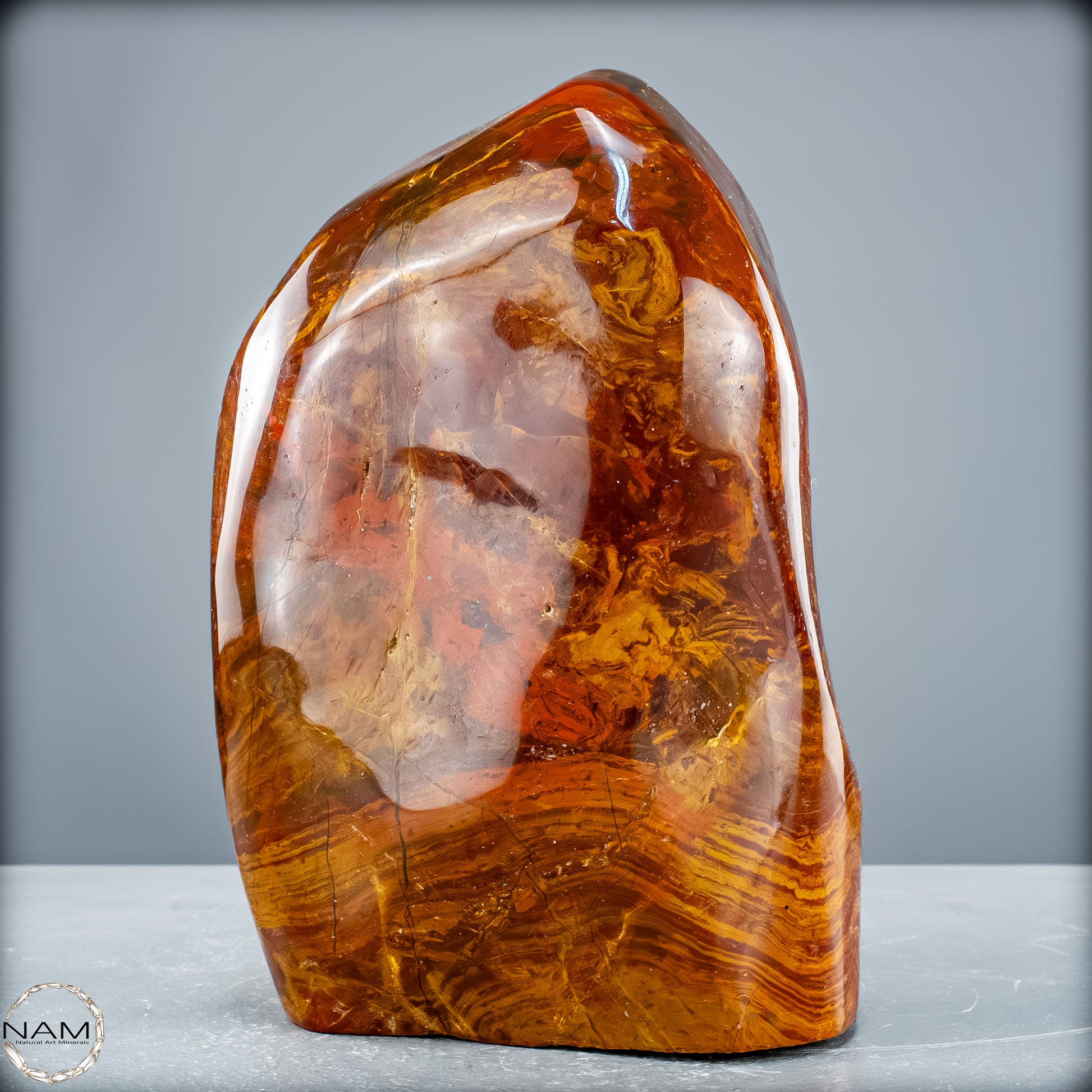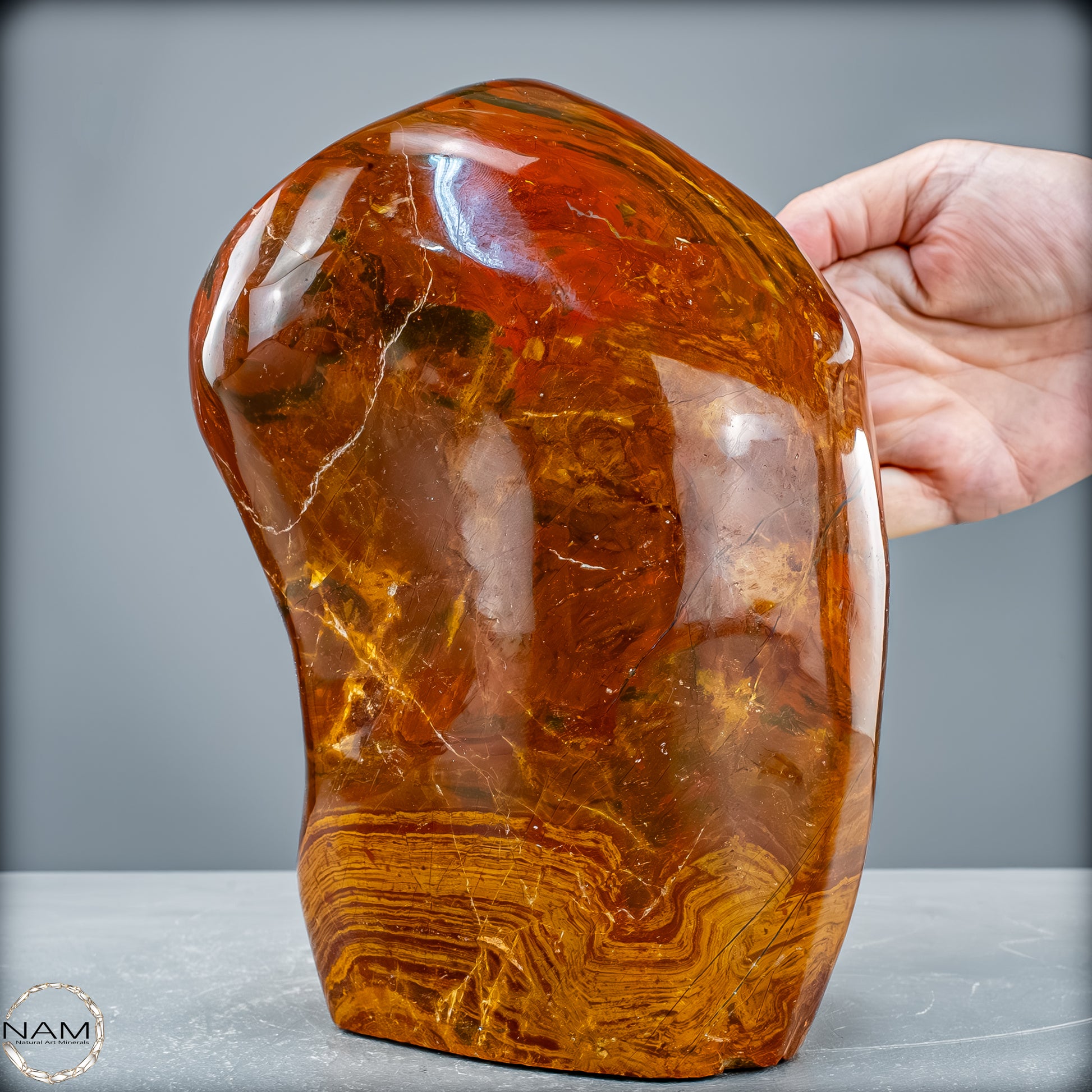 Diese Jaspis-Freiform vereint archaische Kraft mit natürlicher Eleganz – ein Stein, der gleichzeitig erdet und stärkt, beruhigt und belebt. Ob als zentrales Dekorationsobjekt, als spiritueller Begleiter oder energetisches Kraftfeld: Roter Jaspis bringt Feuer, Fokus und Präsenz in jeden Raum.