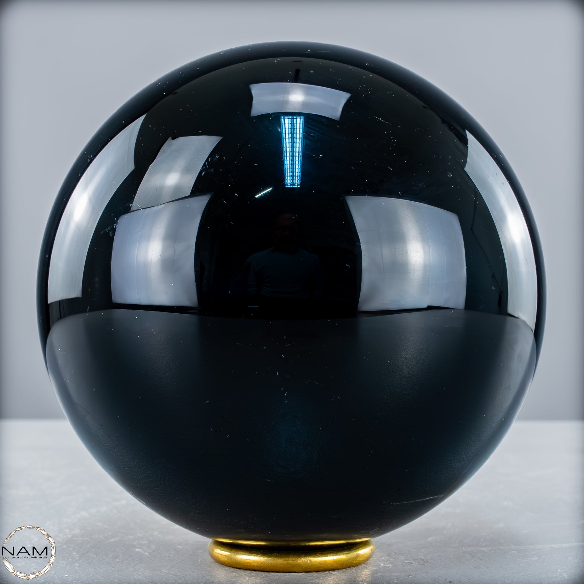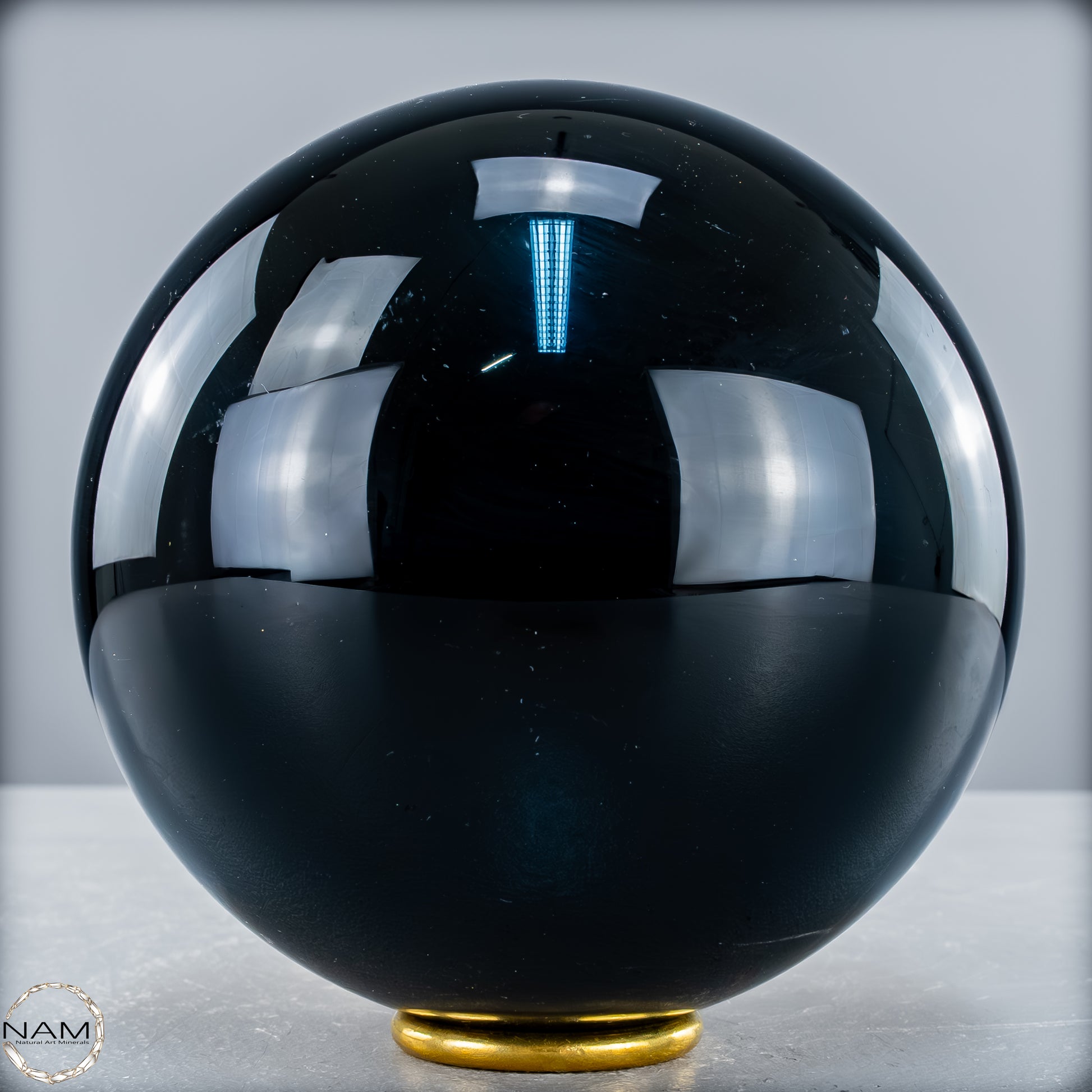 Der Schwarze Obsidian-Edelstein, ein Naturprodukt von atemberaubender Eleganz, wurde kunstvoll in eine beruhigende glatte runde Form gearbeitet, das sicherlich ein schönes Element in Ihrem Haus darstellt.