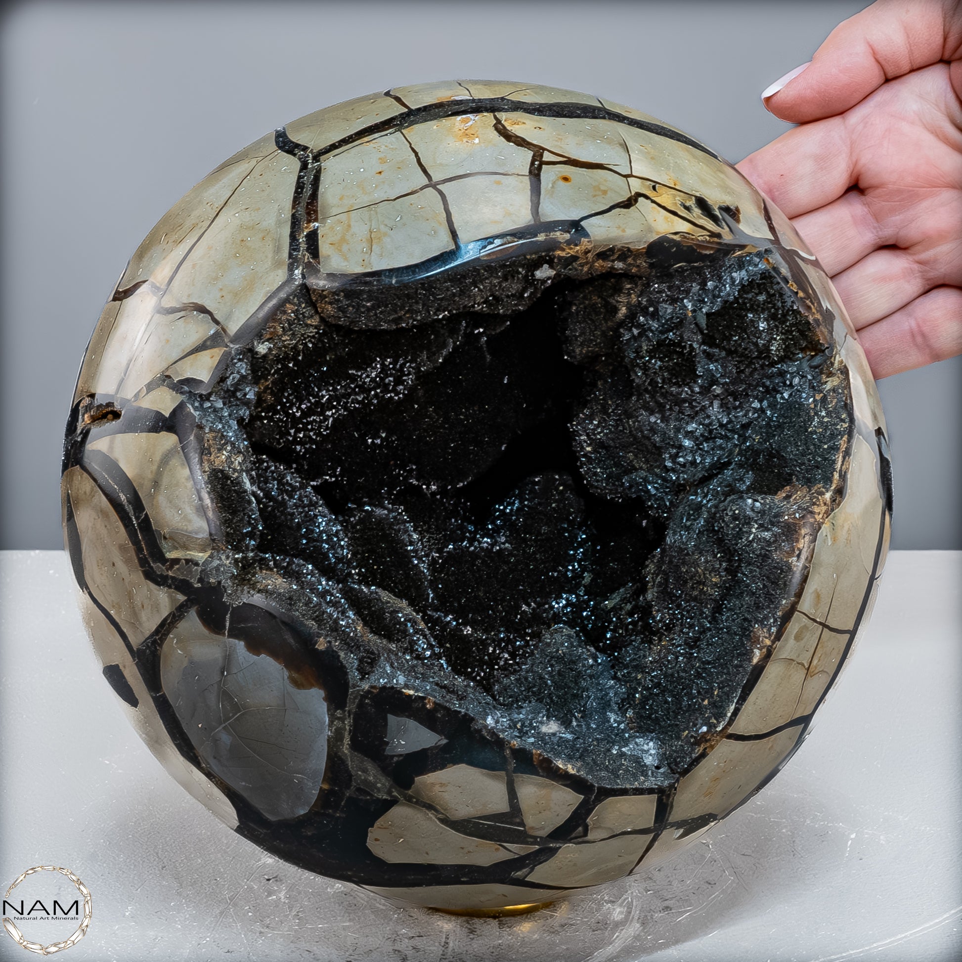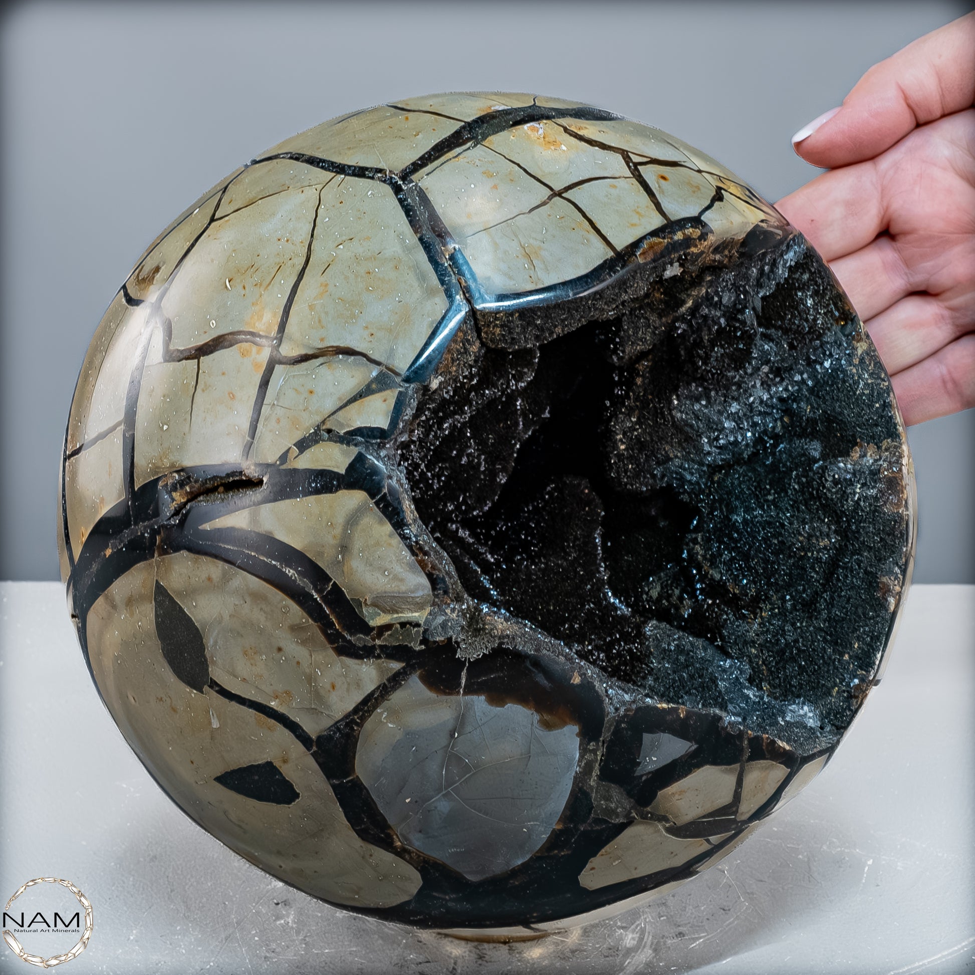 Natürliche Septarien Druse-Kugel mit Calzit Kristallen - 8026,93 g