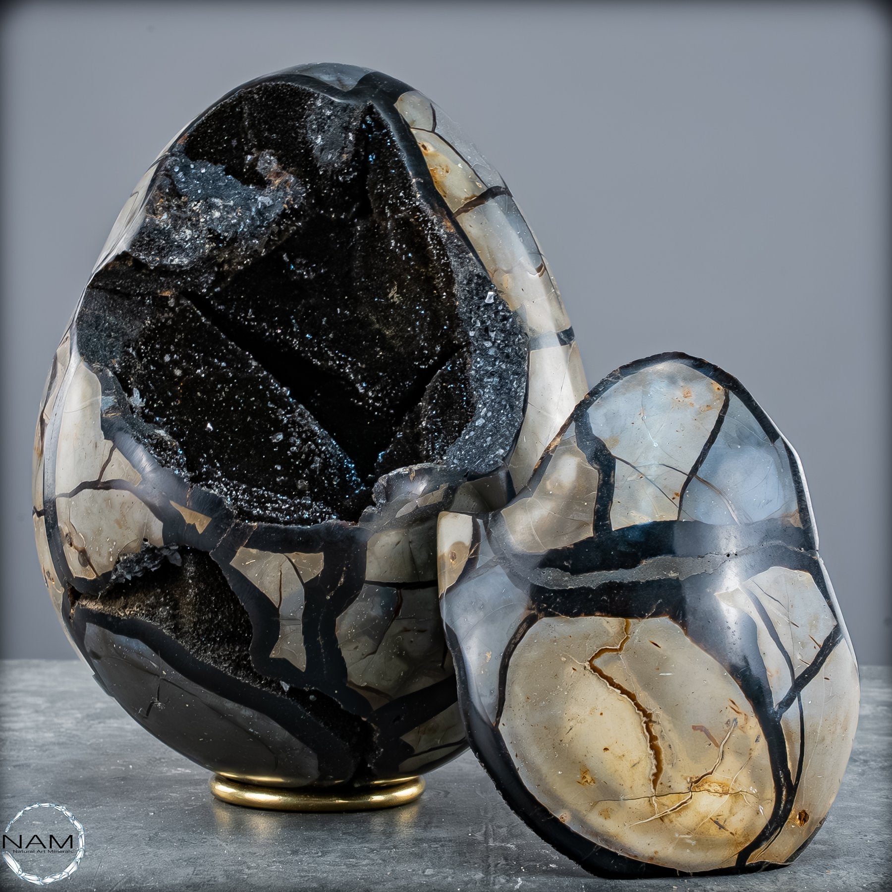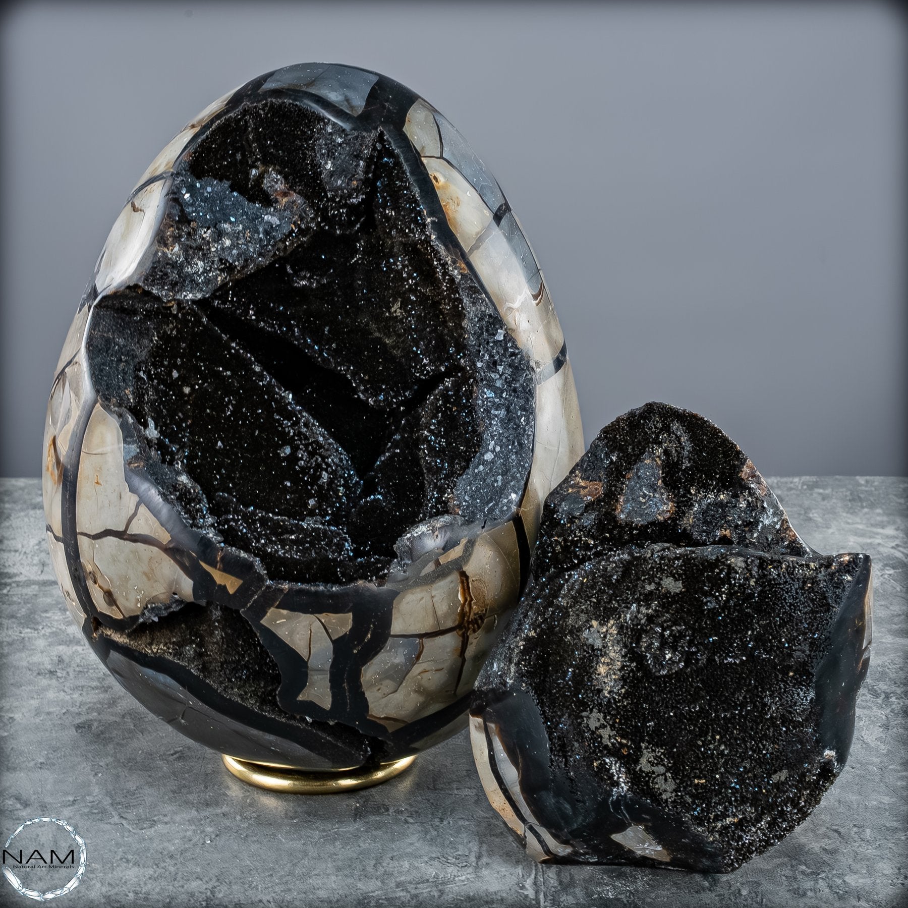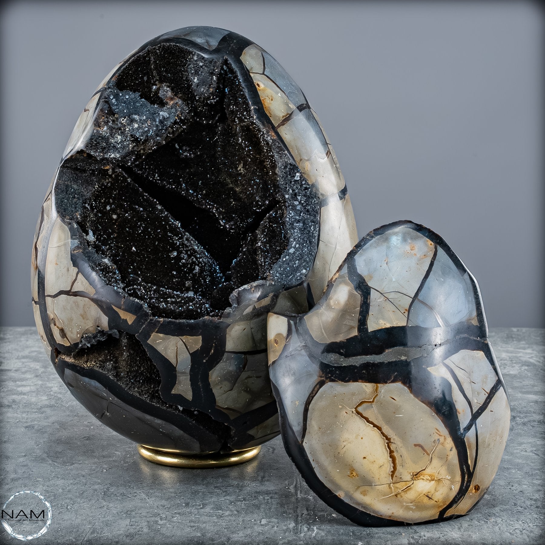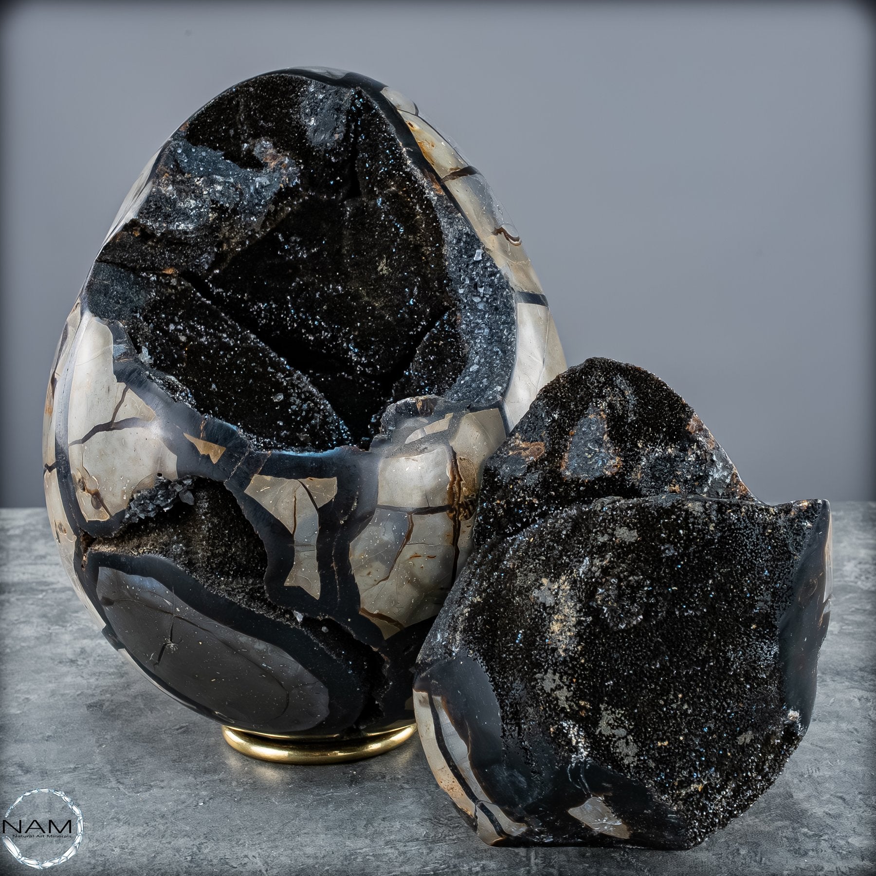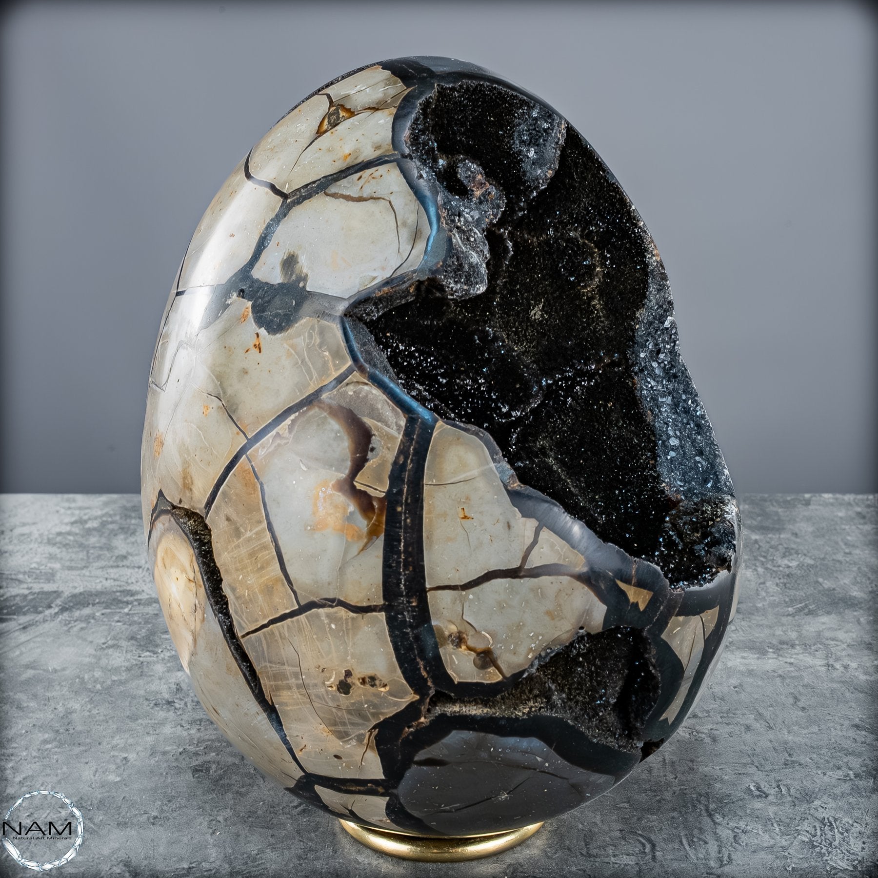 Traumhafte Septarien-Druse – Auch Drachen Stein genannt – in farbintensiver Höchster Qualität aus Madagaskar. Sie erhalten immer das in den Bildern beschriebene Unikat Wunderschönes, gefüllt mit Aragonit-Quarz-, Baryt-, Siderit- oder Pyrit-Kristallen werden eingehüllt von einer Schale aus organischem Ton mit Calcit Herkunft Madagaskar. Gönnen Sie sich oder Ihren Liebsten ein fantastisches Farbenspiel aus dem Wunderwerk Natur.