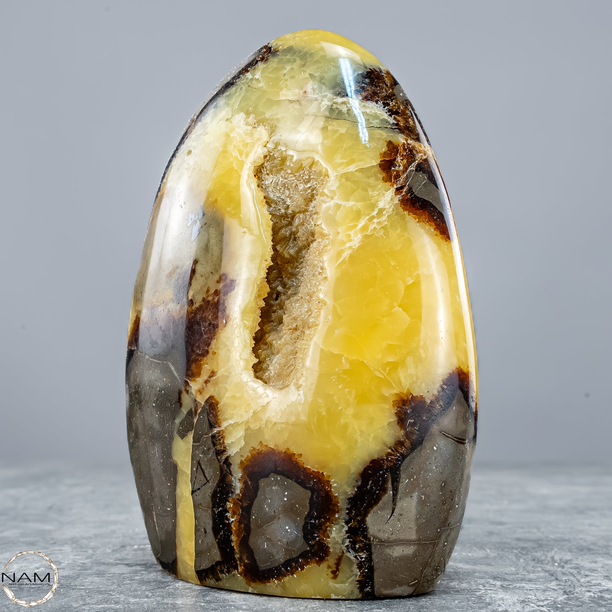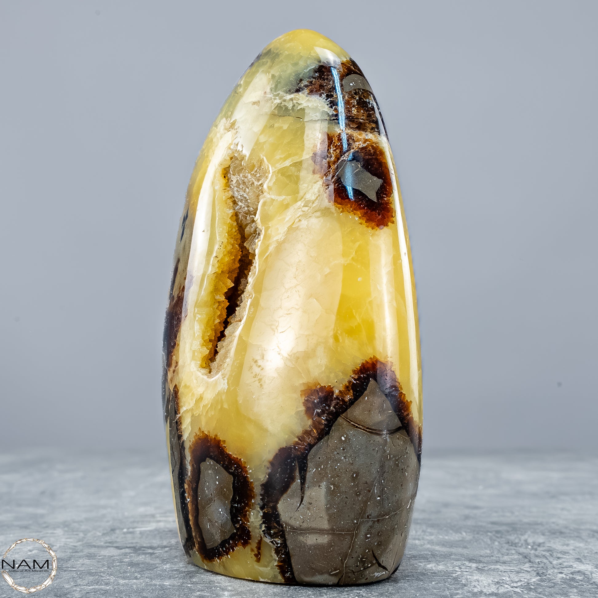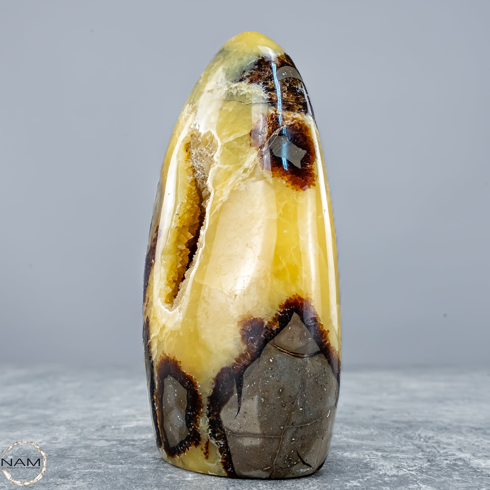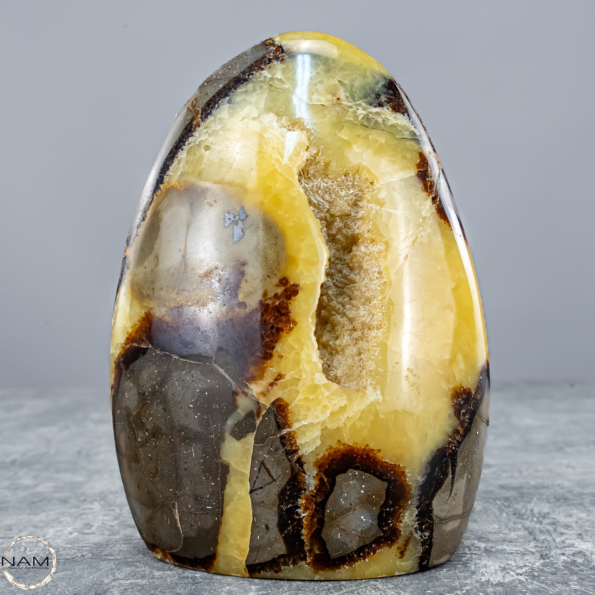 Natürliche Septarien-Kristall Freiform mit Druse - 604,81g