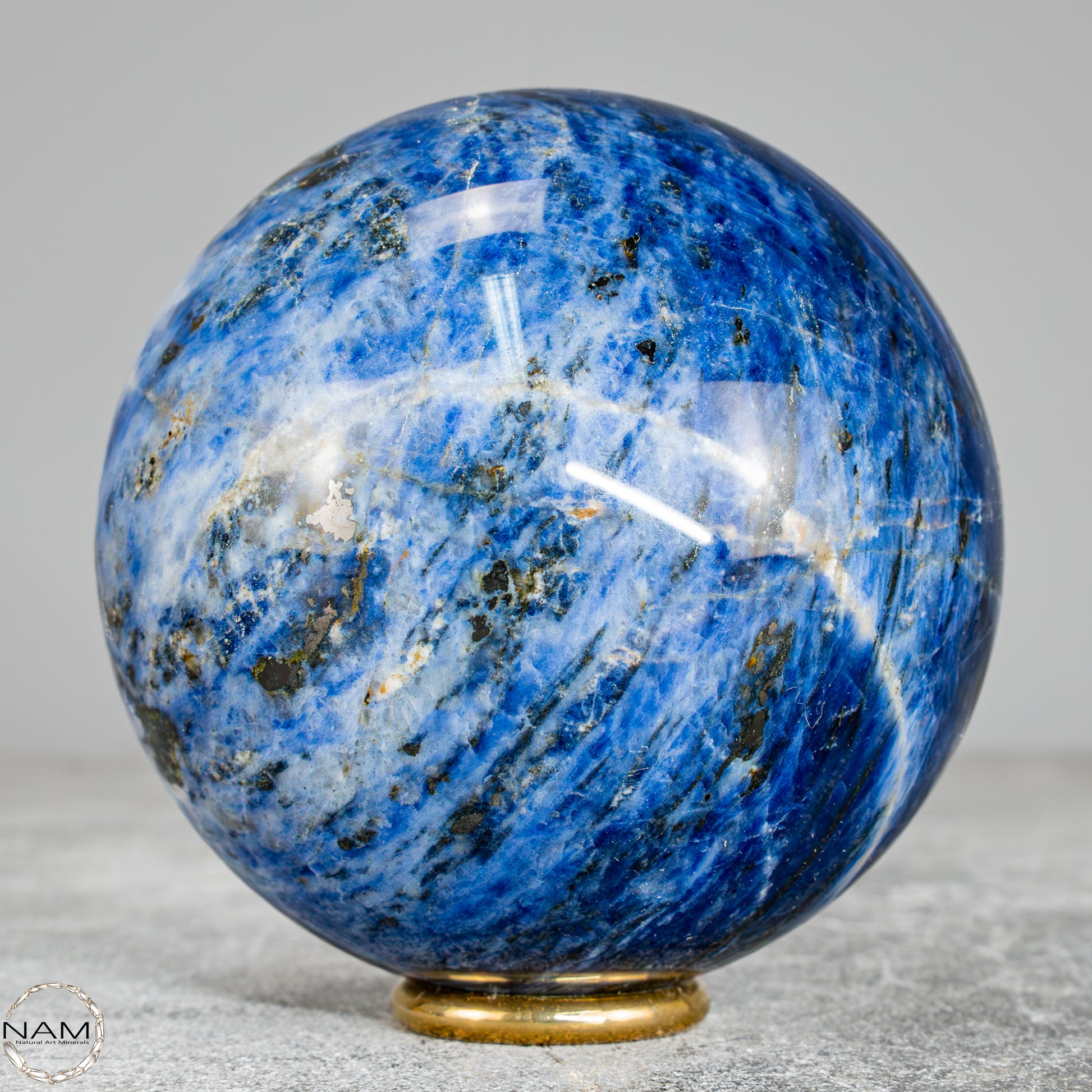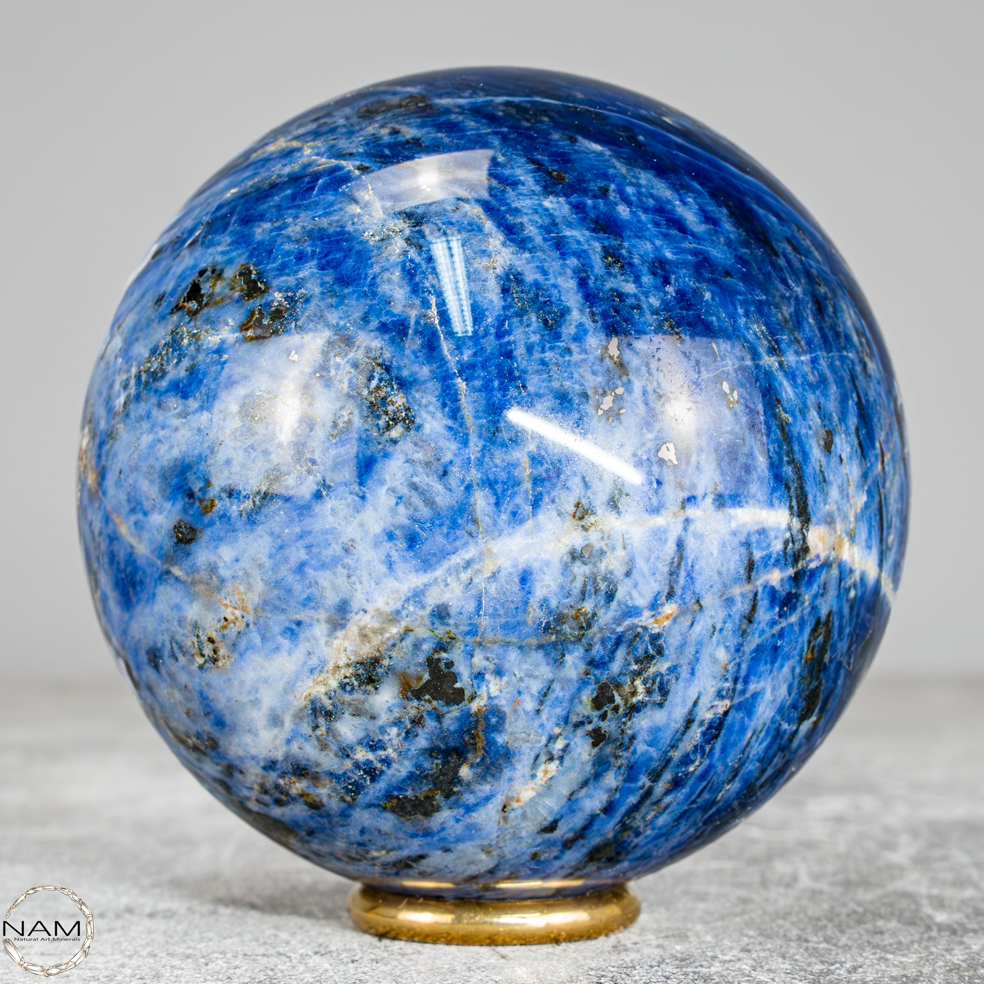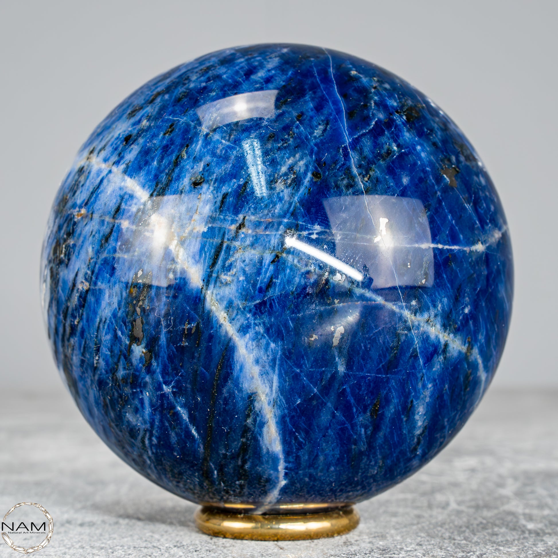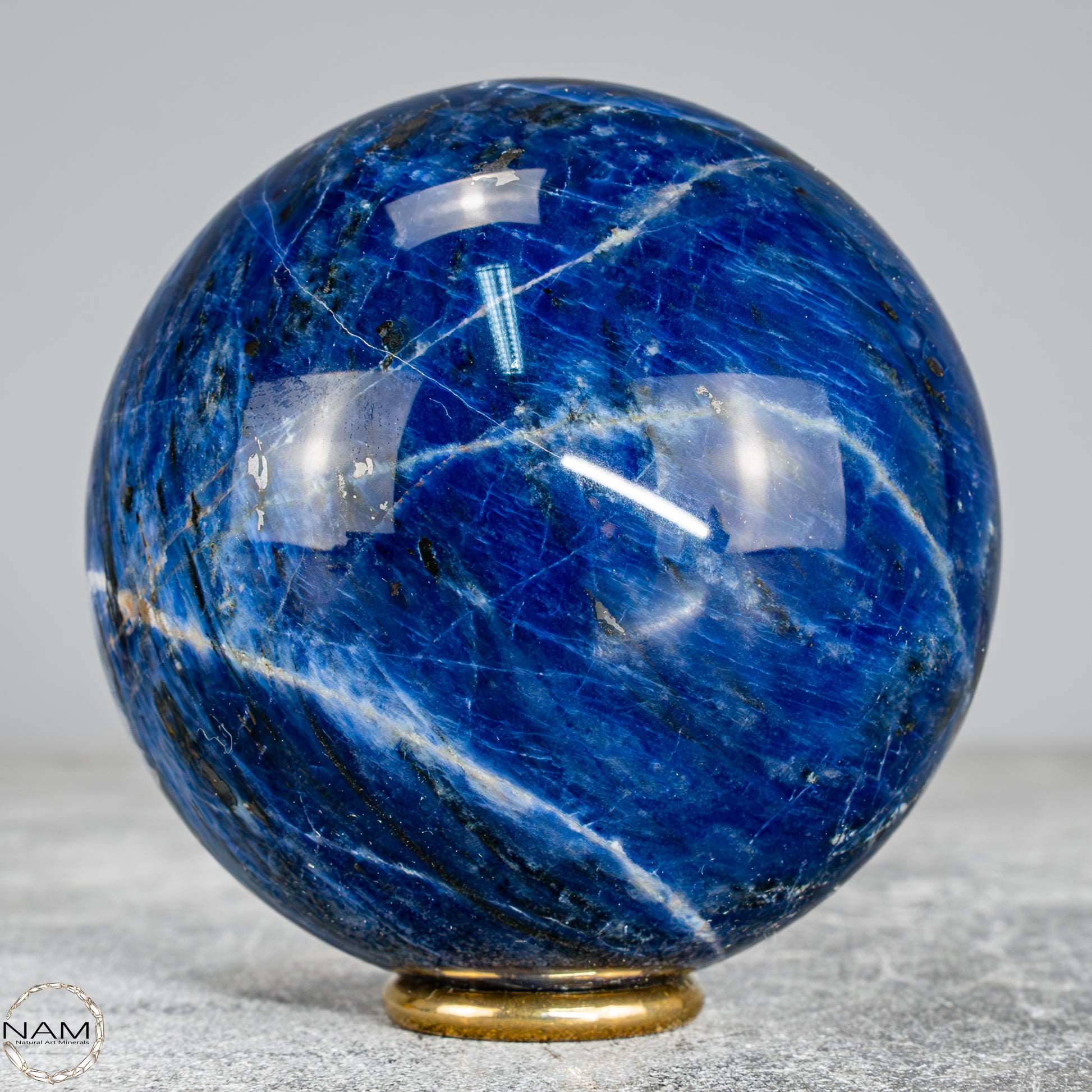 Diese wunderschöne Kugel besteht aus Sodalith, einem tiefblauen Mineral mit weißen Adern, das nicht nur optisch an einen nächtlichen Sternenhimmel erinnert, sondern auch für seine spirituelle Bedeutung geschätzt wird – Sodalith steht für Klarheit, Rationalität und Intuition, stärkt das Selbstbewusstsein und fördert die innere Wahrheit, weshalb er oft dem Stirnchakra zugeordnet wird.