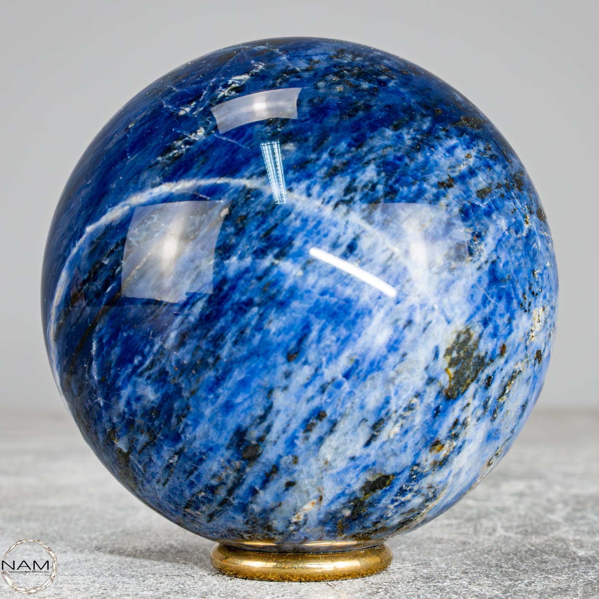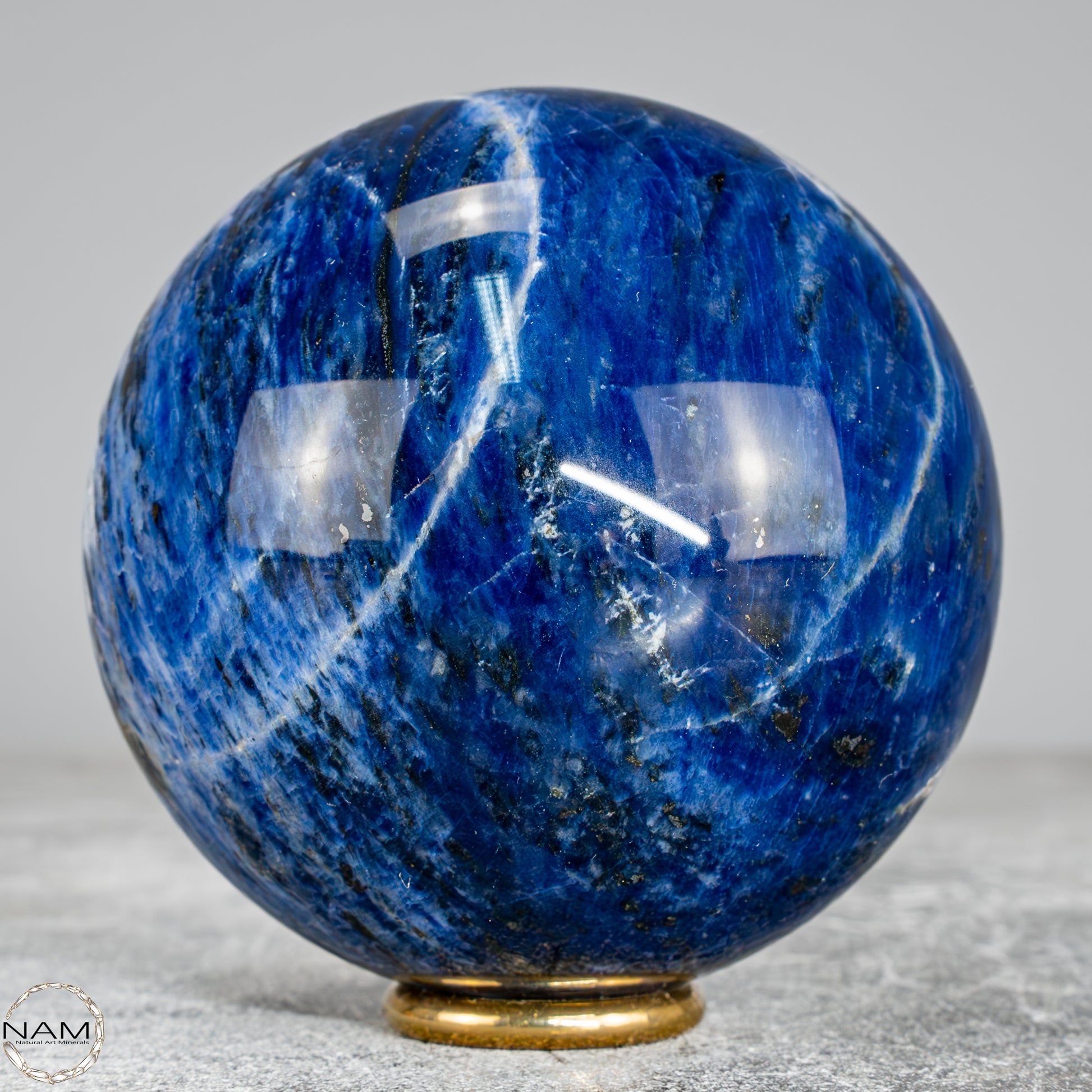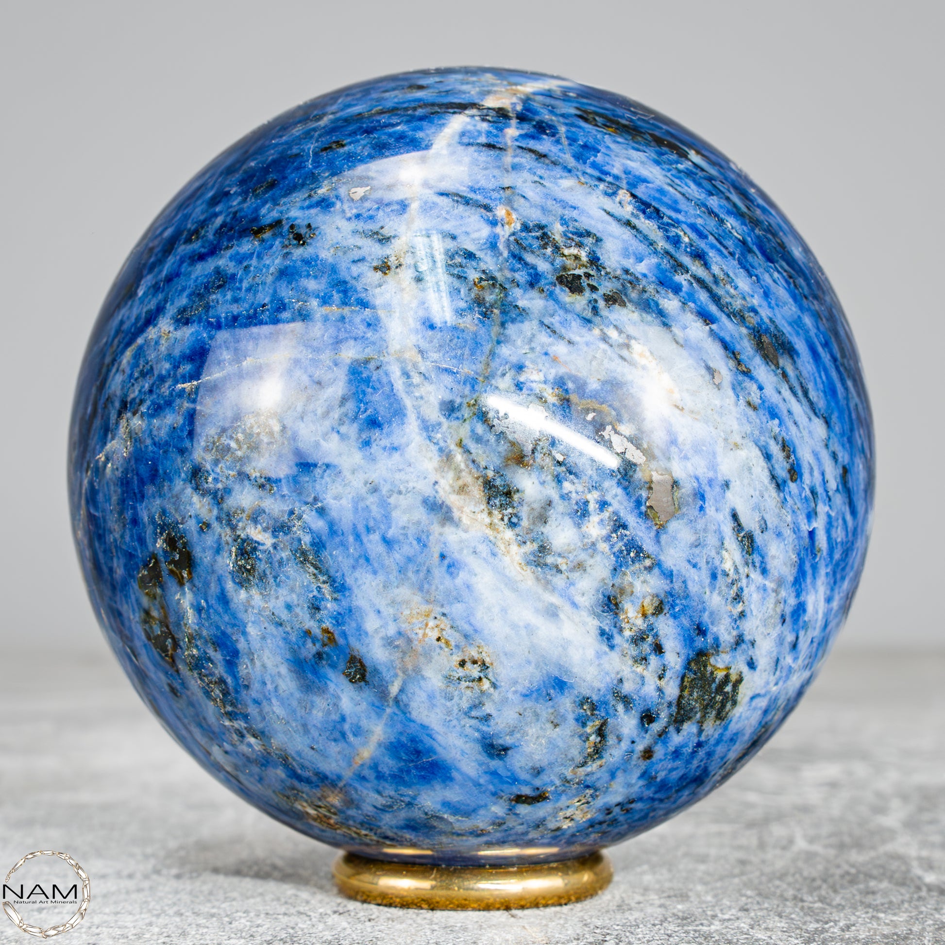 Diese wunderschöne Kugel besteht aus Sodalith, einem tiefblauen Mineral mit weißen Adern, das nicht nur optisch an einen nächtlichen Sternenhimmel erinnert, sondern auch für seine spirituelle Bedeutung geschätzt wird – Sodalith steht für Klarheit, Rationalität und Intuition, stärkt das Selbstbewusstsein und fördert die innere Wahrheit, weshalb er oft dem Stirnchakra zugeordnet wird.