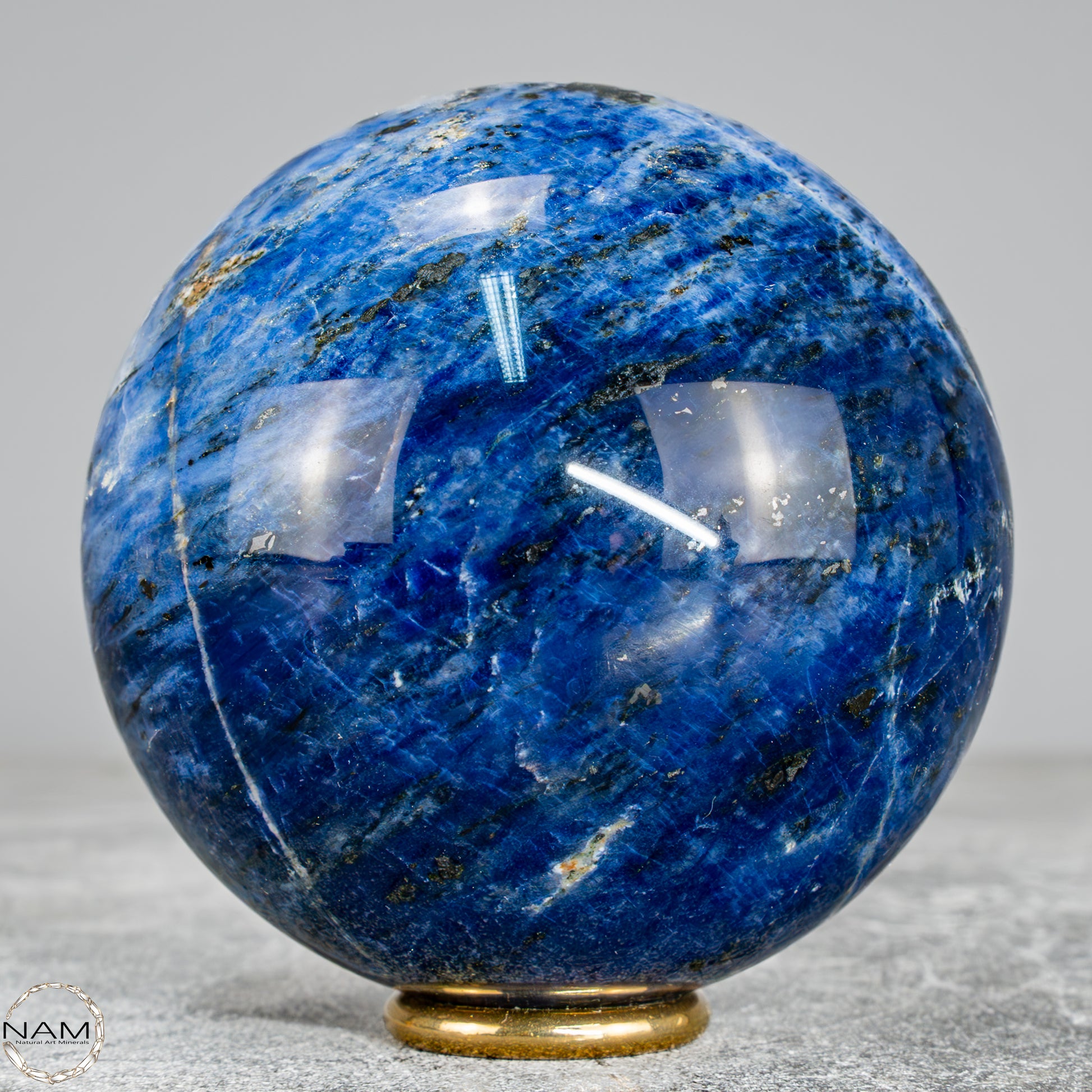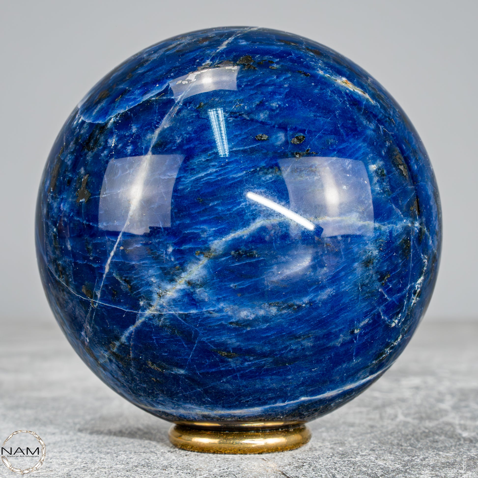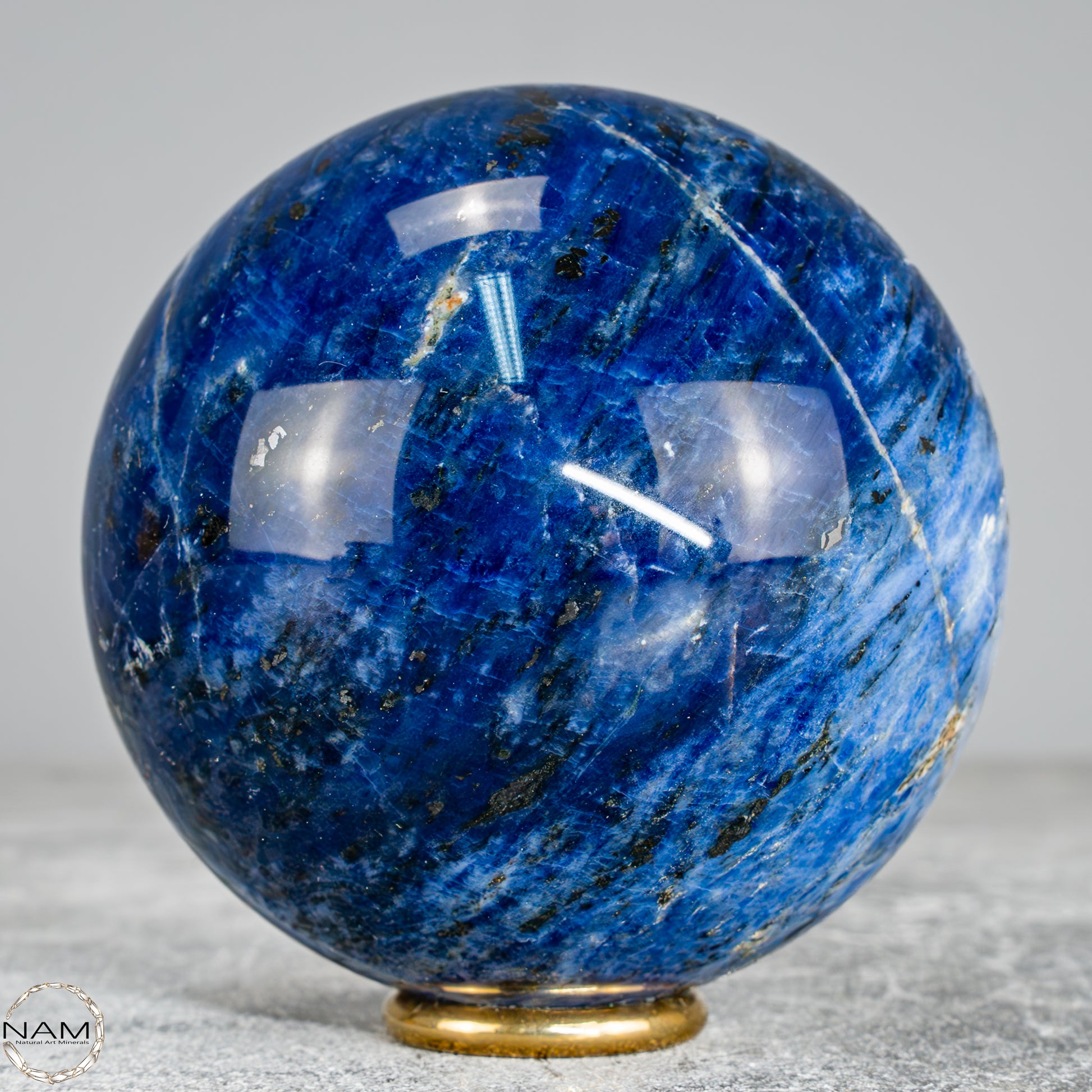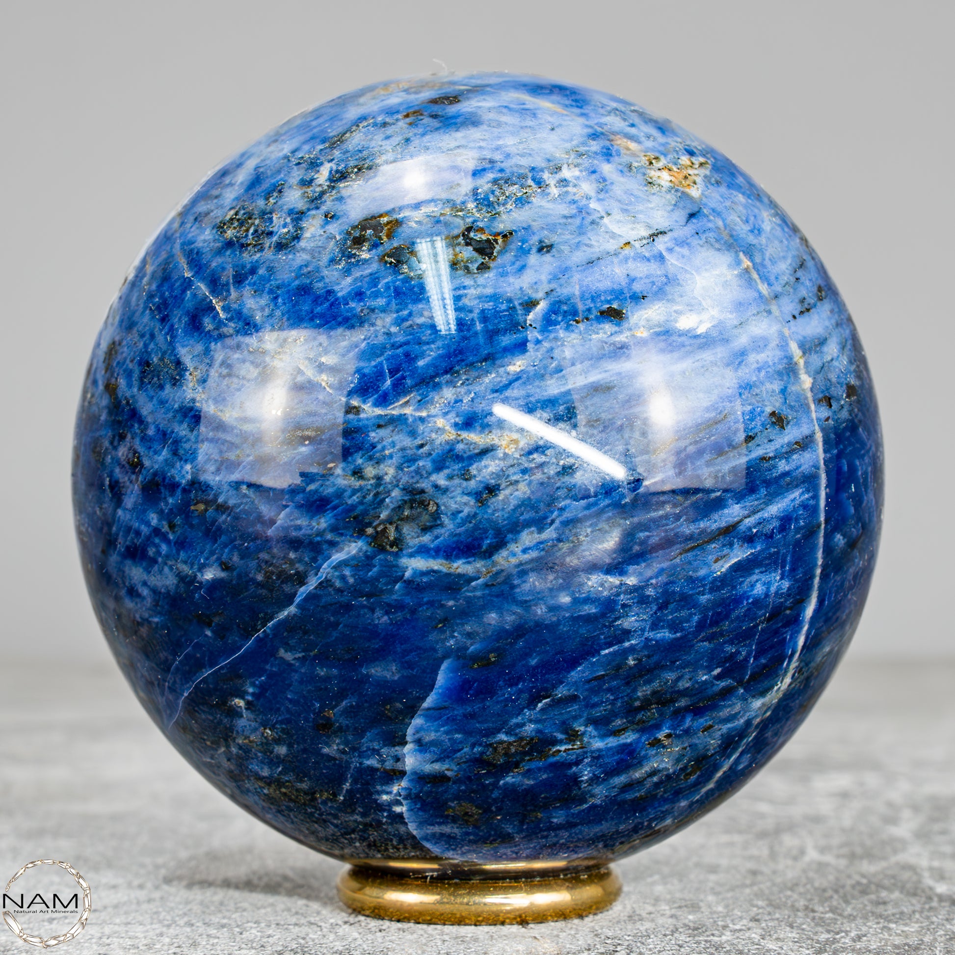 Diese wunderschöne Kugel besteht aus Sodalith, einem tiefblauen Mineral mit weißen Adern, das nicht nur optisch an einen nächtlichen Sternenhimmel erinnert, sondern auch für seine spirituelle Bedeutung geschätzt wird – Sodalith steht für Klarheit, Rationalität und Intuition, stärkt das Selbstbewusstsein und fördert die innere Wahrheit, weshalb er oft dem Stirnchakra zugeordnet wird.