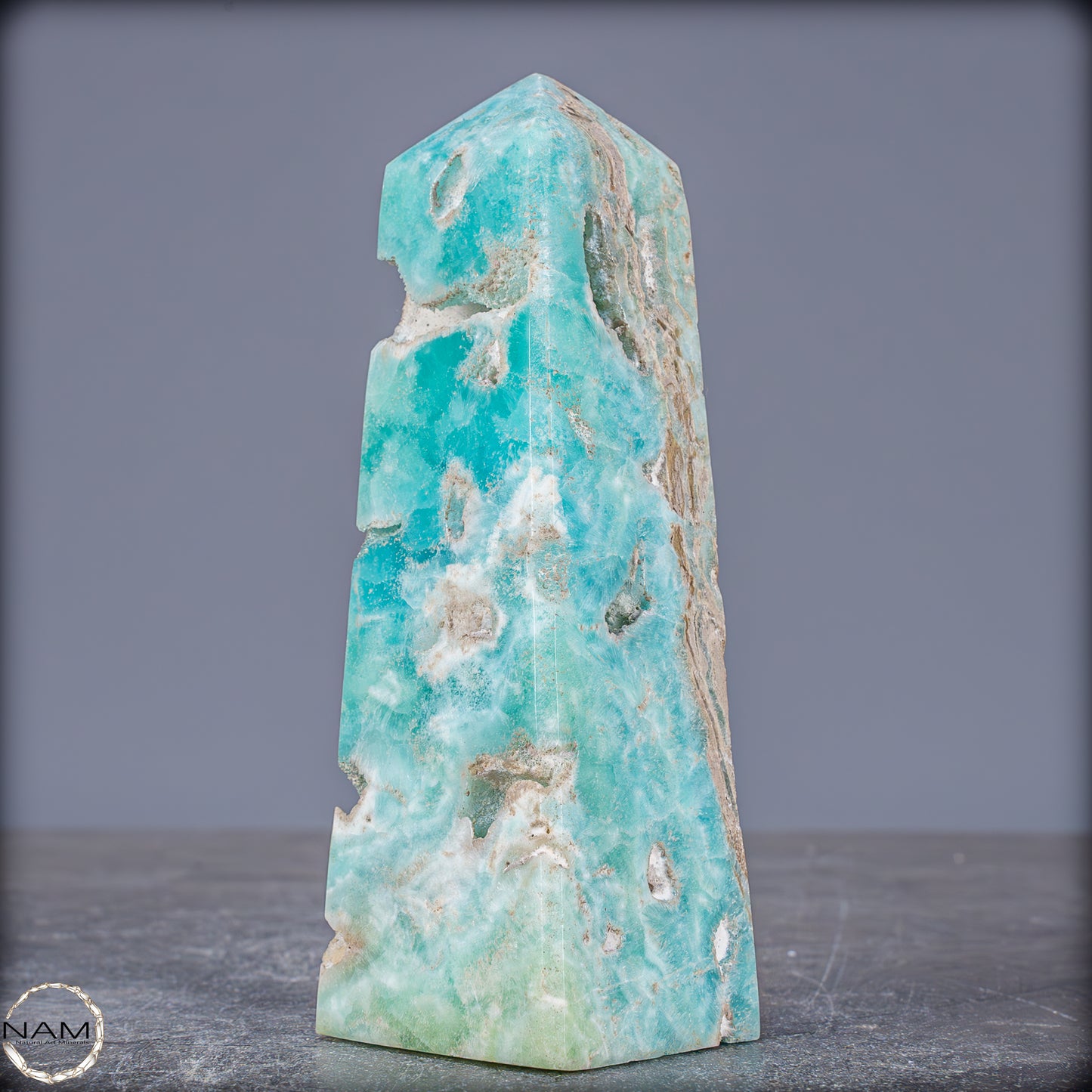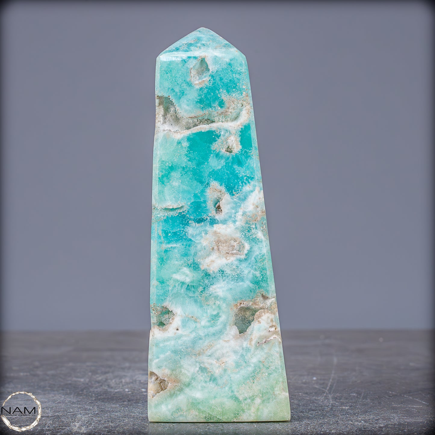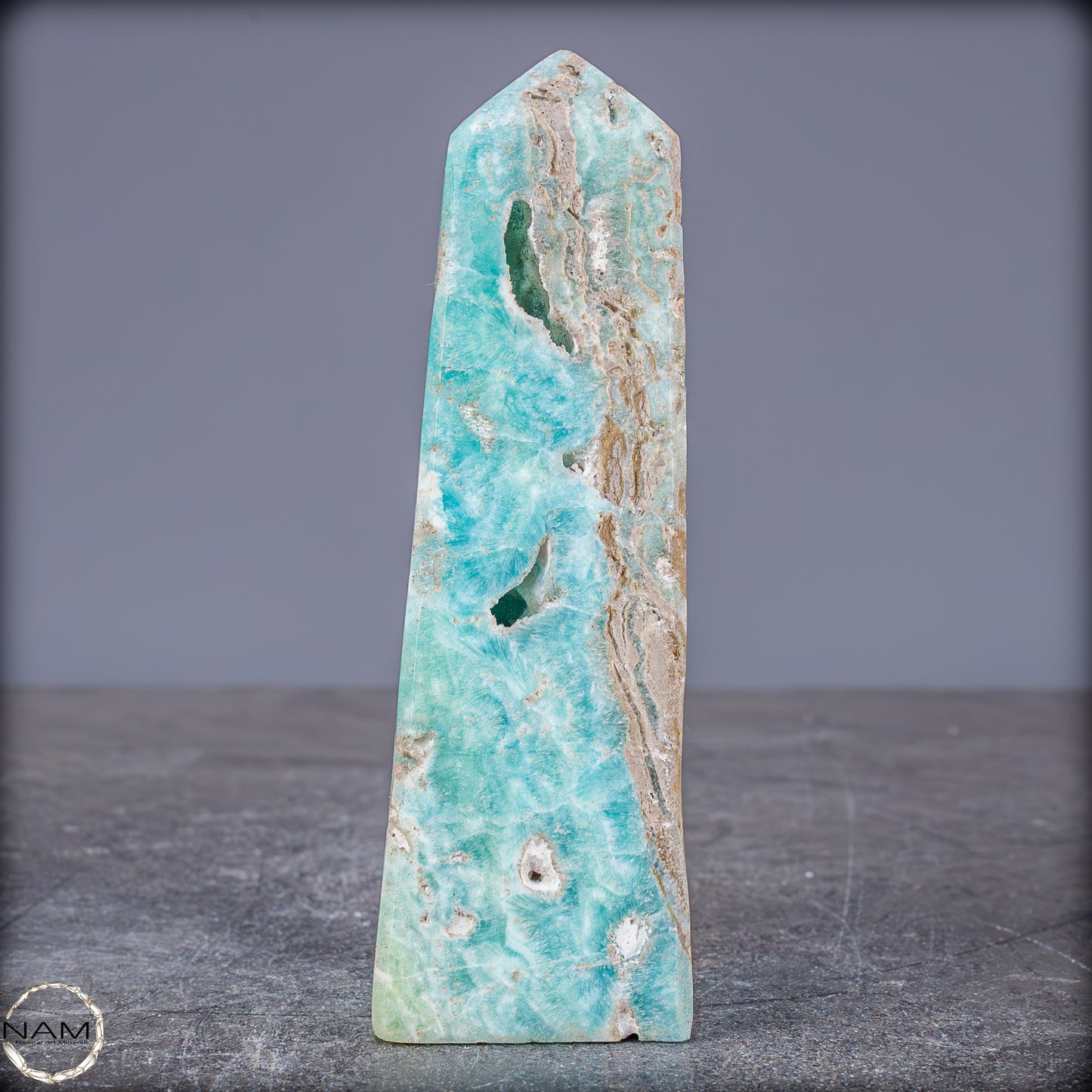 Natürlicher Blau-Grüner Aragonit Kristall-Obelisk - 335,81g