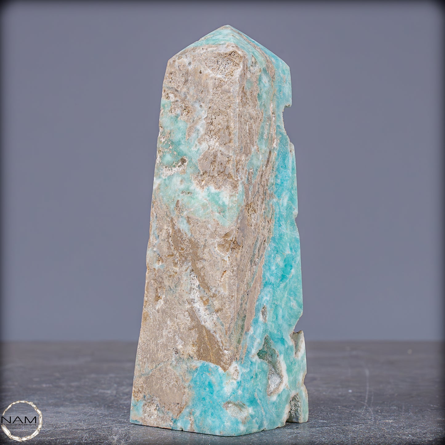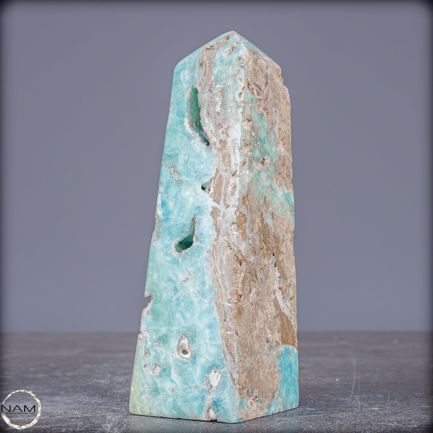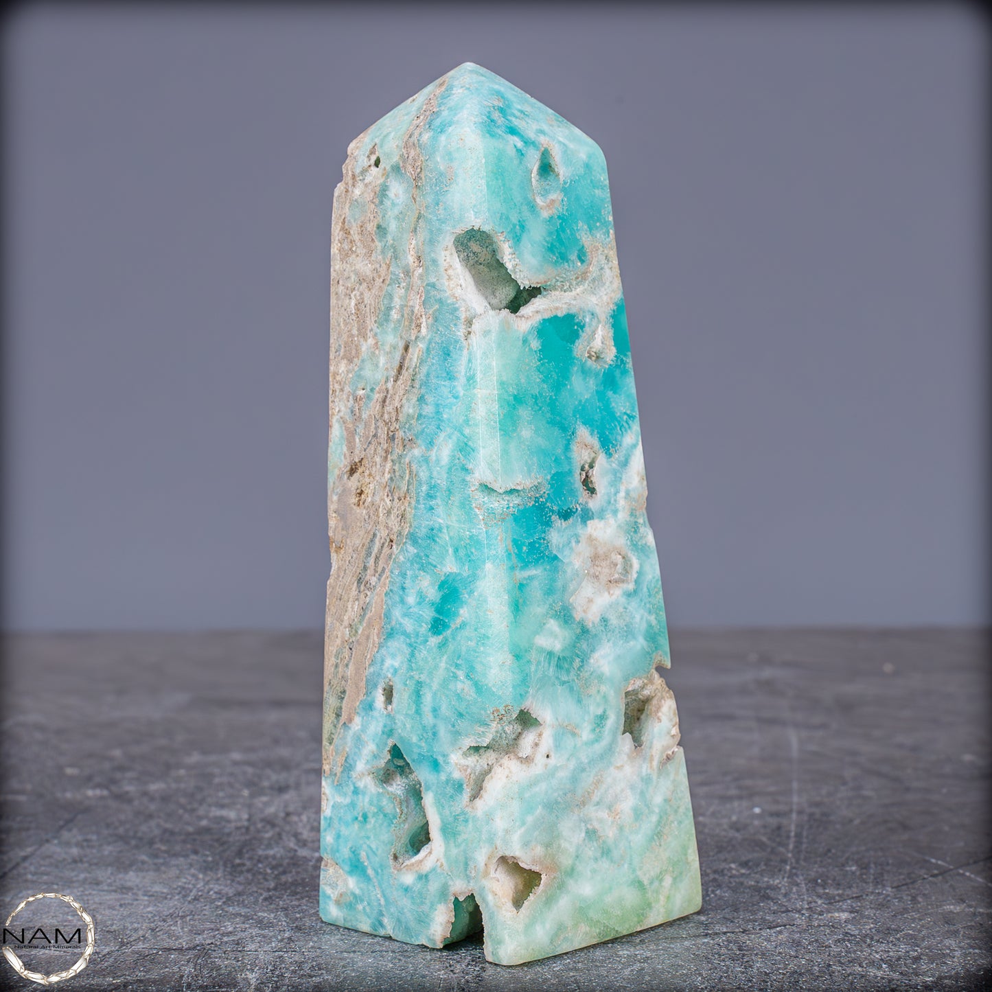 Natürlicher Blau-Grüner Aragonit Kristall-Obelisk - 335,81g