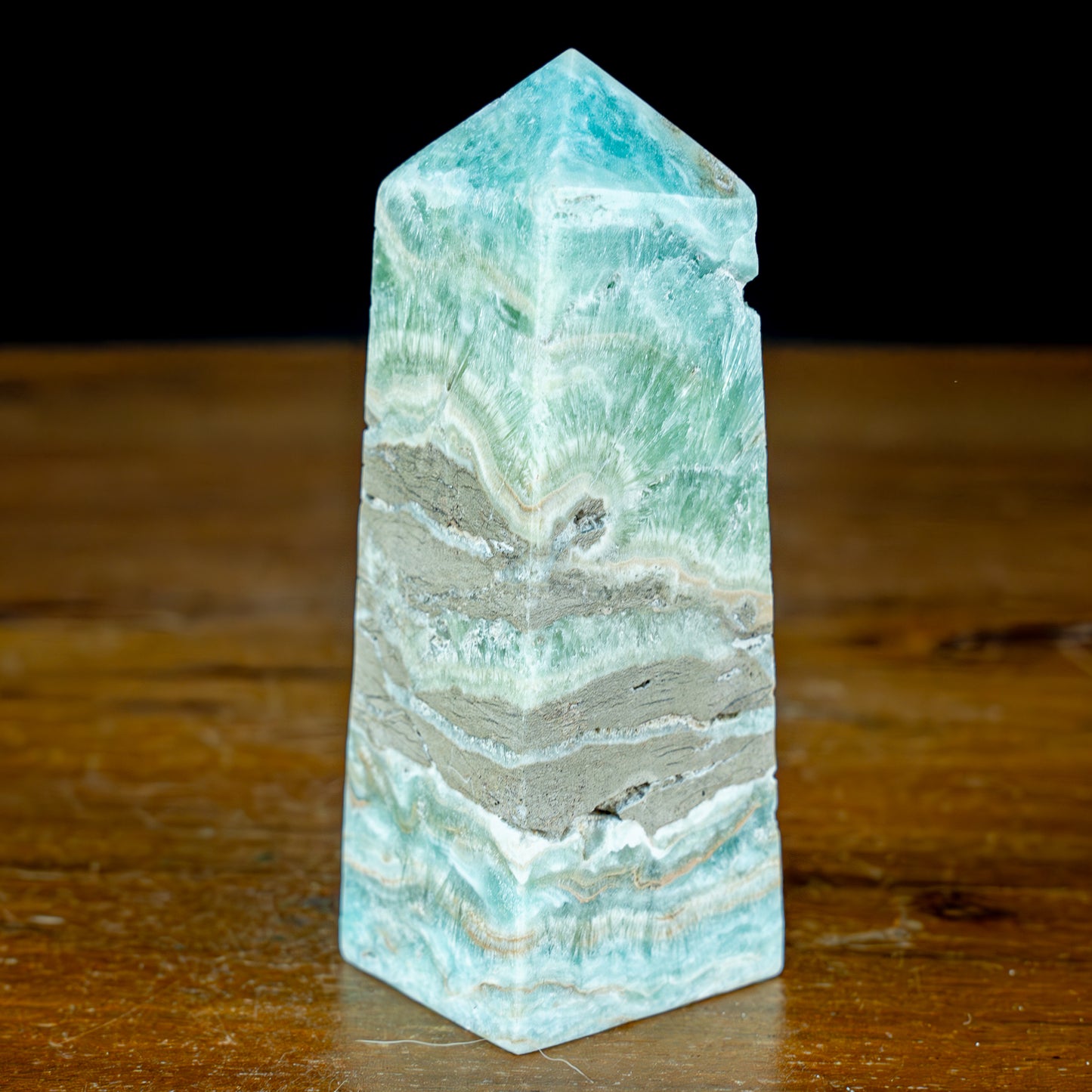 Natürlicher Blau-Grüner Aragonit Kristall-Obelisk - 356,22g