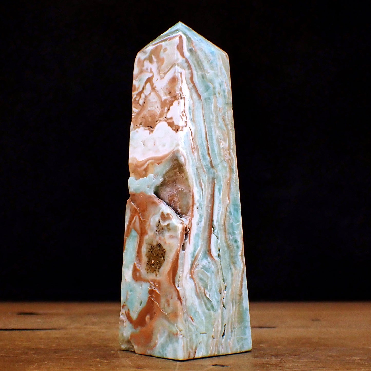 Natürlicher Blau-Grüner Aragonit Obelisk - 403,42g