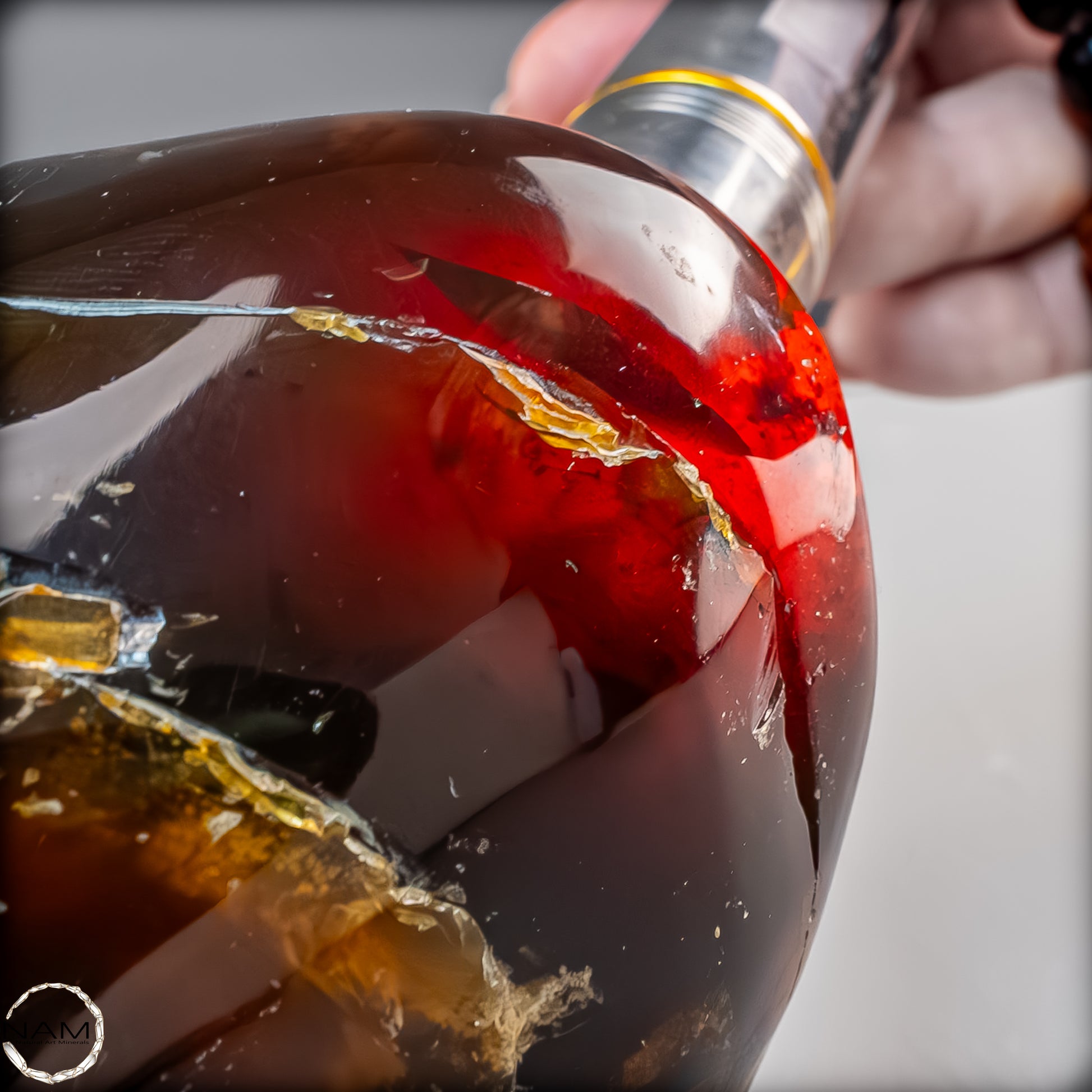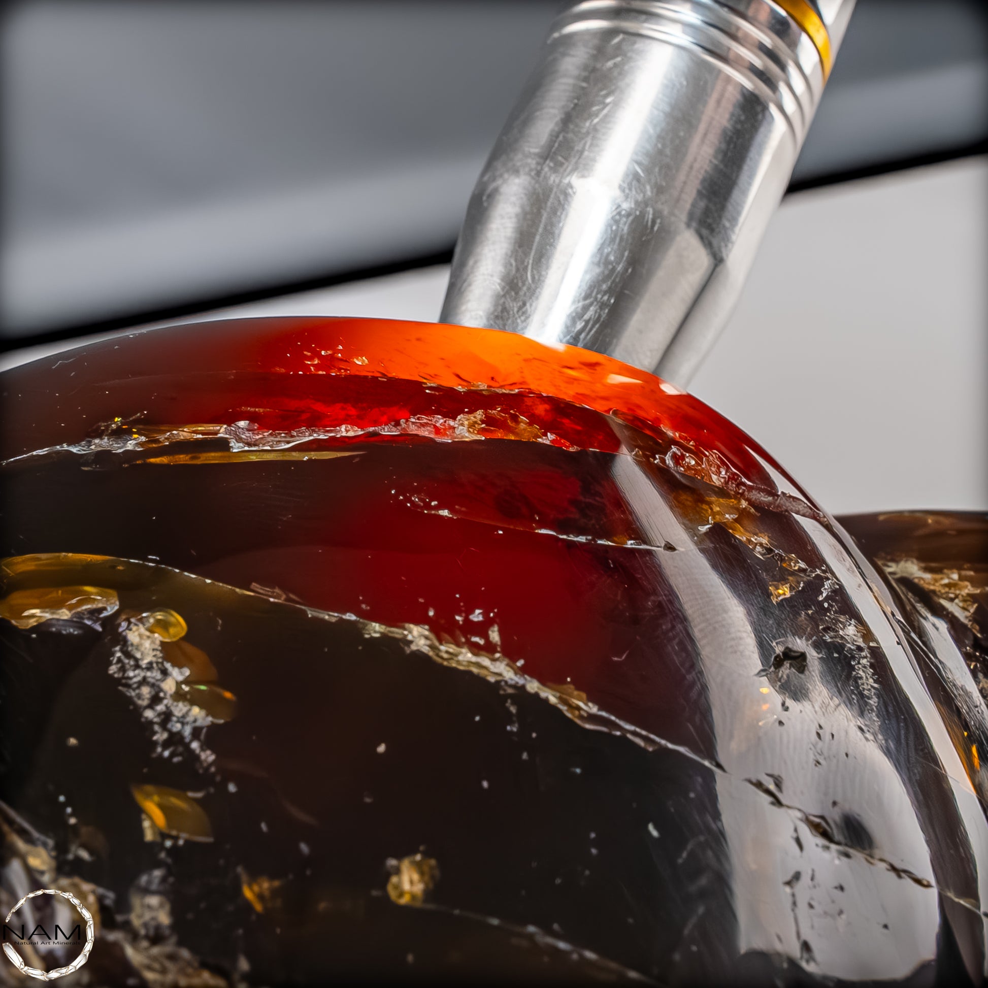 Noch faszinierender wird er unter UV-Beleuchtung: Dann treten kühle, blauweiße Fluoreszenzen hervor, die an gefrorenes Feuer erinnern. Diese seltene Kombination aus warmer Transparenz und kühler UV-Reaktion macht das Stück besonders spannend für Sammler, Bernstein-Liebhaber und alle, die Naturwunder schätzen.