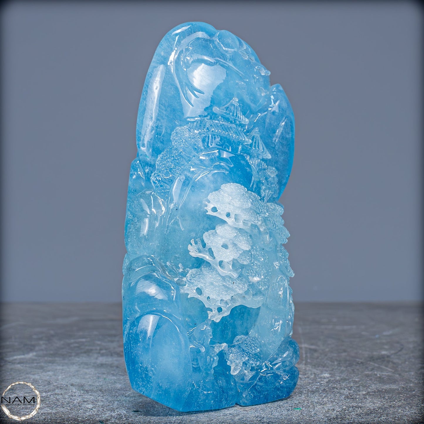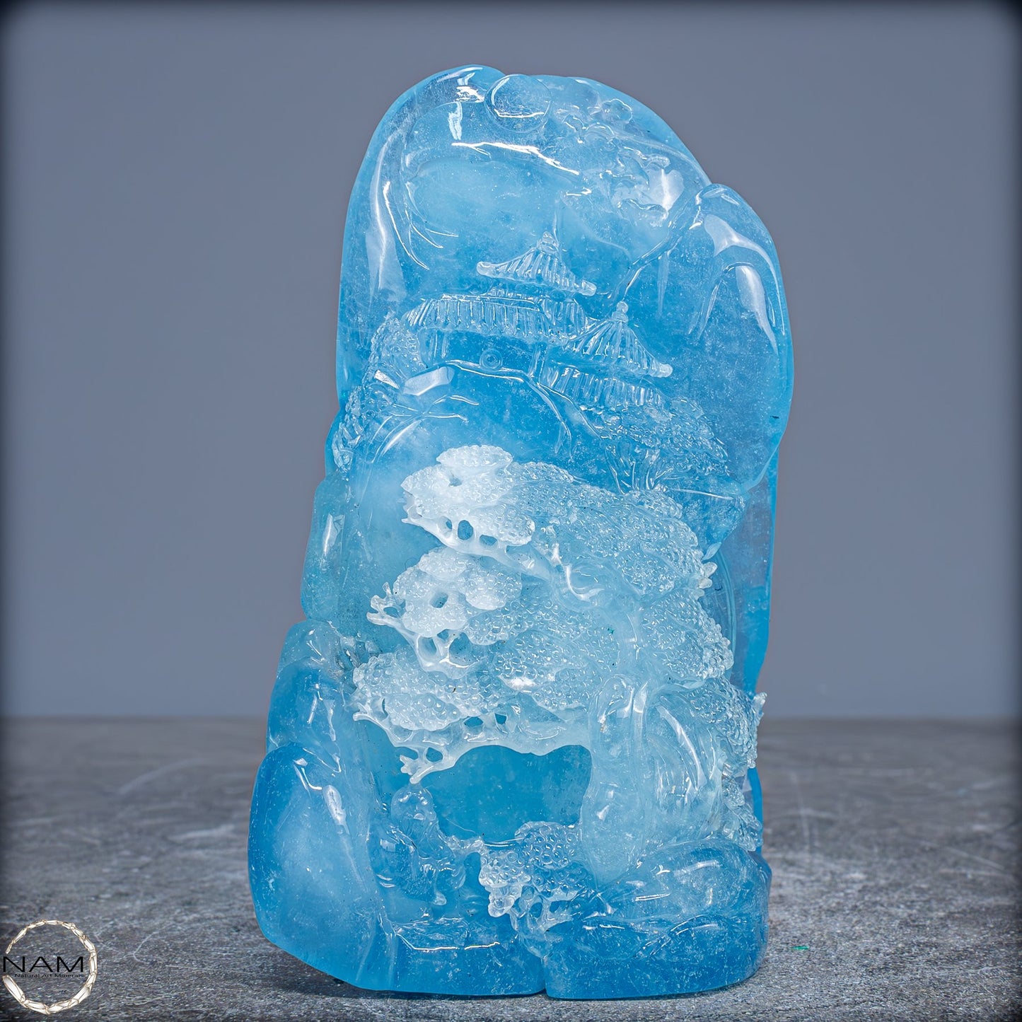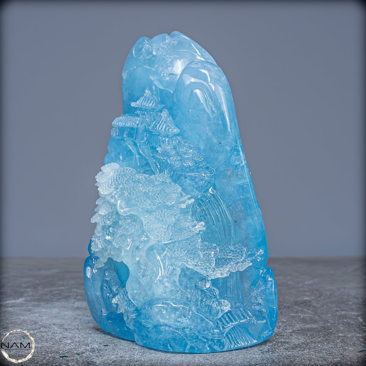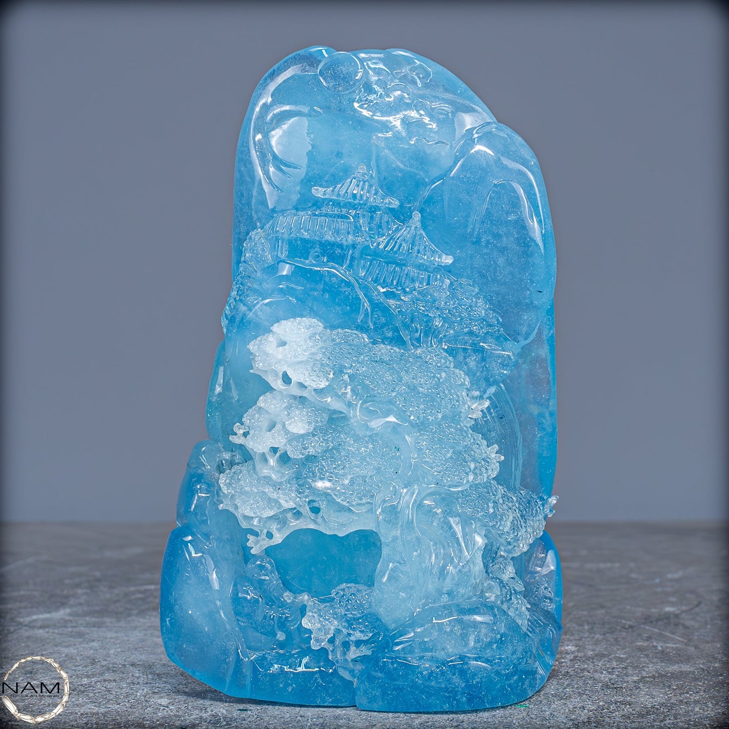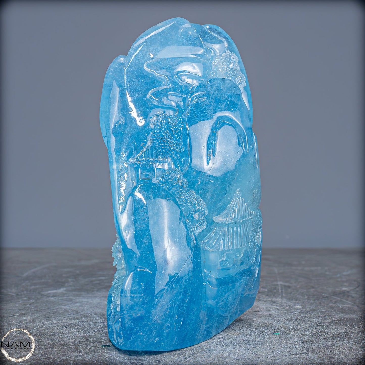 Natürlicher Blauer Aquamarin-Kristall-Schnitzerei - 496,15g