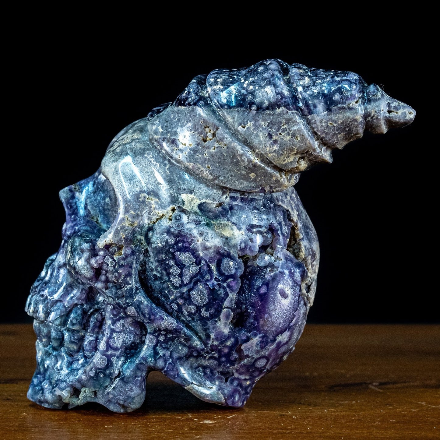 Botryodaler Lila Chalcedon, ein einzigartiges Mineral, das wegen seiner Schönheit und Energie hoch geschätzt wird. Dieser Edelstein ist für seine tiefviolette Farbe und die charakteristische traubenartige Formation bekannt und wird oft in den Farbtönen Lavendel oder Lila gefunden.