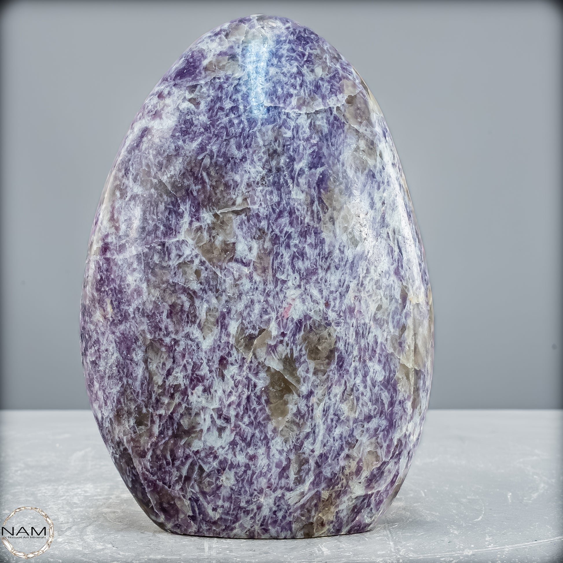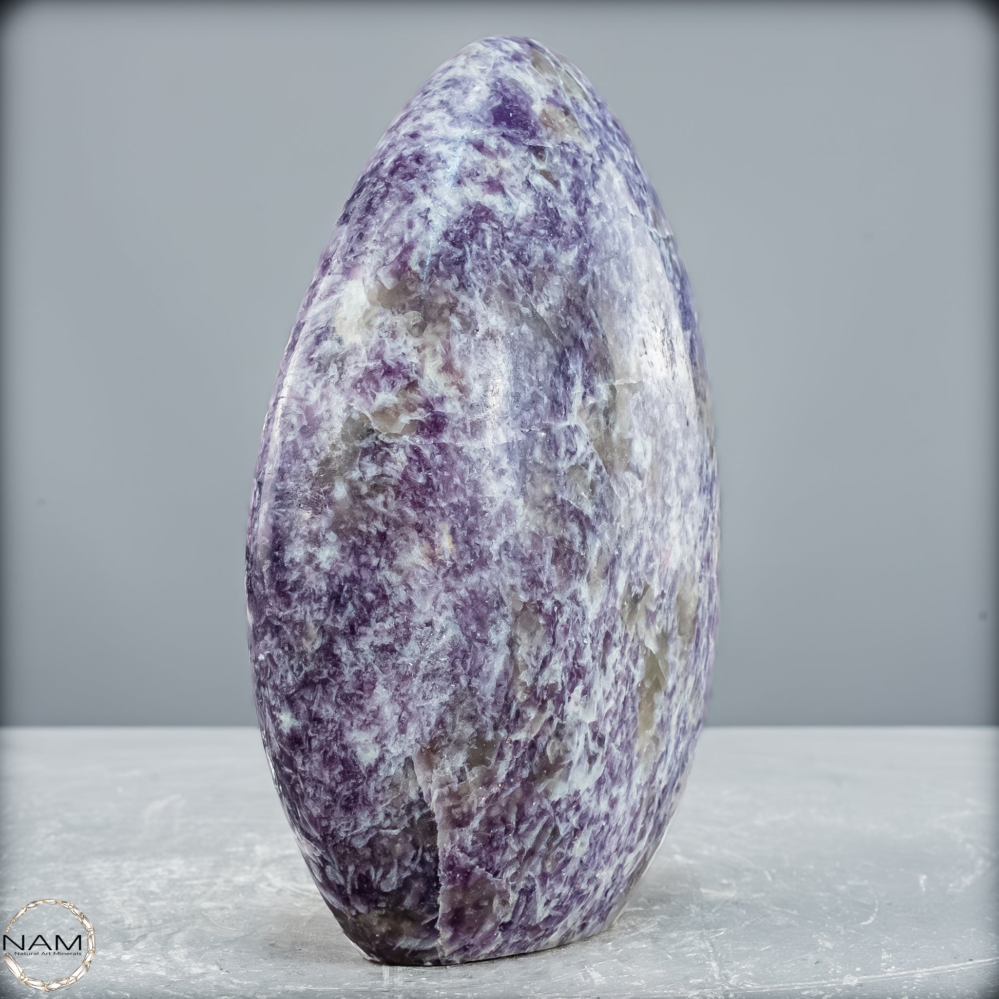 Diese Freiform aus Lepidolith – oft liebevoll als Einhornstein bezeichnet – bezaubert mit einer zart glitzernden Oberfläche in sanften Violett- und Lavendeltönen. Zwischen feinen, silbrig schimmernden Glimmerlagen zeigen sich helle Quarzbänder und kristalline Strukturen, die dem Stein Tiefe und eine märchenhafte Ausstrahlung verleihen. Die natürliche Maserung sorgt für ein lebendiges Spiel aus Licht und Farbe auf der polierten Fläche.
