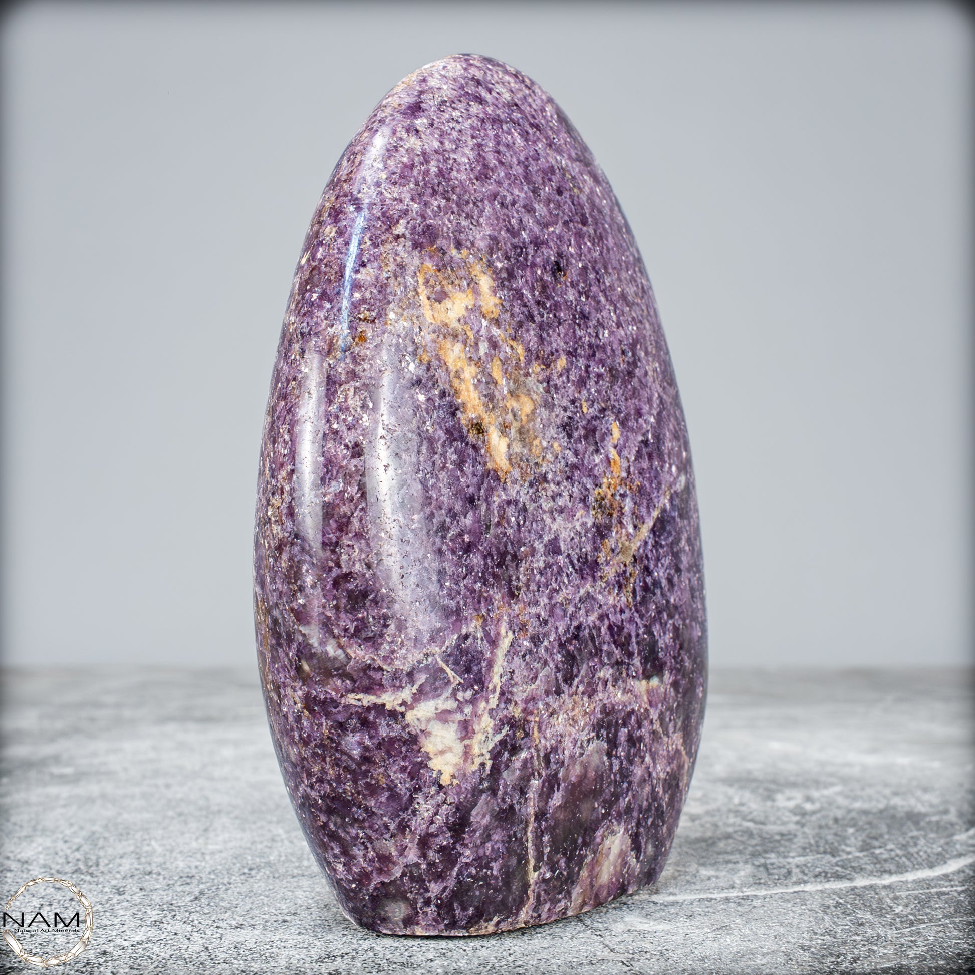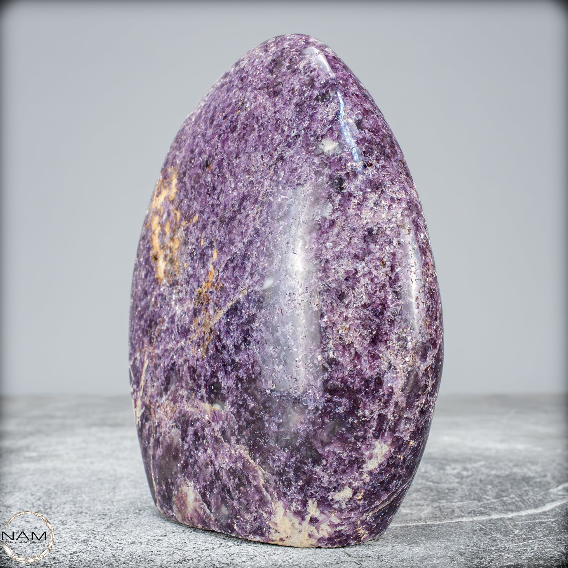 Diese Freiform ist nicht nur ein dekoratives Objekt, sondern ein wohltuender Begleiter in Alltag und Meditation. Ob im Schlafzimmer, auf dem Schreibtisch oder im Heilraum – Lepidolith bringt eine sanfte, beständige Energie, die zum Durchatmen und Loslassen einlädt.