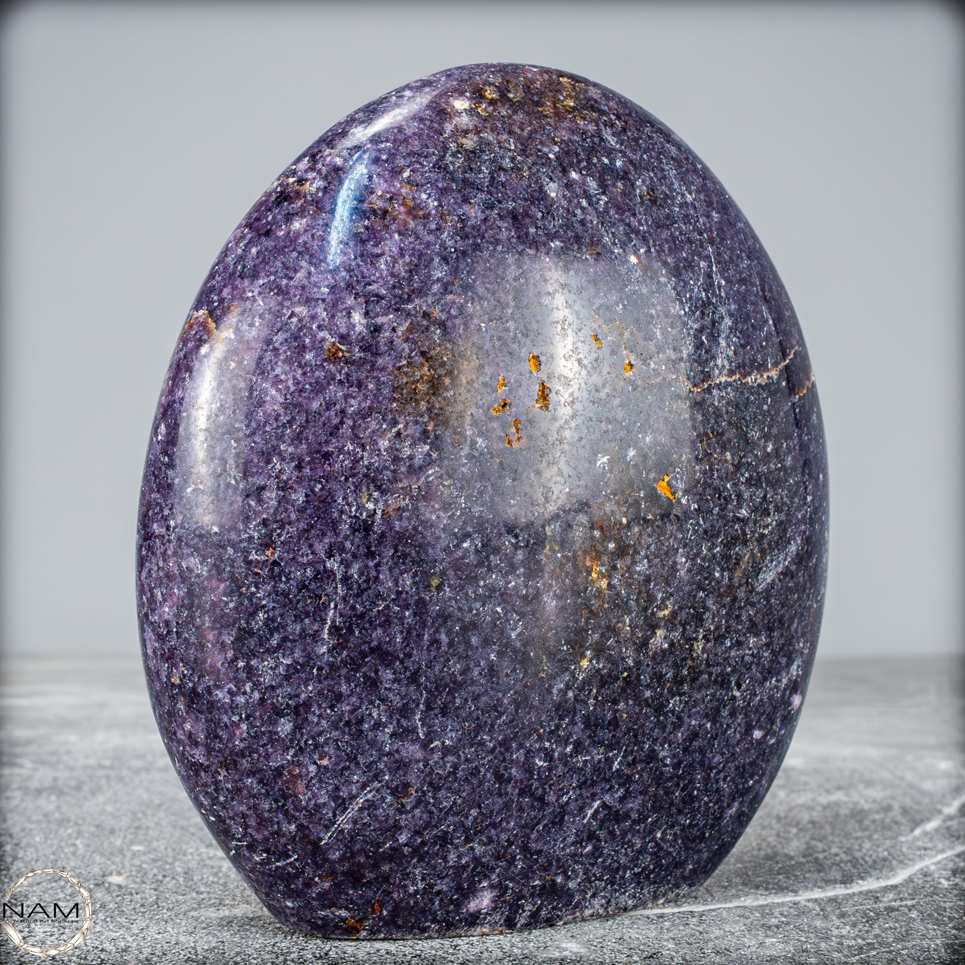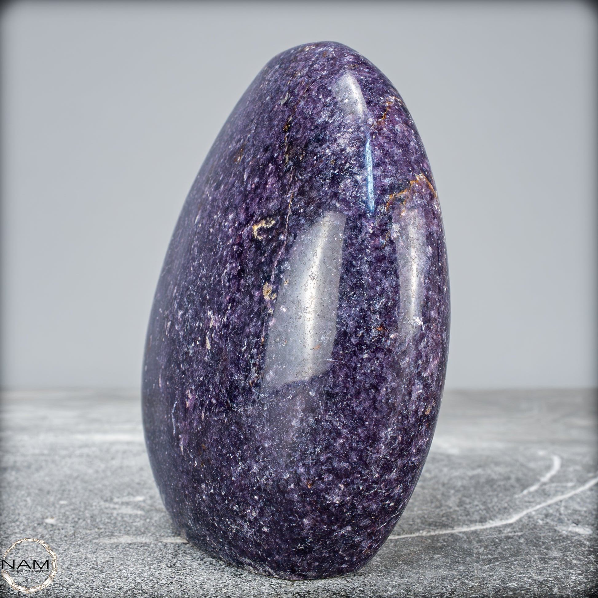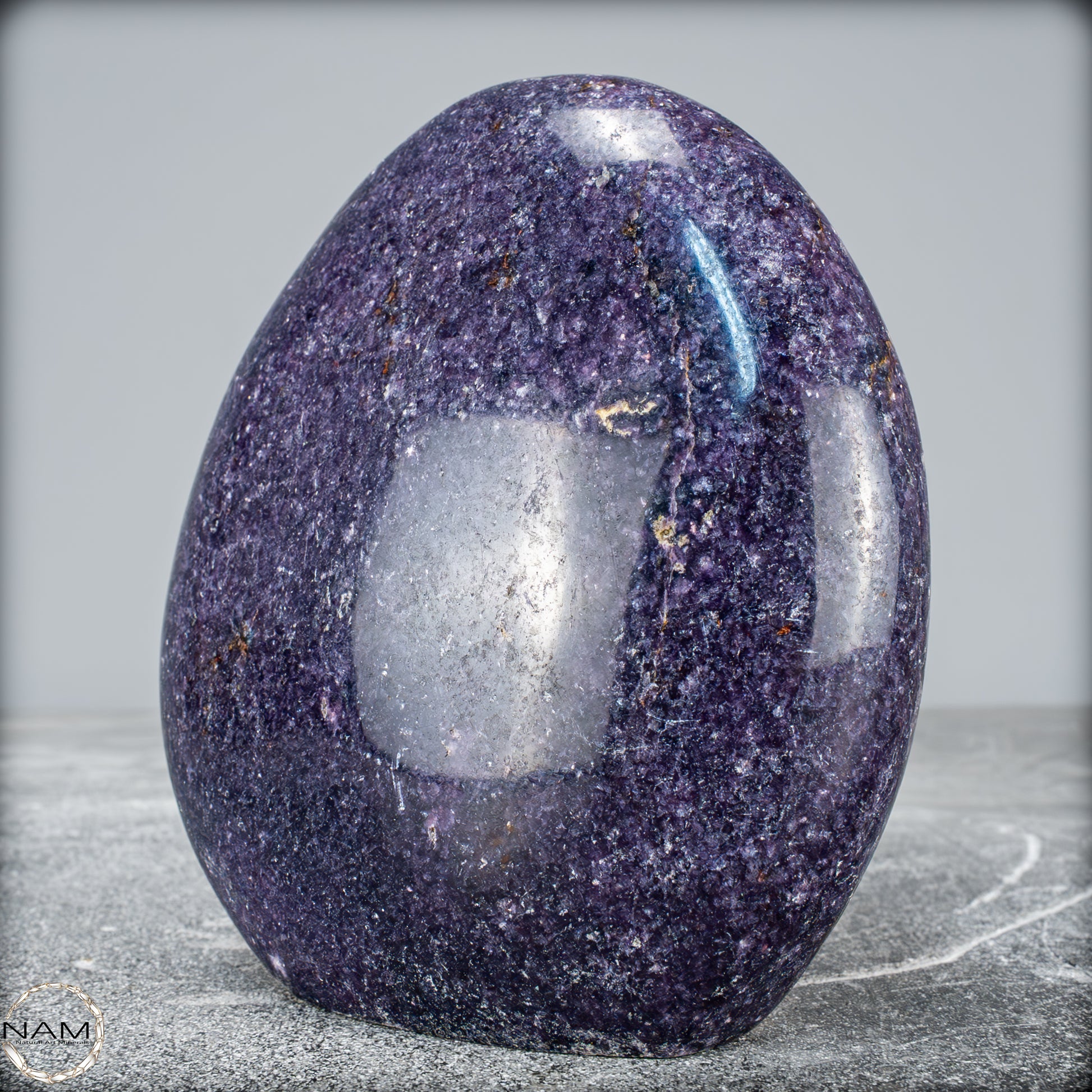 Diese Freiform ist nicht nur ein dekoratives Objekt, sondern ein wohltuender Begleiter in Alltag und Meditation. Ob im Schlafzimmer, auf dem Schreibtisch oder im Heilraum – Lepidolith bringt eine sanfte, dauerhafte Energie, die zum Durchatmen und Loslassen einlädt.