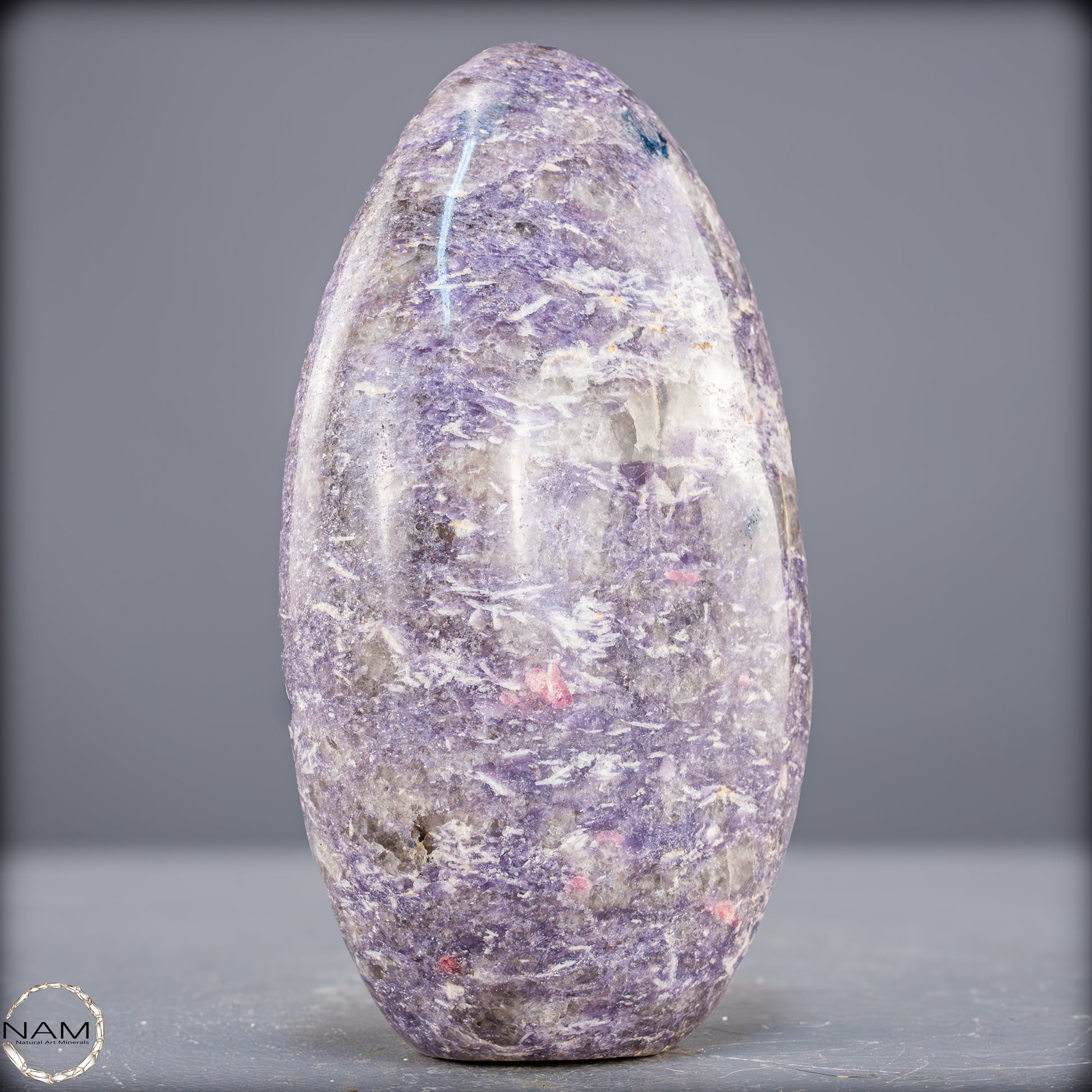 Diese Freiform ist nicht nur ein dekoratives Objekt, sondern ein wohltuender Begleiter in Alltag und Meditation. Ob im Schlafzimmer, auf dem Schreibtisch oder im Heilraum – Lepidolith bringt eine sanfte, dauerhafte Energie, die zum Durchatmen und Loslassen einlädt.