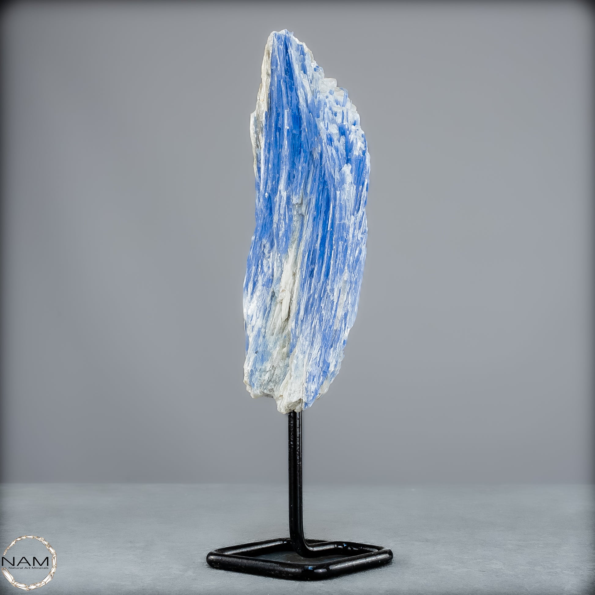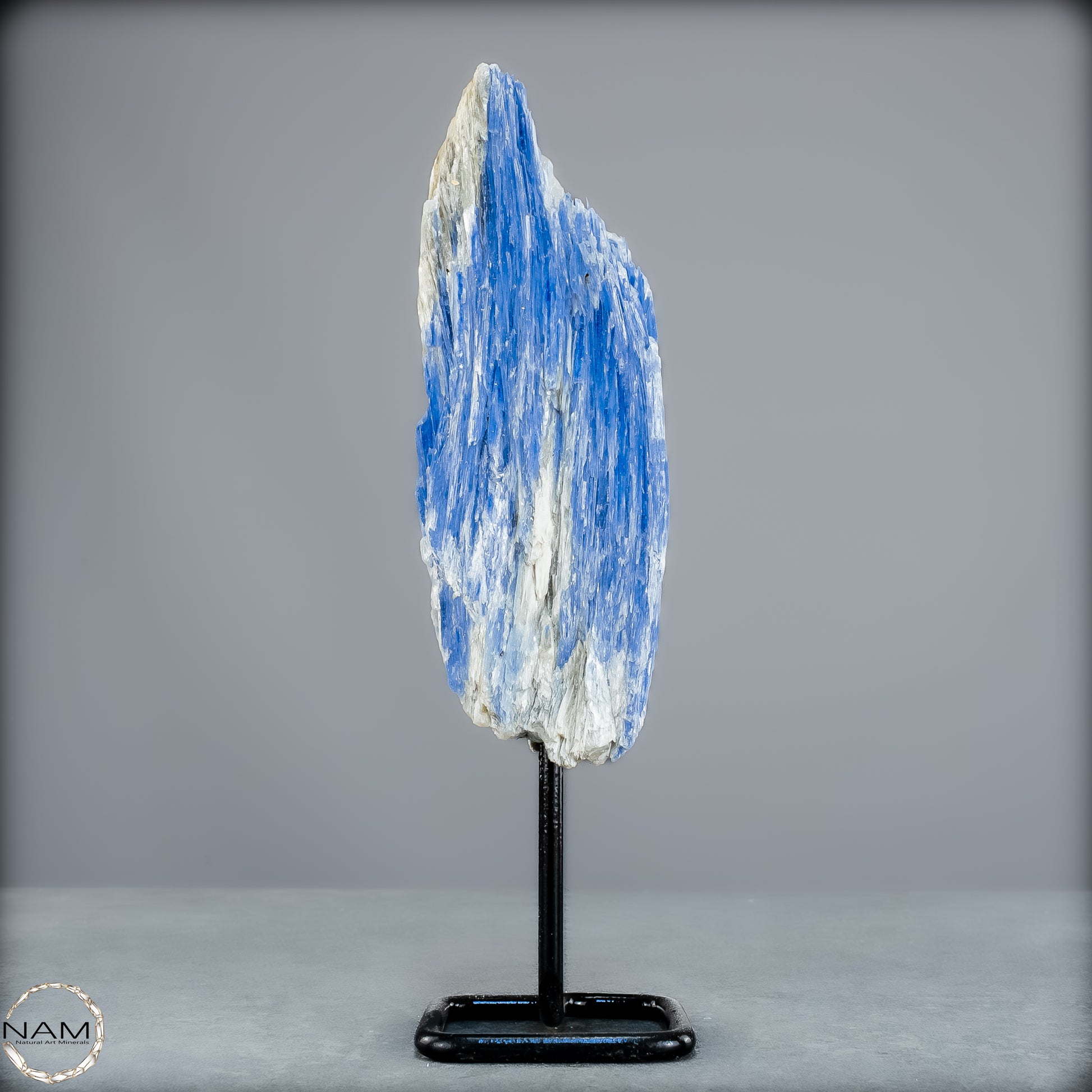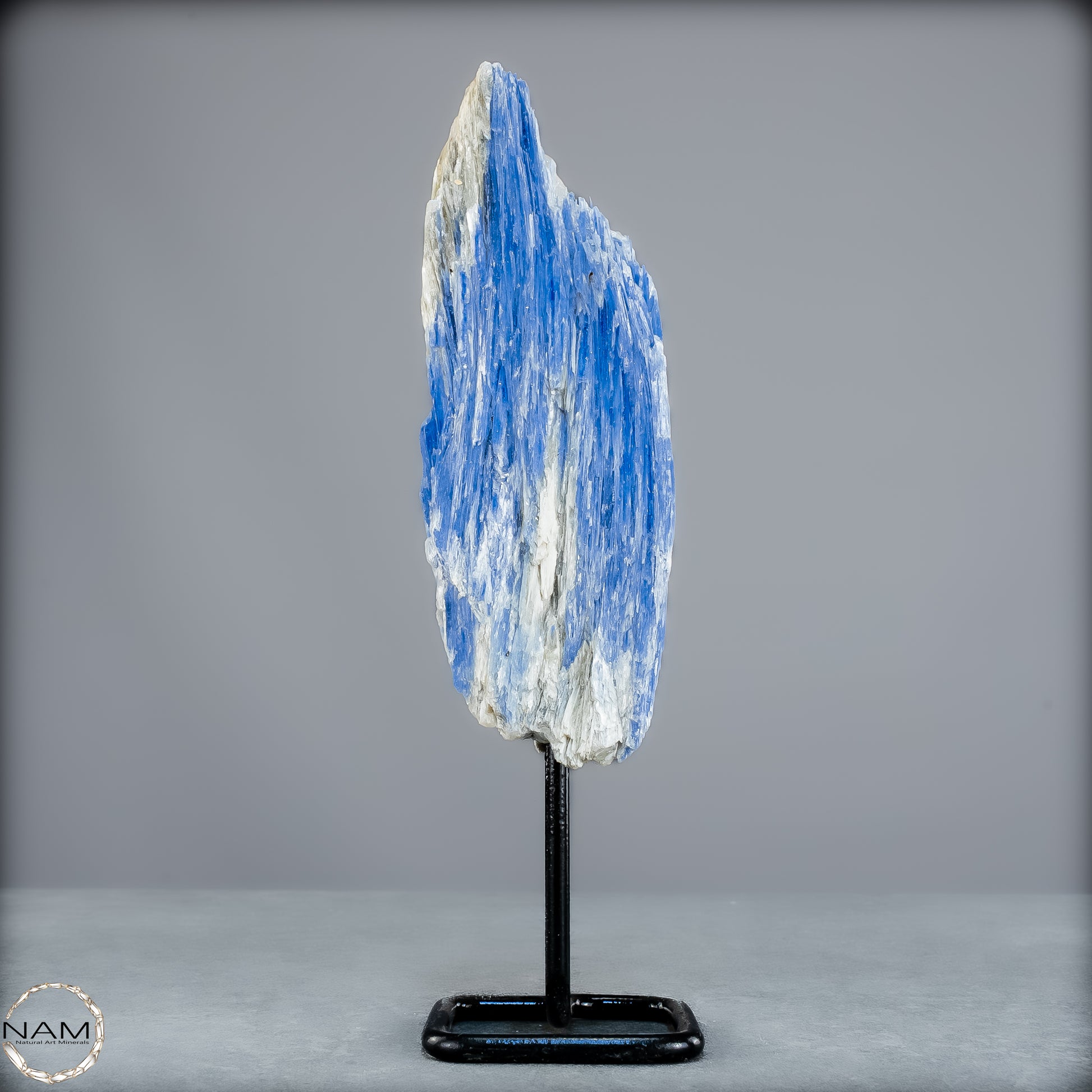 In der Form dieses beeindruckenden Naturkristalls entfaltet der Kyanit seine ganze Präsenz – majestätisch, aufgerichtet und voller Energie. Der edle Metallständer hebt seine Wirkung zusätzlich hervor und macht ihn zu einem beeindruckenden Zentrum in jedem Raum, sei es als Dekoration, Meditationsstein oder spirituelles Kraftobjekt.