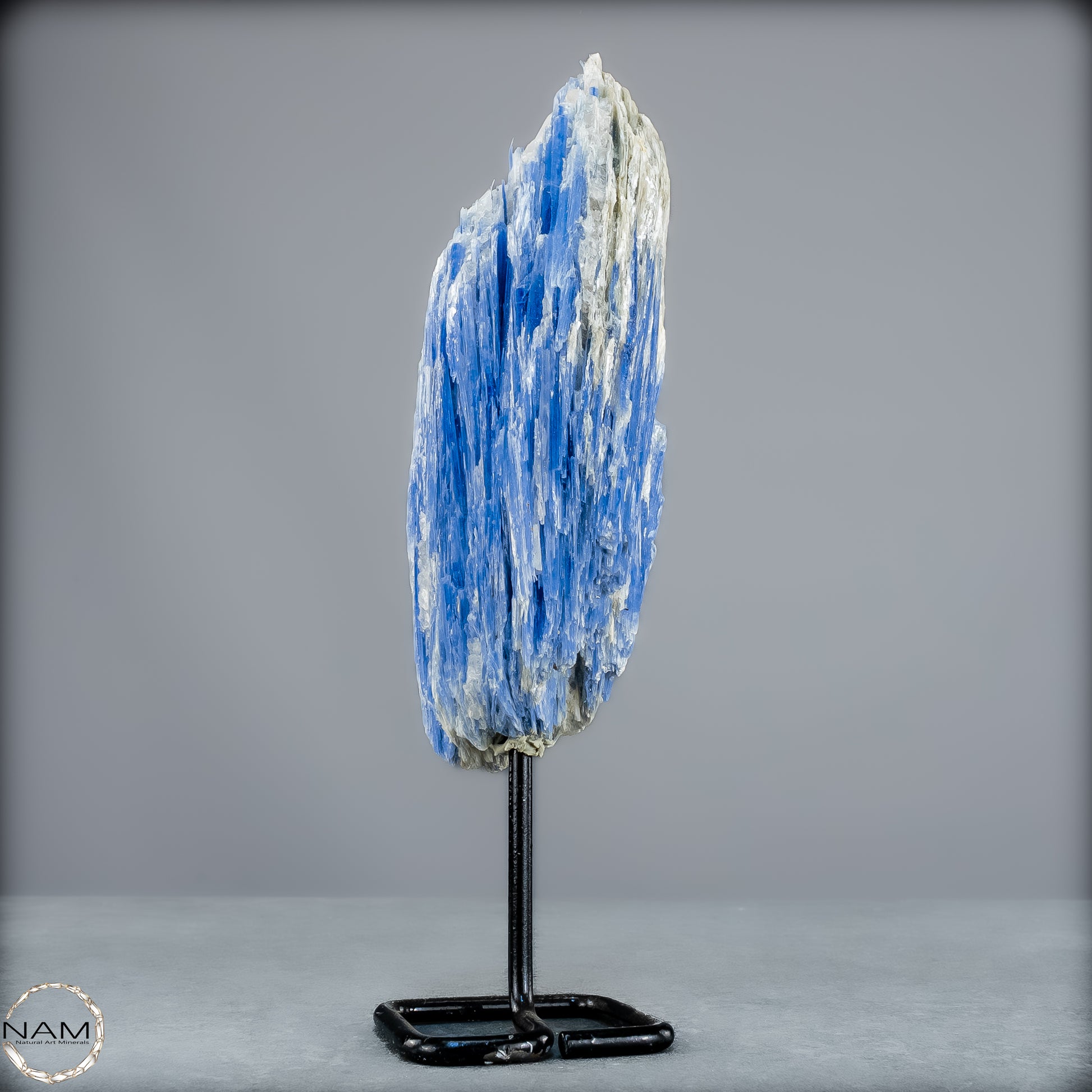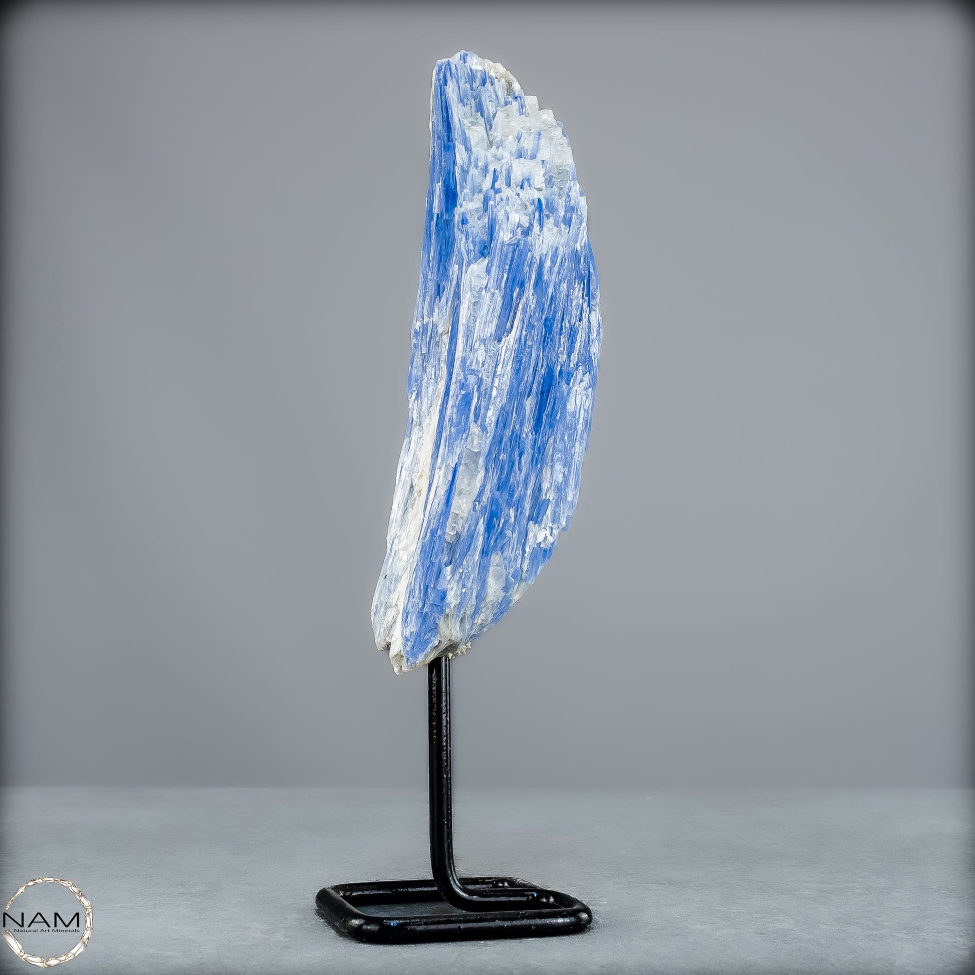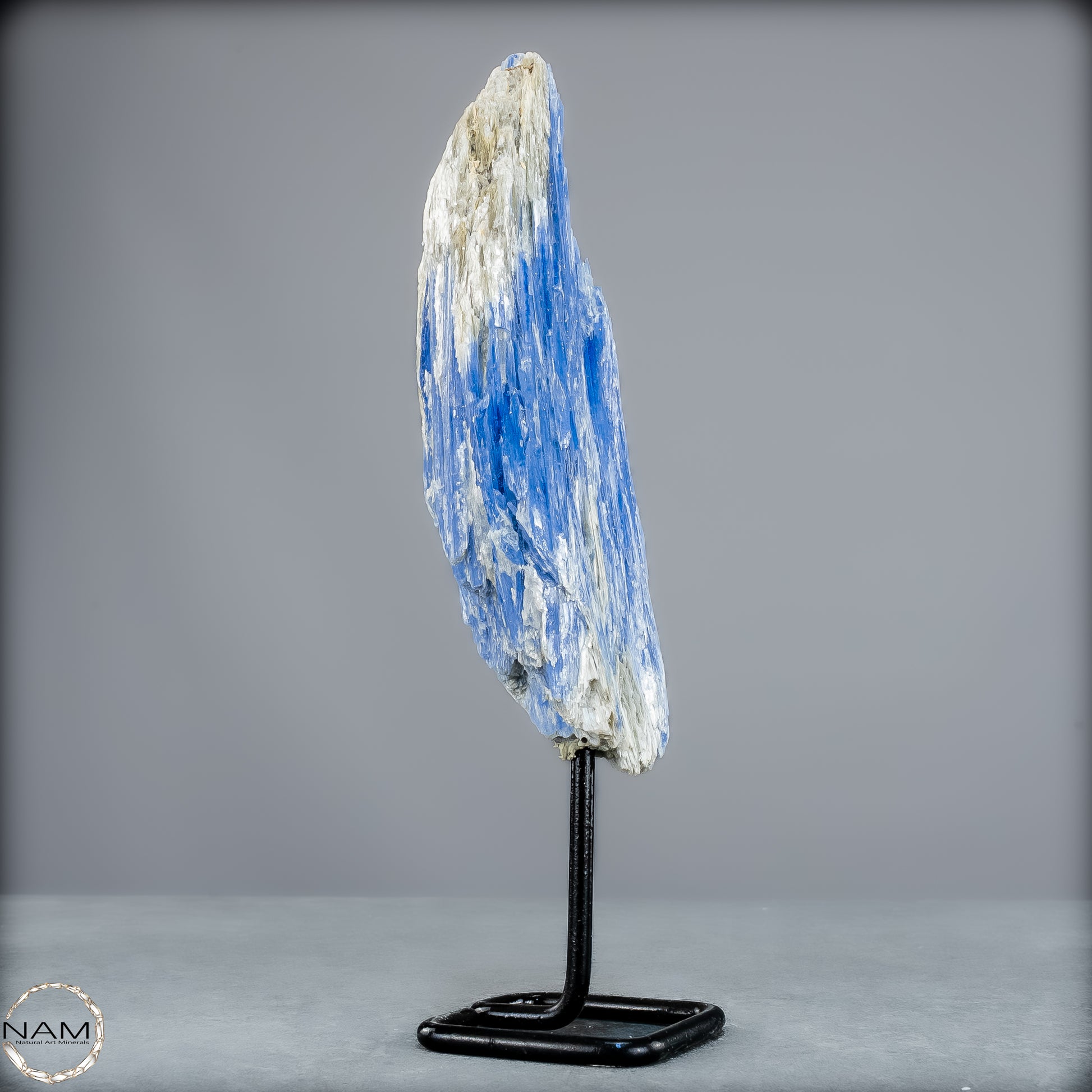 In der Form dieses beeindruckenden Naturkristalls entfaltet der Kyanit seine ganze Präsenz – majestätisch, aufgerichtet und voller Energie. Der edle Metallständer hebt seine Wirkung zusätzlich hervor und macht ihn zu einem beeindruckenden Zentrum in jedem Raum, sei es als Dekoration, Meditationsstein oder spirituelles Kraftobjekt.