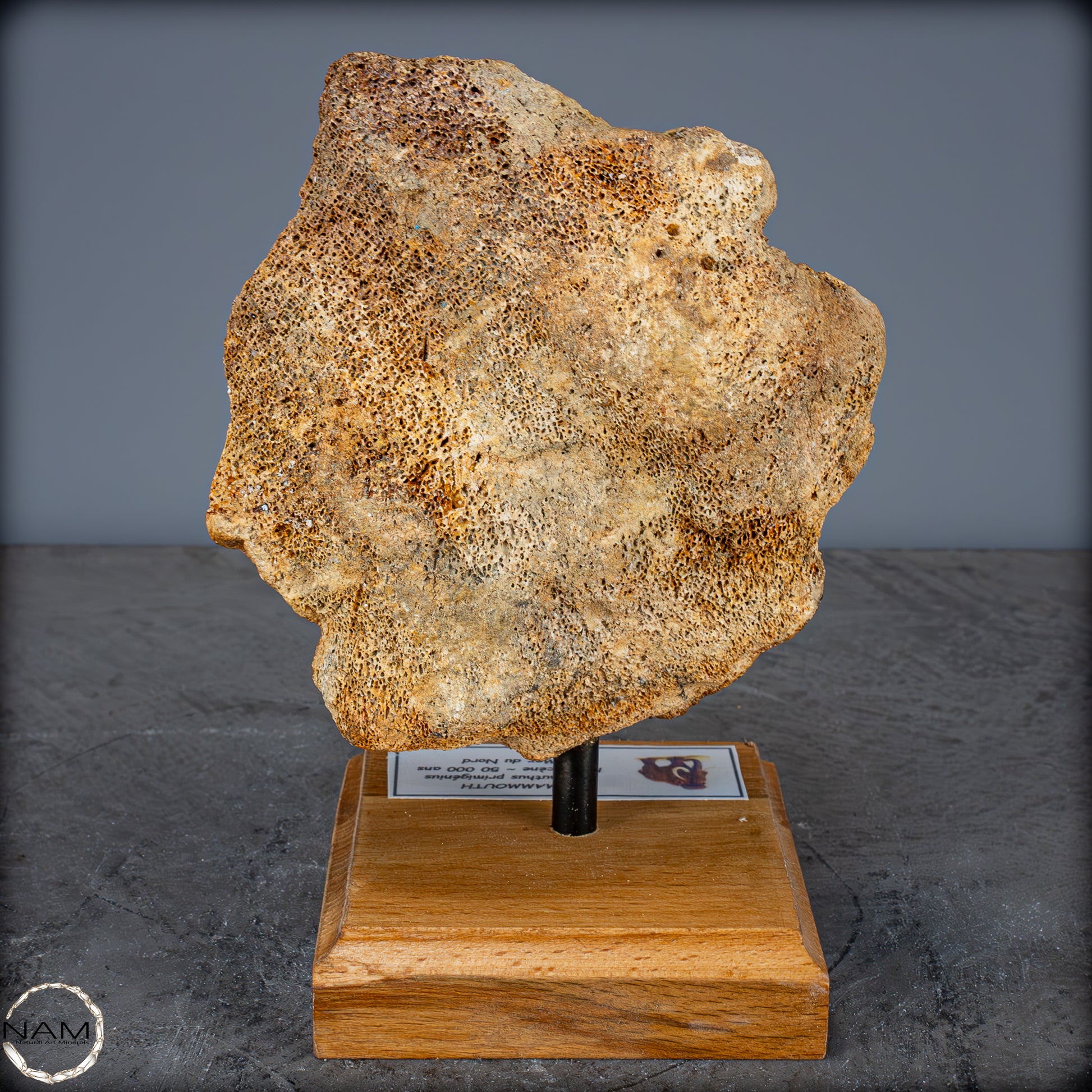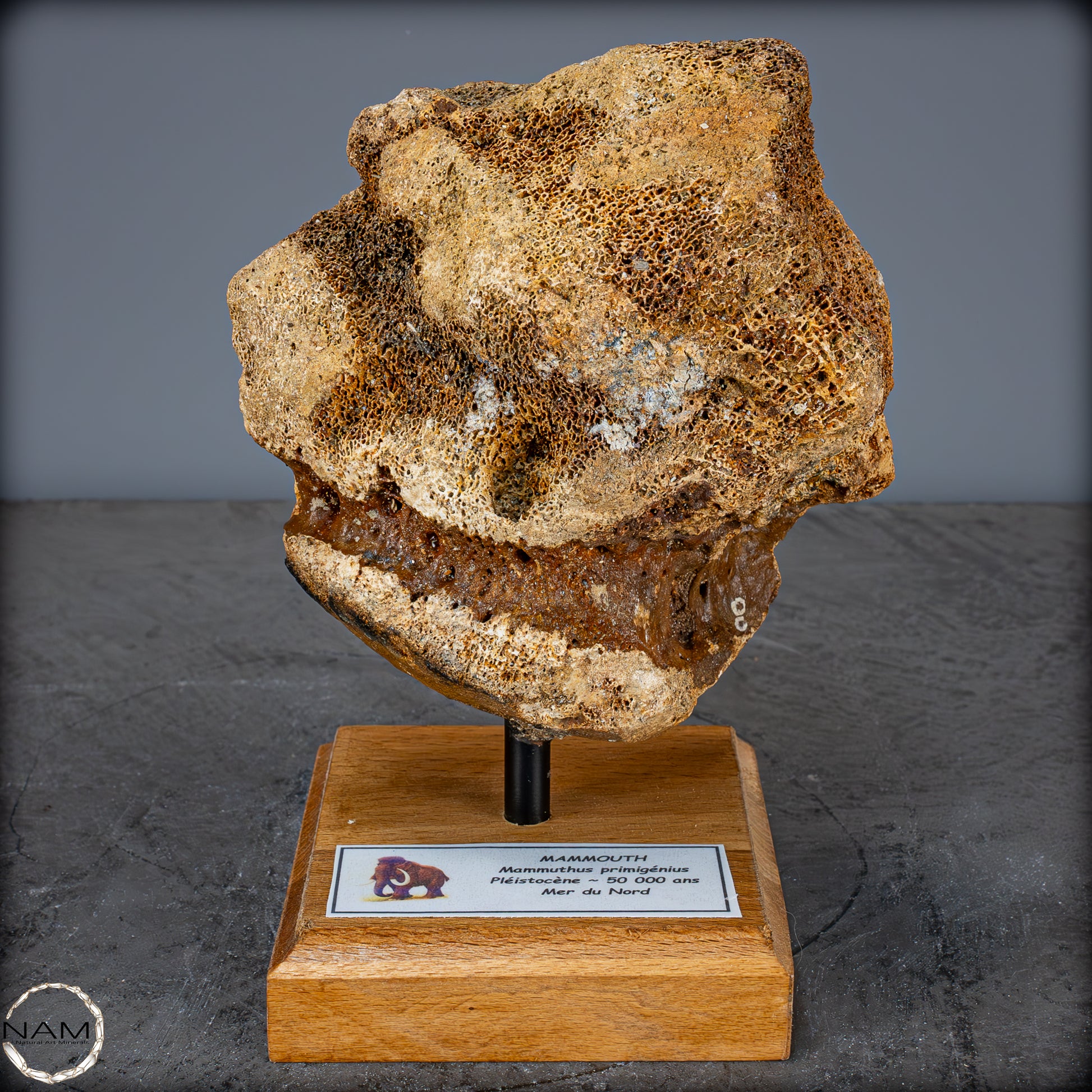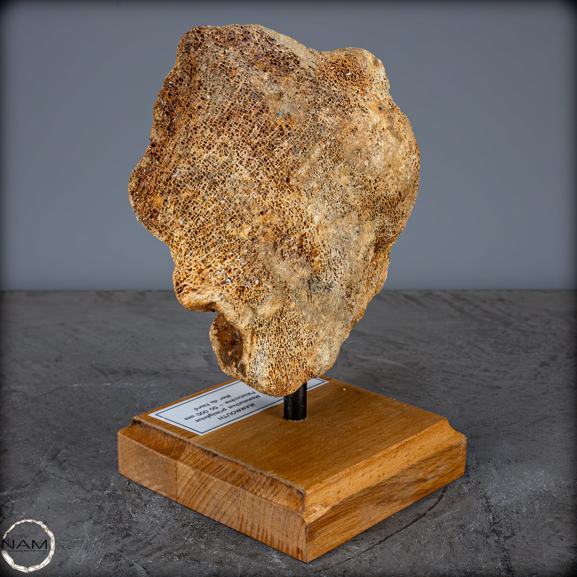 Ein besonders schönes Exemplar eines Teils eines Mammut Knochens, montiert auf einem Metallständer. Eine einmalige Gelegenheit, ein solch prächtiges Fossil für Ihre Sammlung oder als Blickfang in Ihrem Interieur zu besitzen!