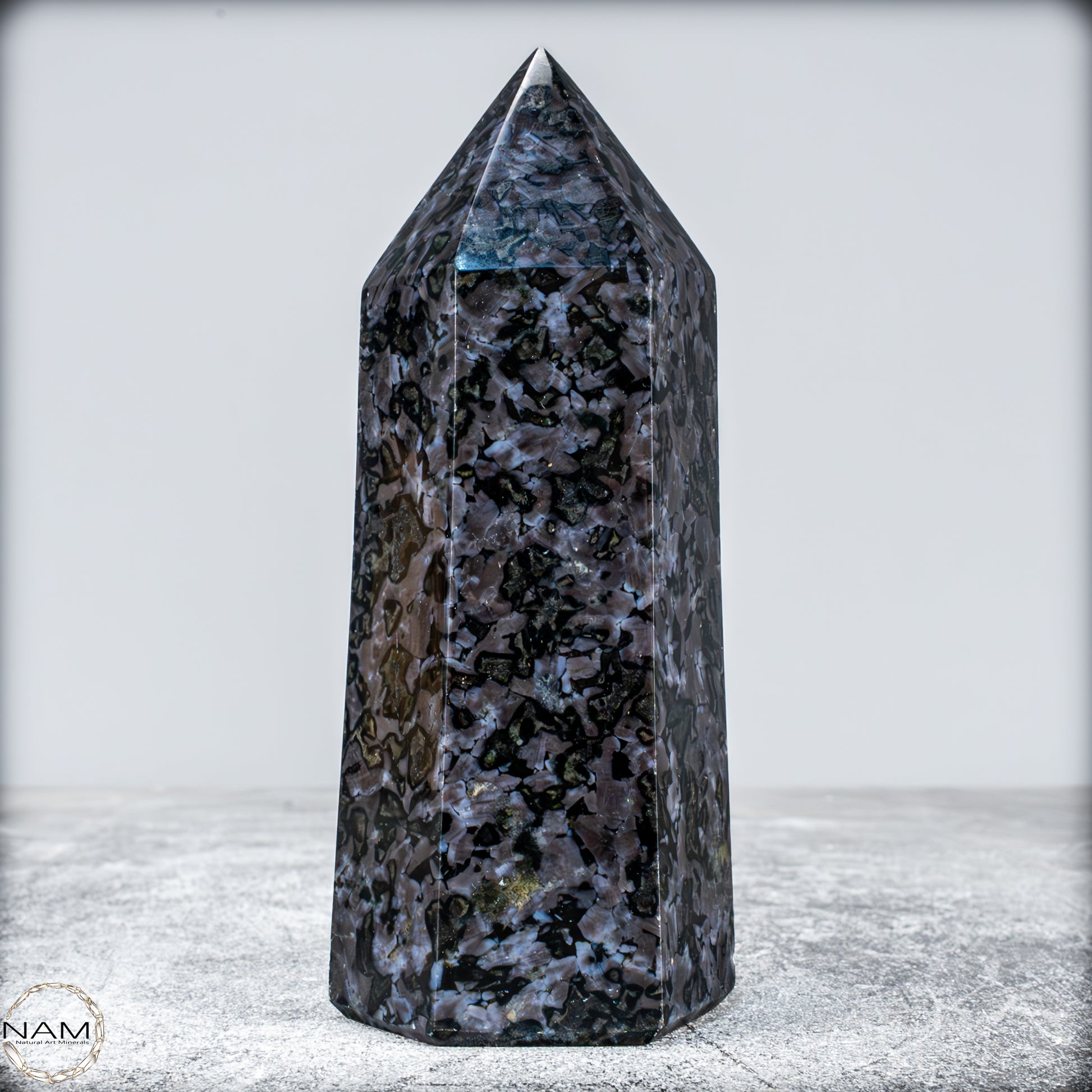 Natürlicher Merlinit (Gabbro) Kristall Obelisk - 633,71g