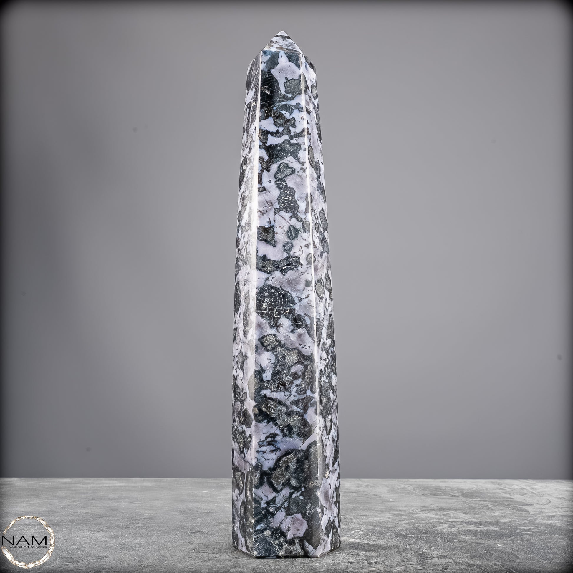 Natürlicher Merlinit (Gabbro) Kristall Obelisk - 836,25g