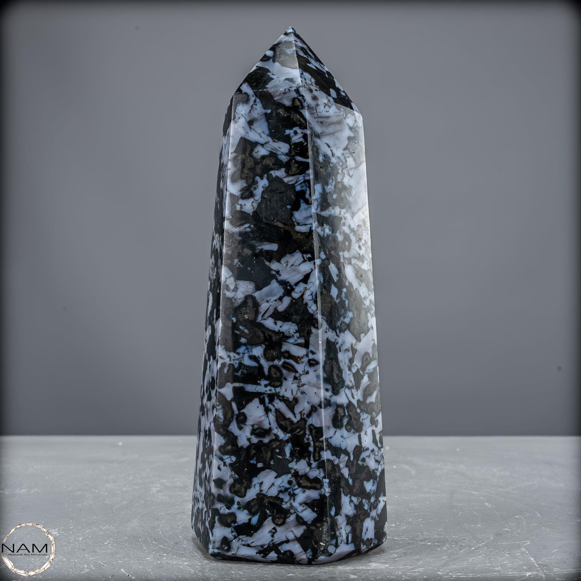 Natürlicher Merlinit (Gabbro) Kristall Obelisk - 903,26 g