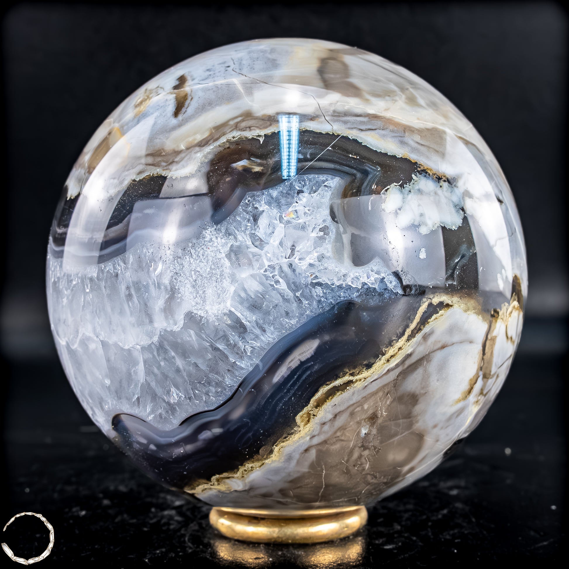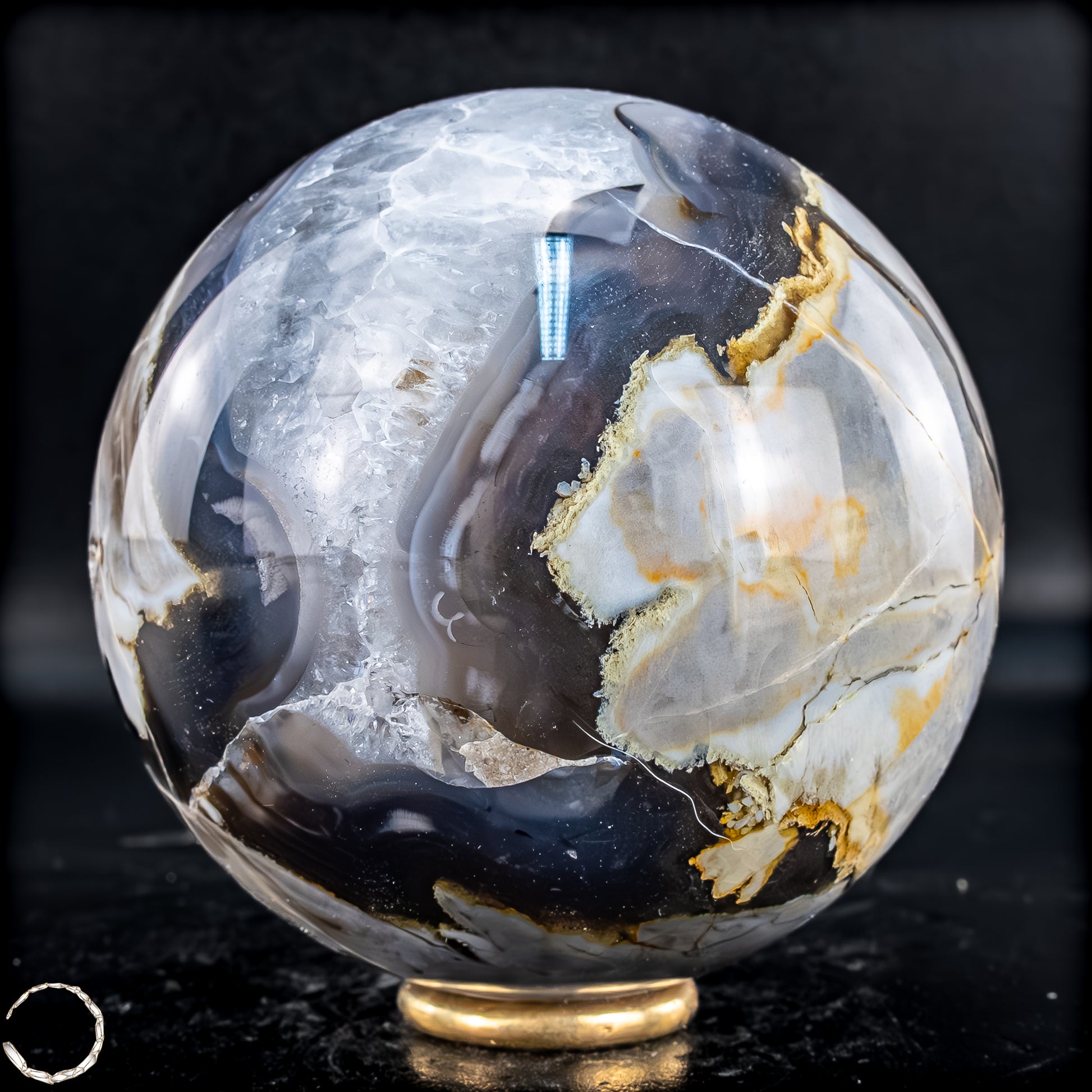 Der Achat zeigt unter ultraviolettem Licht eine sichtbare Fluoreszenz. Dies bedeutet, dass der Stein unter UV-Licht in verschiedenen Farben leuchten kann, abhängig von seiner chemischen Zusammensetzung und den enthaltenen Spurenelementen.