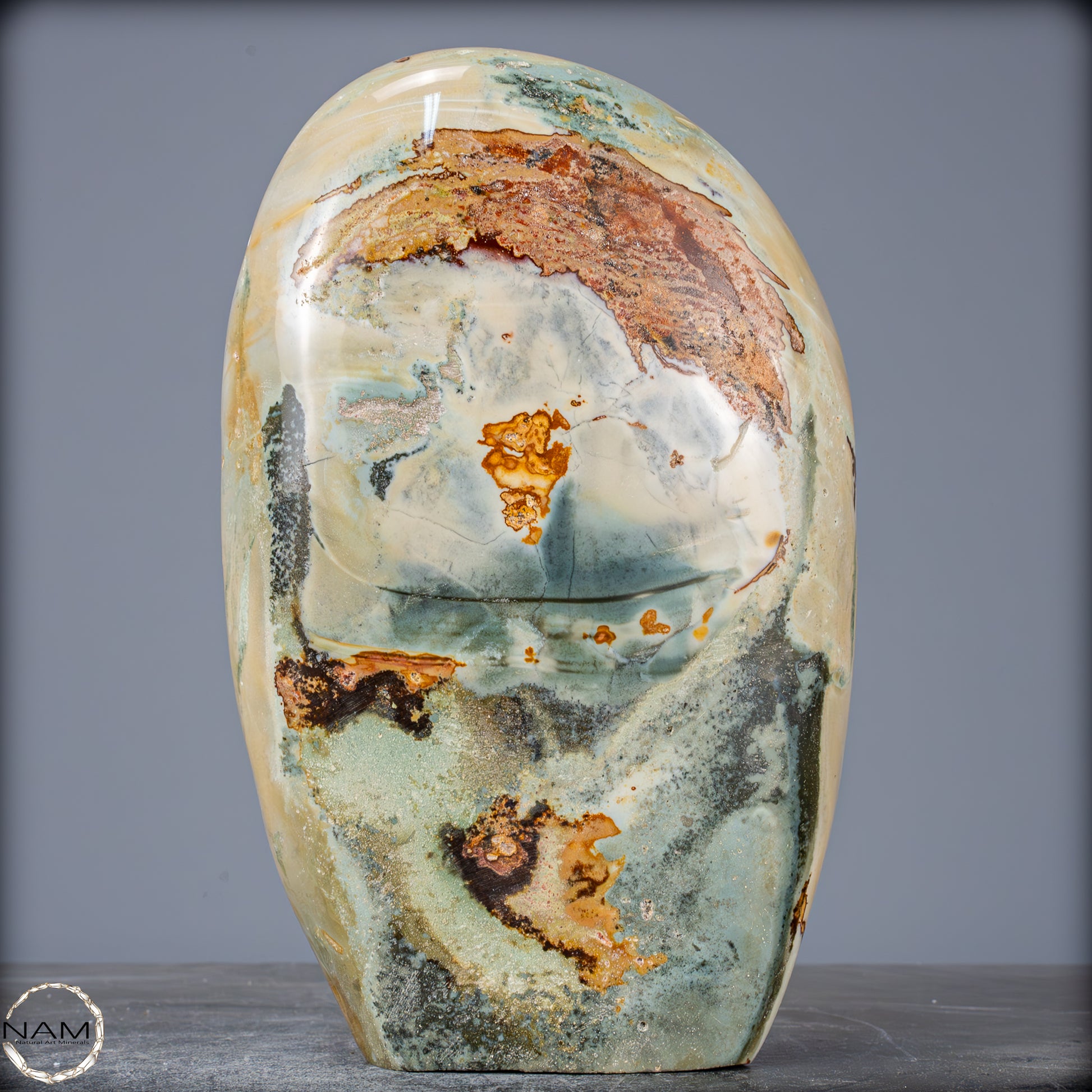 Wunderschöner Polychromer Jaspis/ Achat in seiner freien form ausschließlich perfekt poliert. Ein wunderschönes Mineral mit Farben und Formen, die an ein abstraktes Gemälde erinnern.