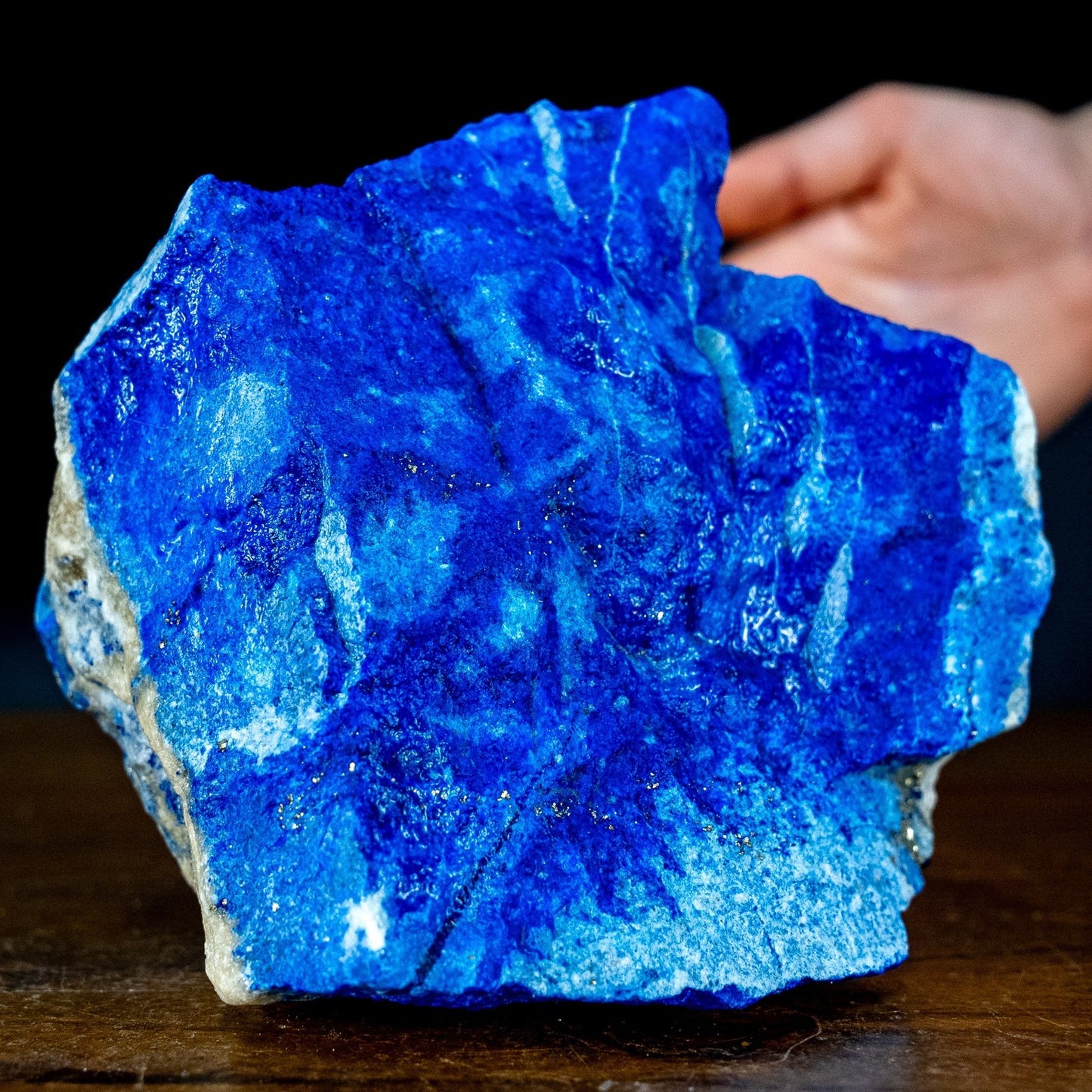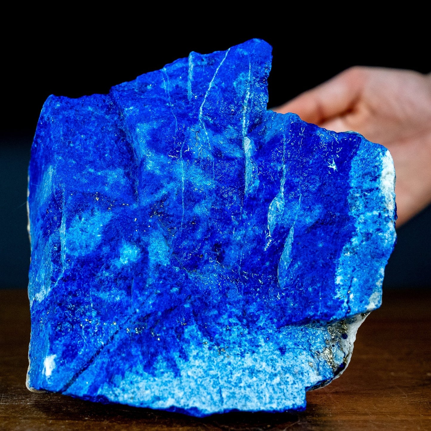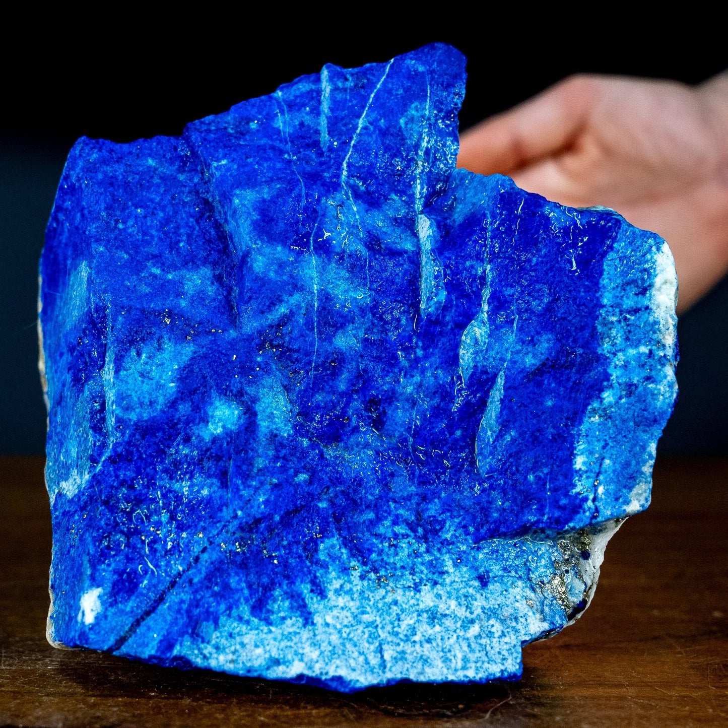 Die besondere Farbe dieses hochwertigen Lapislazuli ist einfach bezaubernd: Eine Hälfte des Rohen-Kristalls hat einen sehr klaren und kristallinen Ton, während die andere Hälfte kräftigere und intensivere Blautöne aufweist.