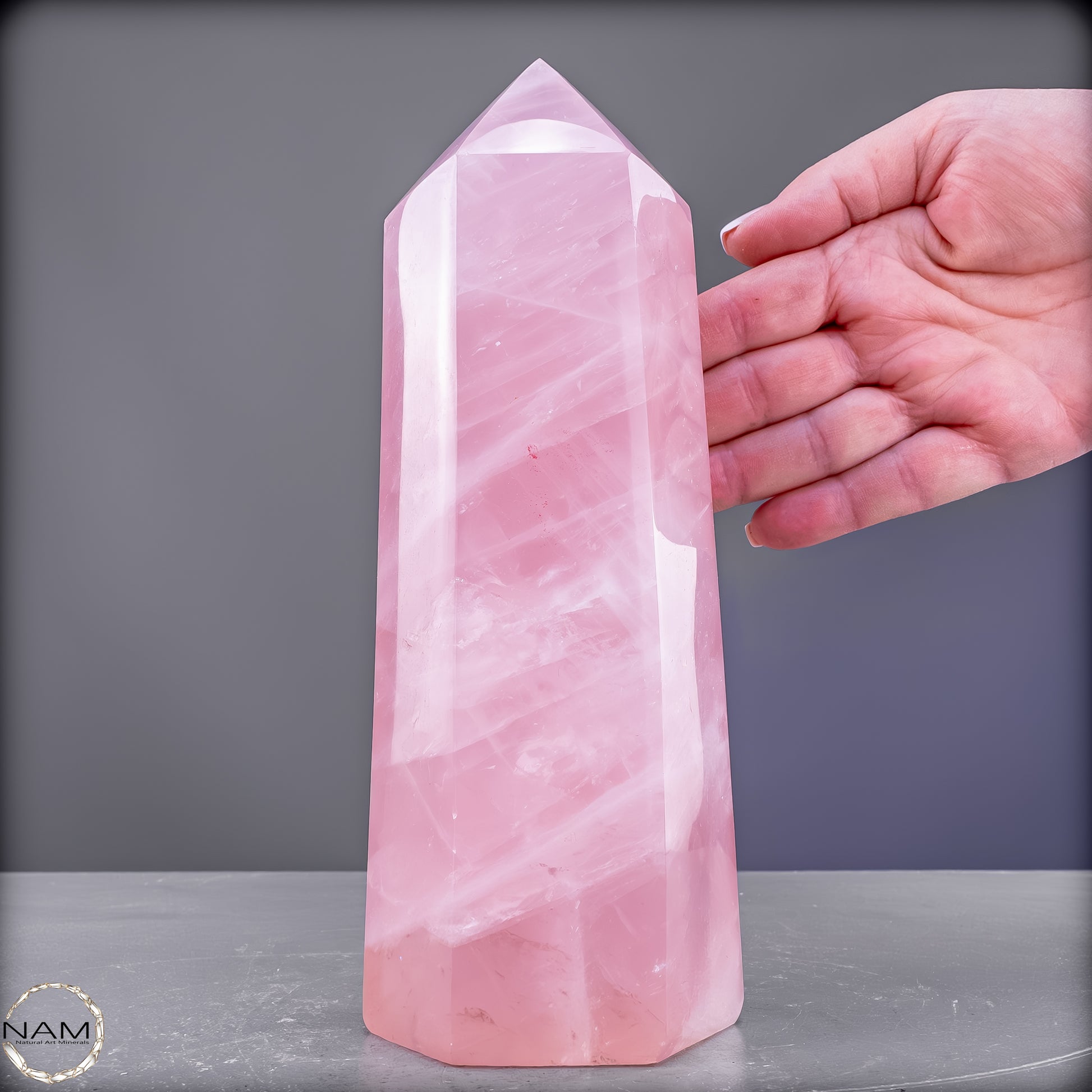 Natürlicher Rosenquarz-Kristall Obelisk aus Brasilien - 2004,31 g