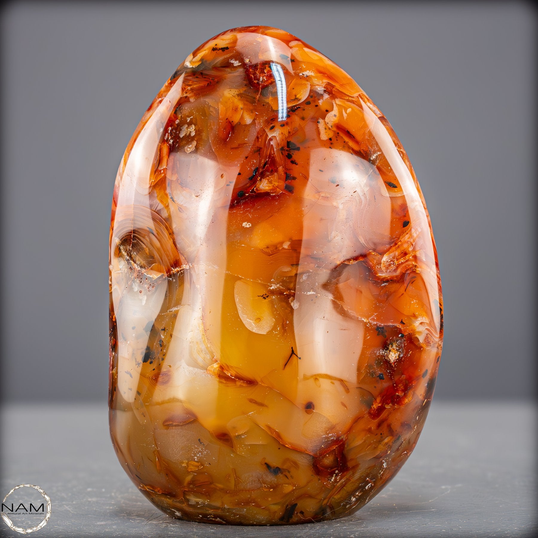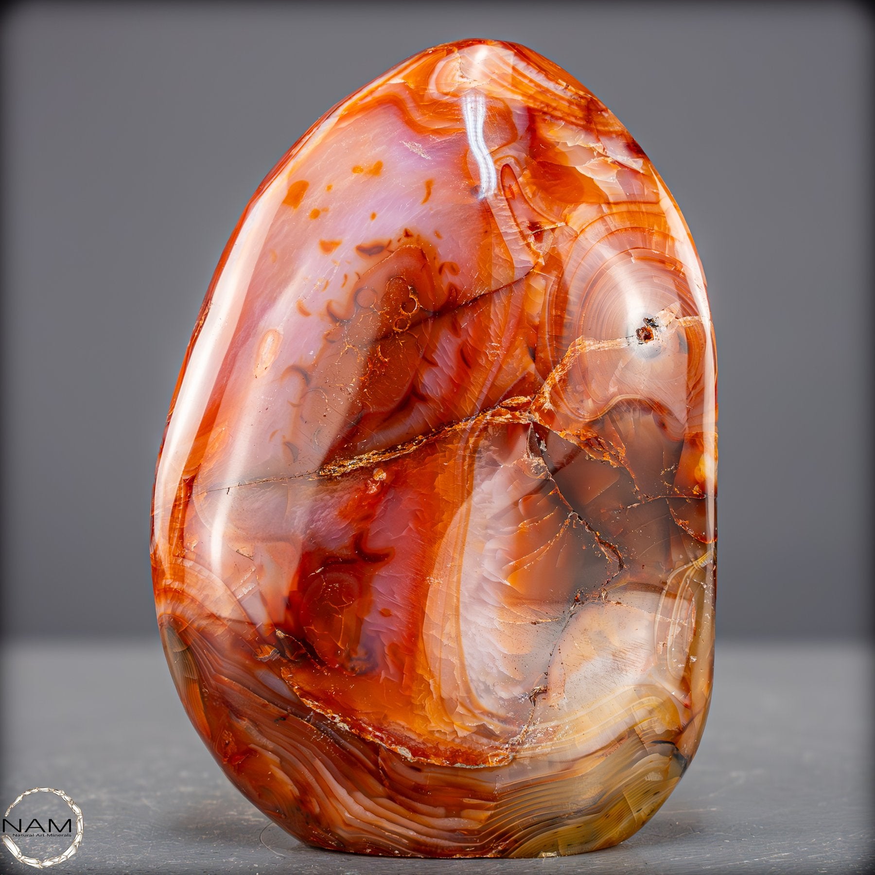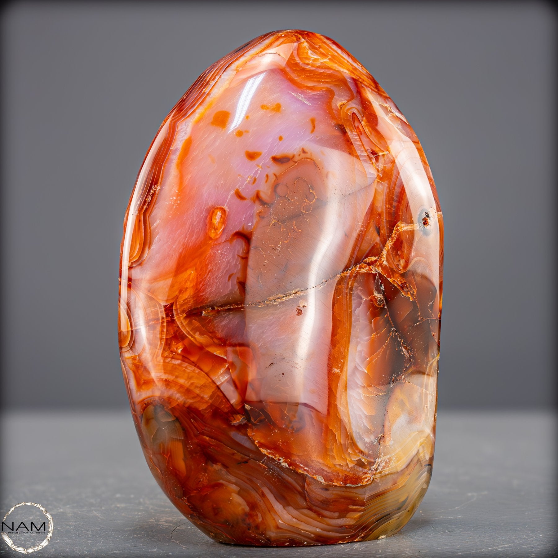 Von Hand poliert, um ihn noch seltener und Perfekter zu machen, mit sehr faszinierenden kontrastierenden Orangenen Anteilen.