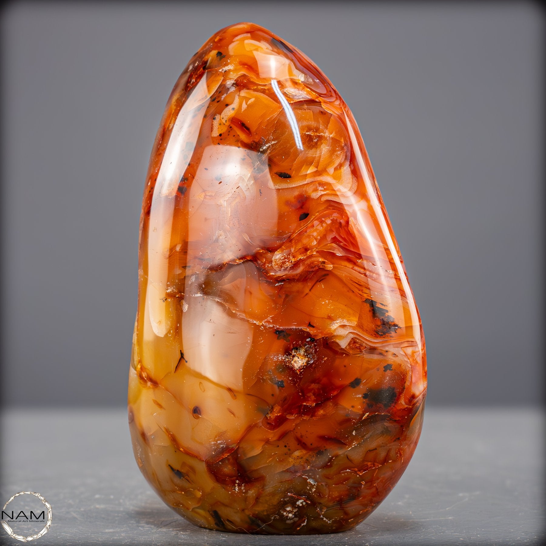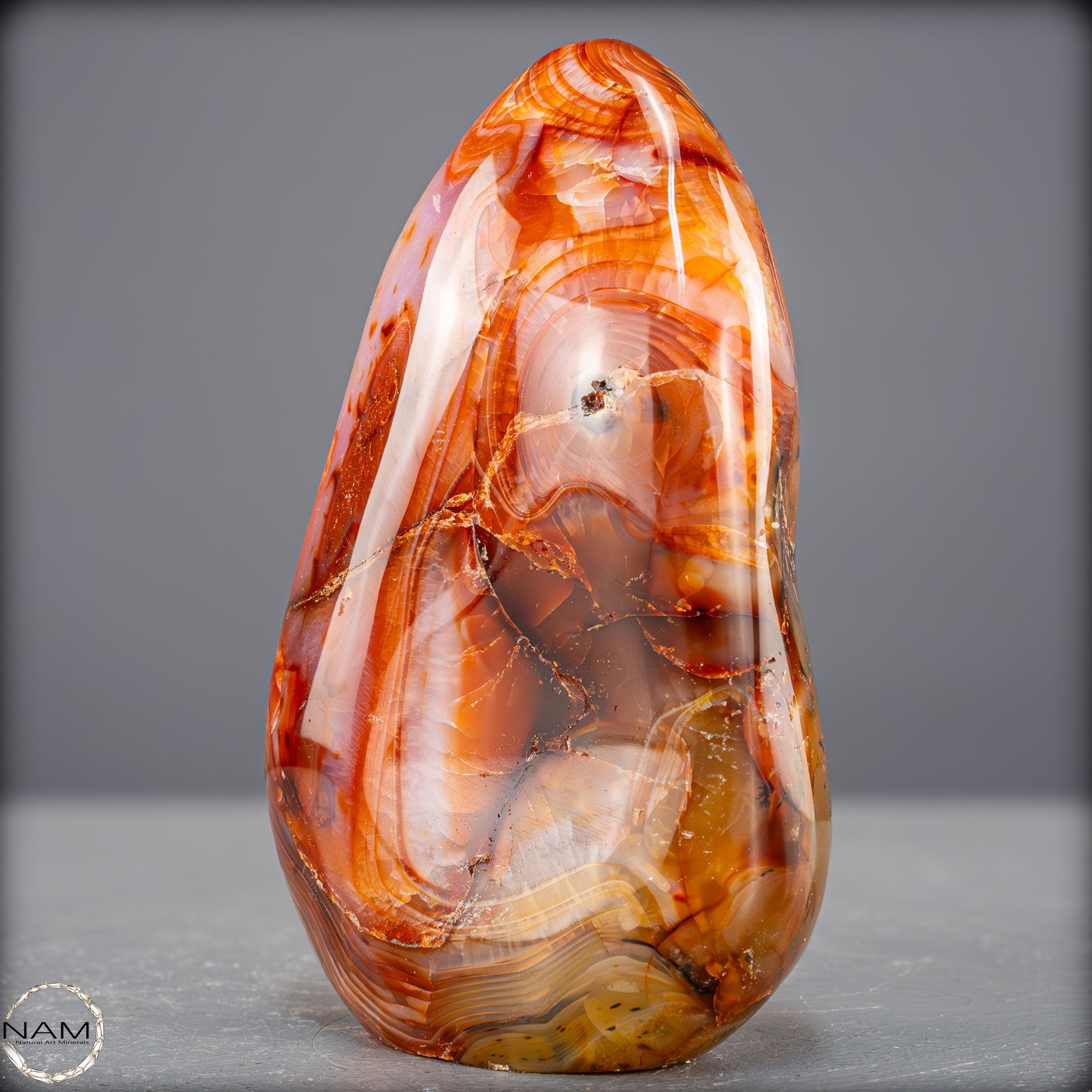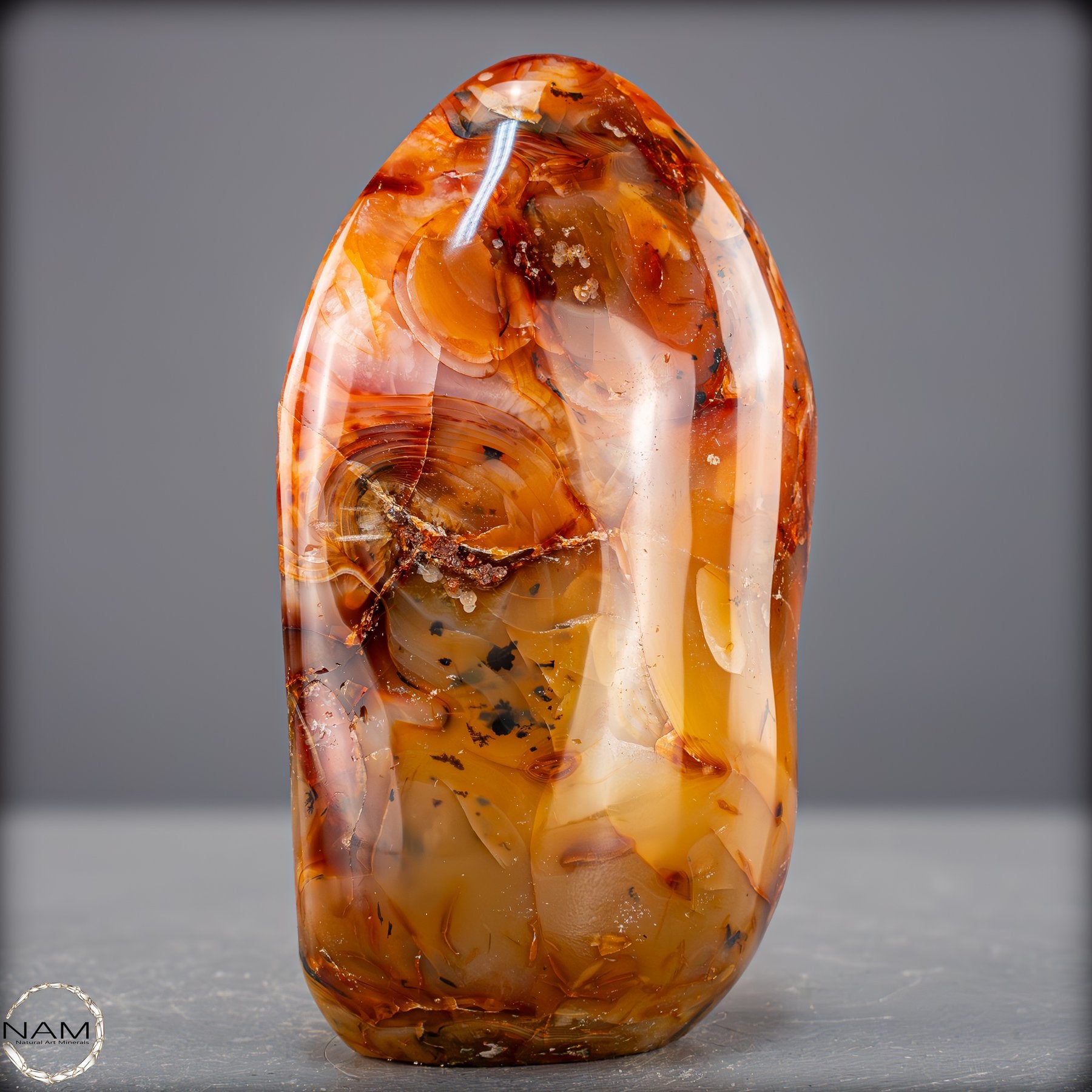 Von Hand poliert, um ihn noch seltener und Perfekter zu machen, mit sehr faszinierenden kontrastierenden Orangenen Anteilen.