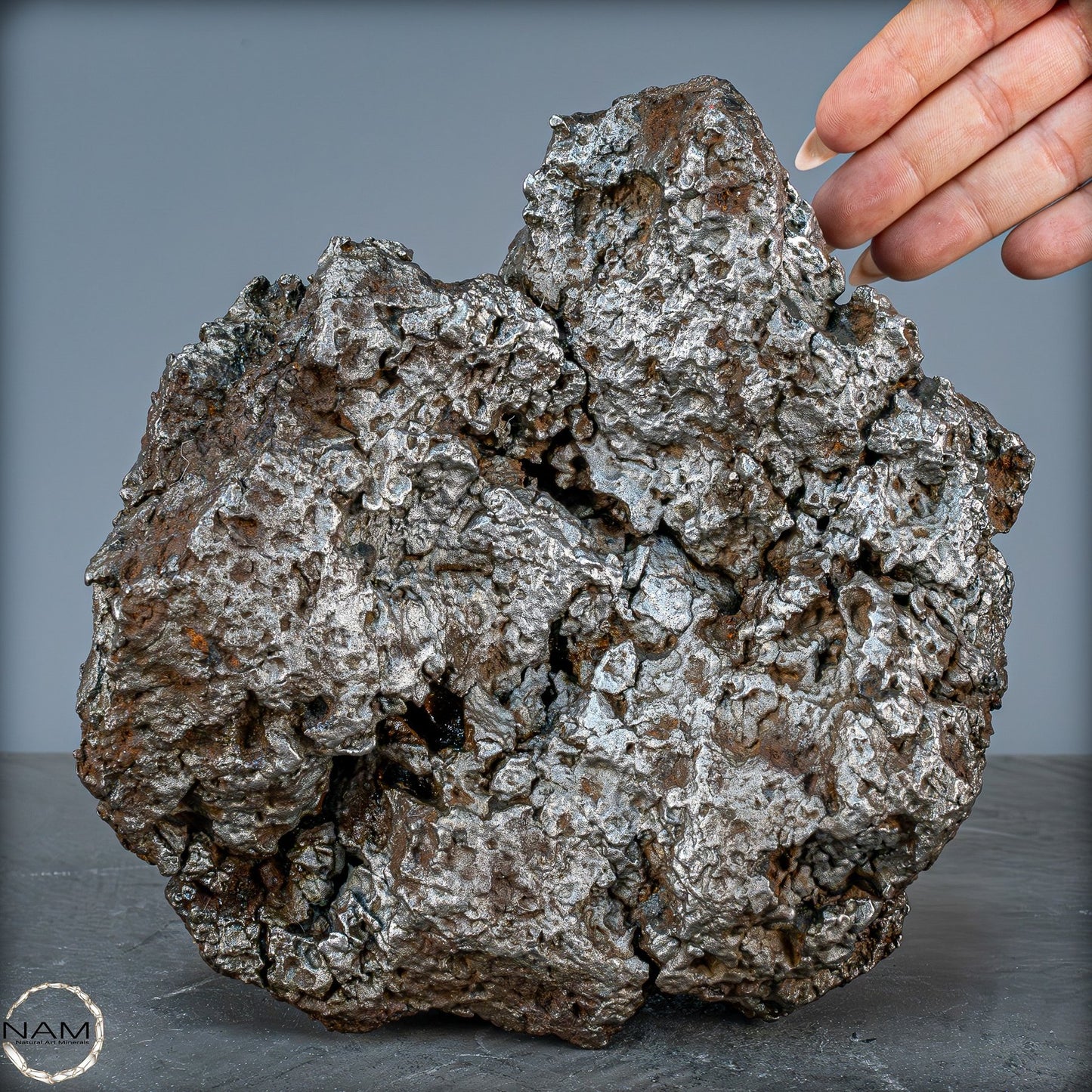 In diesem Los präsentieren wir ein Natürliches Stück Campo del Cielo Metallmeteorit von ausgefallener und seltener Größe, in perfektem Zustand, ohne störende Oxide, sauber und gesund. Er hat die besten Eigenschaften, die ein metallischer Meteorit haben kann, mit einer unendlichen Anzahl von Regmaglyphen unterschiedlicher Größe sowie einer natürlichen skulpturalen Form, die eines Museums oder einer ausgewählten Meteoritensammlung würdig ist.