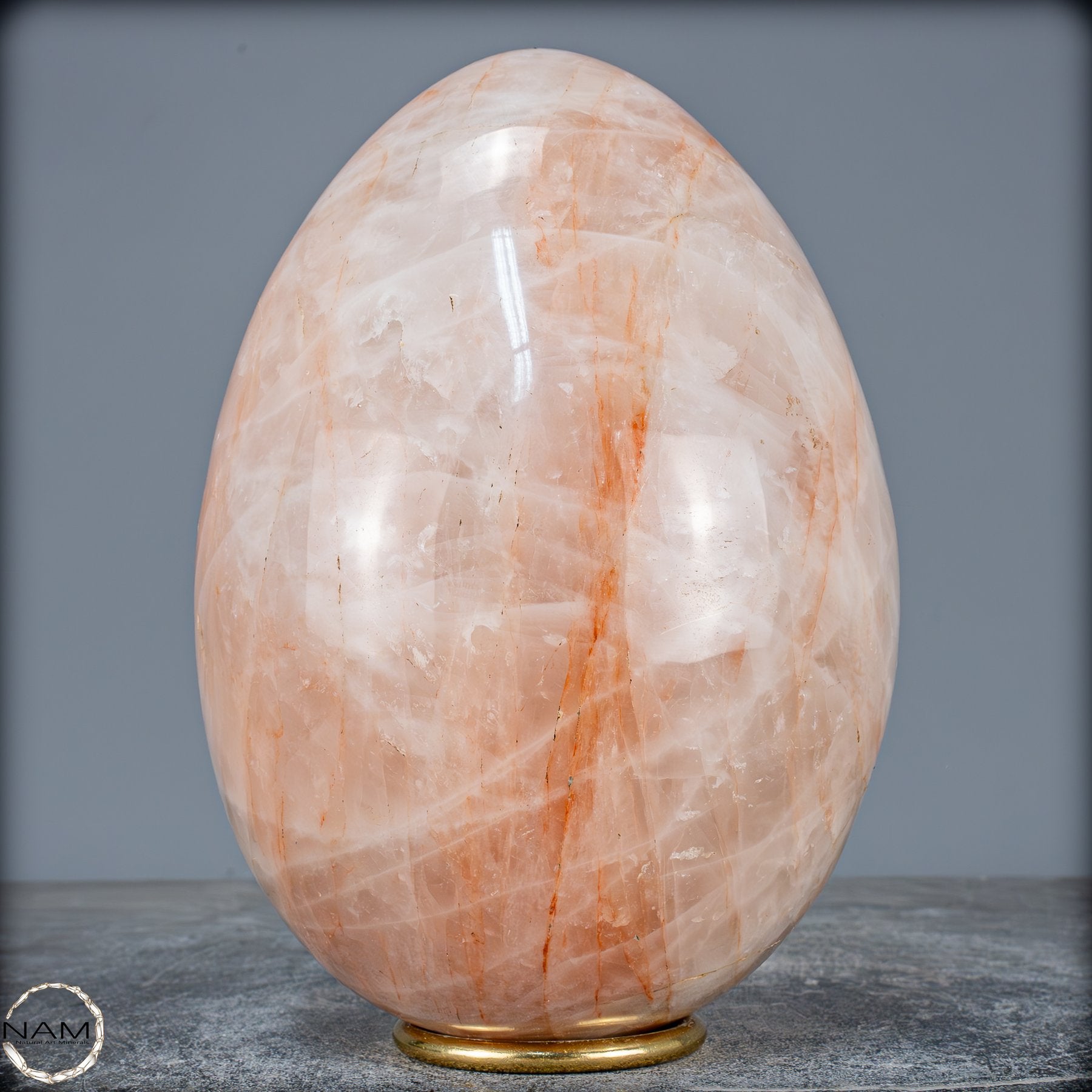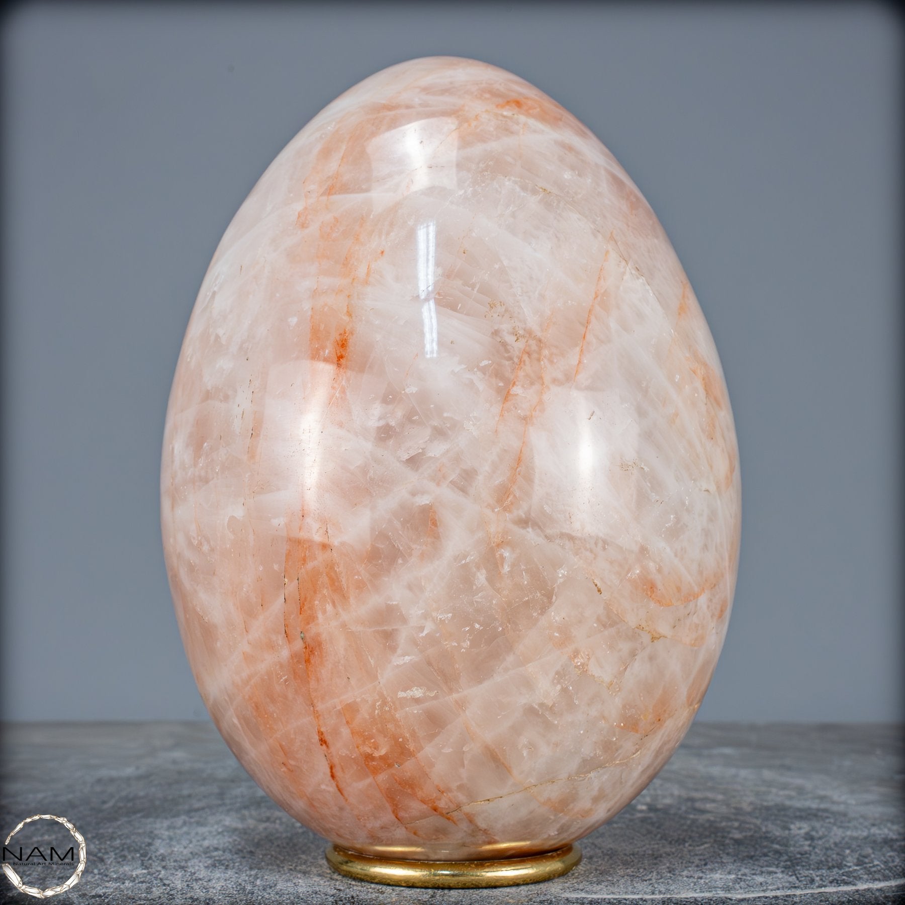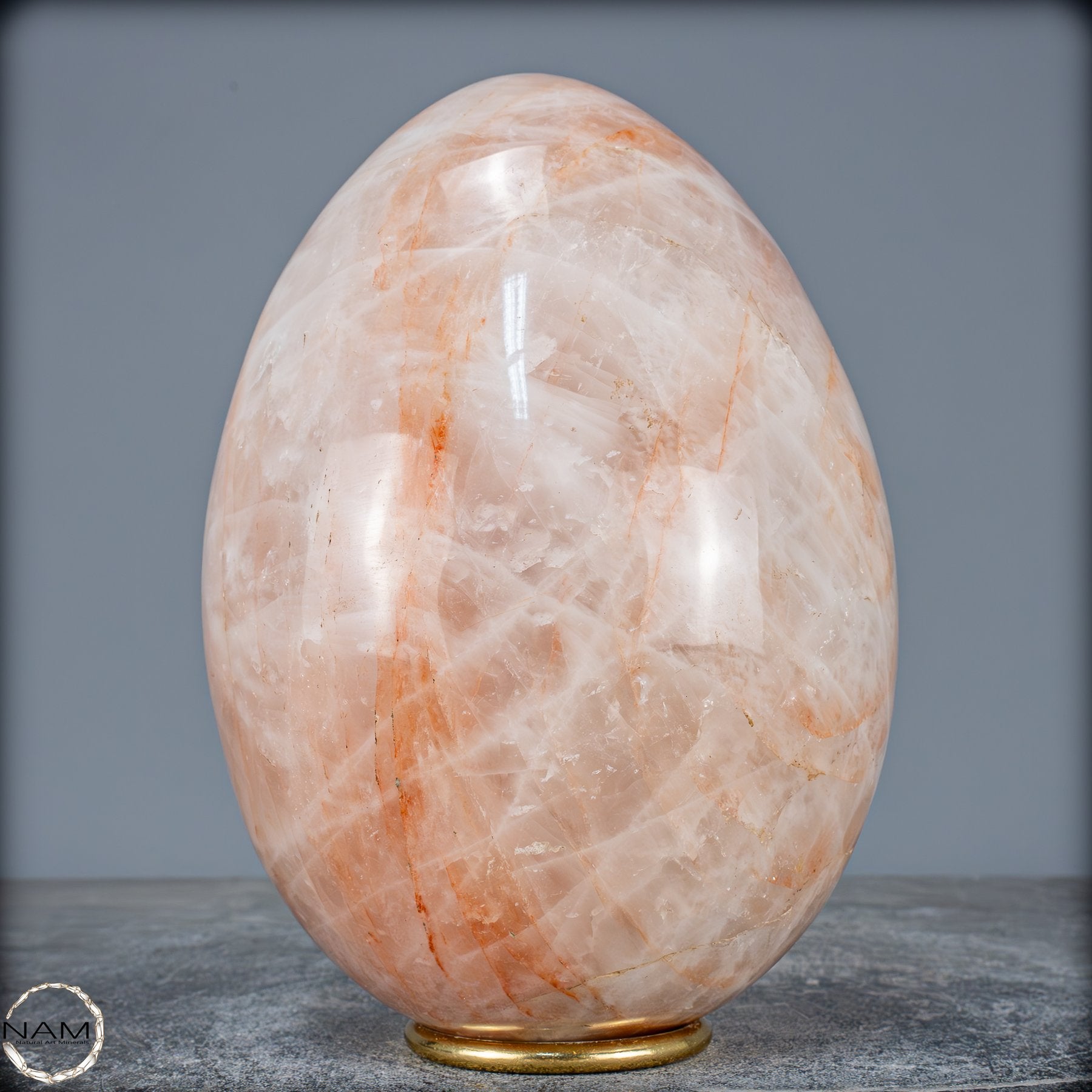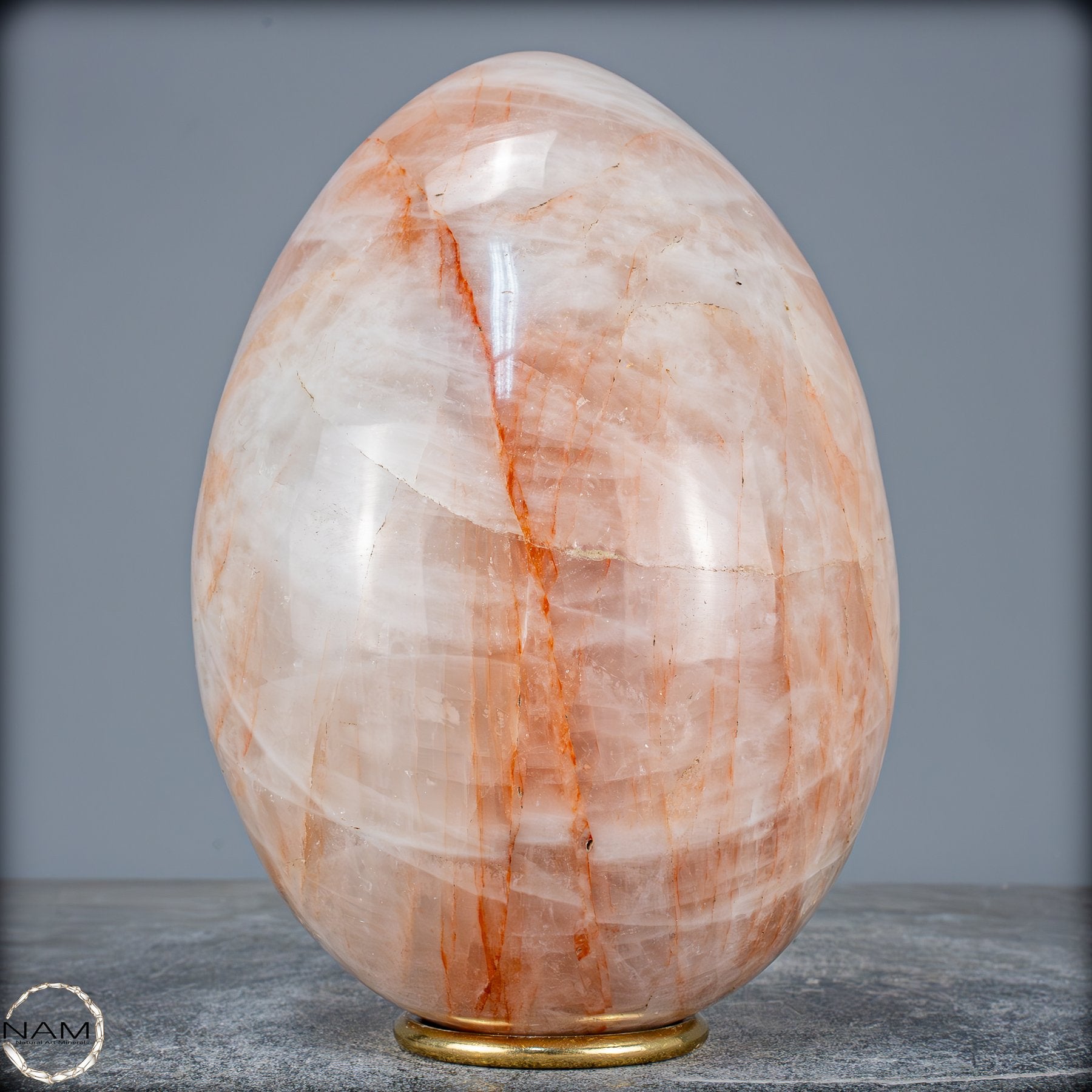 Dieses besondere rote Quarz-Ei zeigt eine interessante Mischung aus warmen, orange-roten Einschlüssen, die von klaren und milchigen Quarzpartien durchzogen werden. Die sanft polierte Oberfläche hebt die natürlichen Muster und Strukturen des Quarzes hervor und verleiht dem Ei eine faszinierende Tiefe und Eleganz. Roter Quarz wird oft wegen seiner energetisierenden und belebenden Eigenschaften geschätzt und könnte als Dekorationsstück sowie als spirituelles Werkzeug genutzt werden. Der hölzerne Ständer, auf dem das Ei präsentiert wird, verleiht ihm Stabilität und eine natürliche Ästhetik, die den Gesamteindruck abrundet. Ein wunderschönes Stück für Sammler und Liebhaber natürlicher Kristalle.