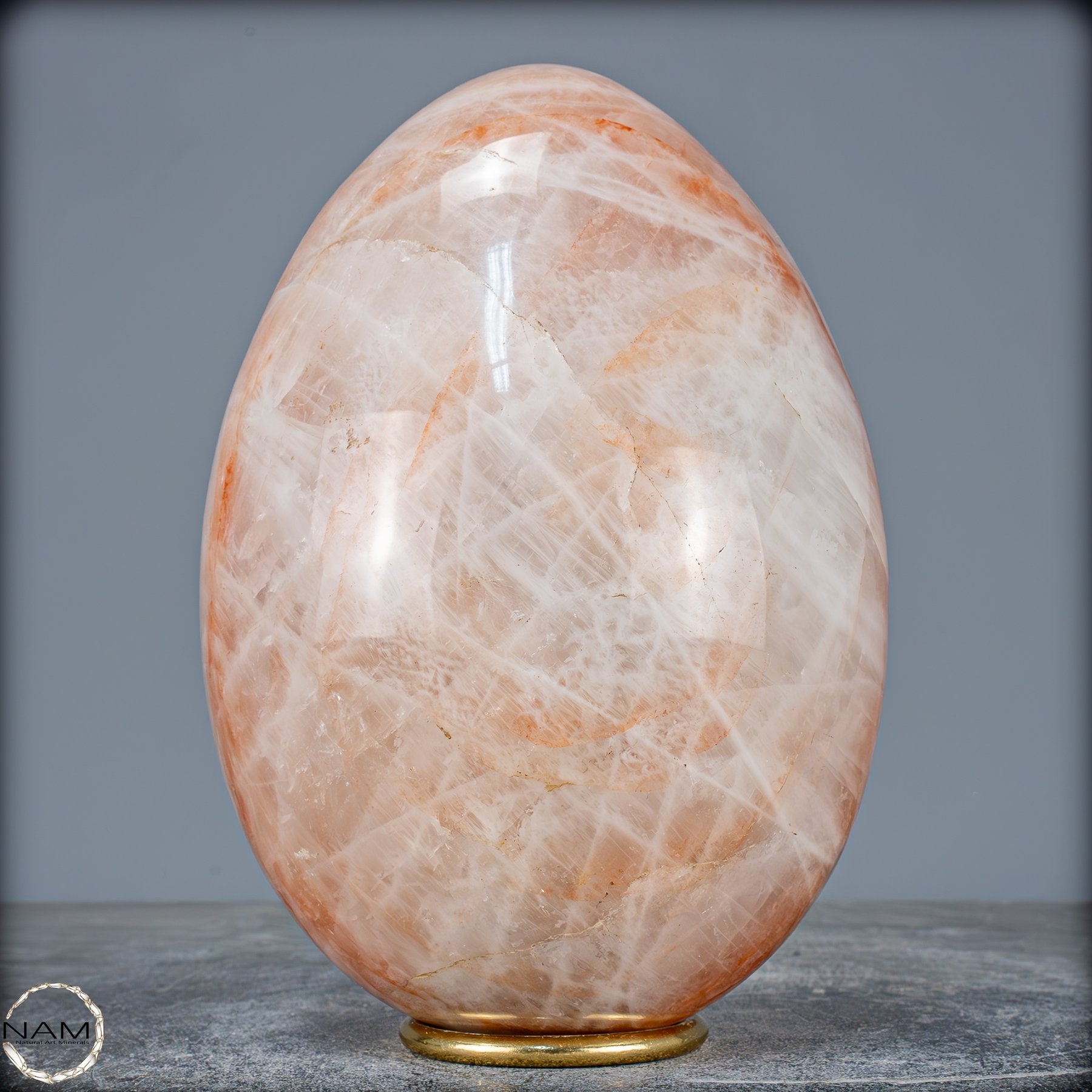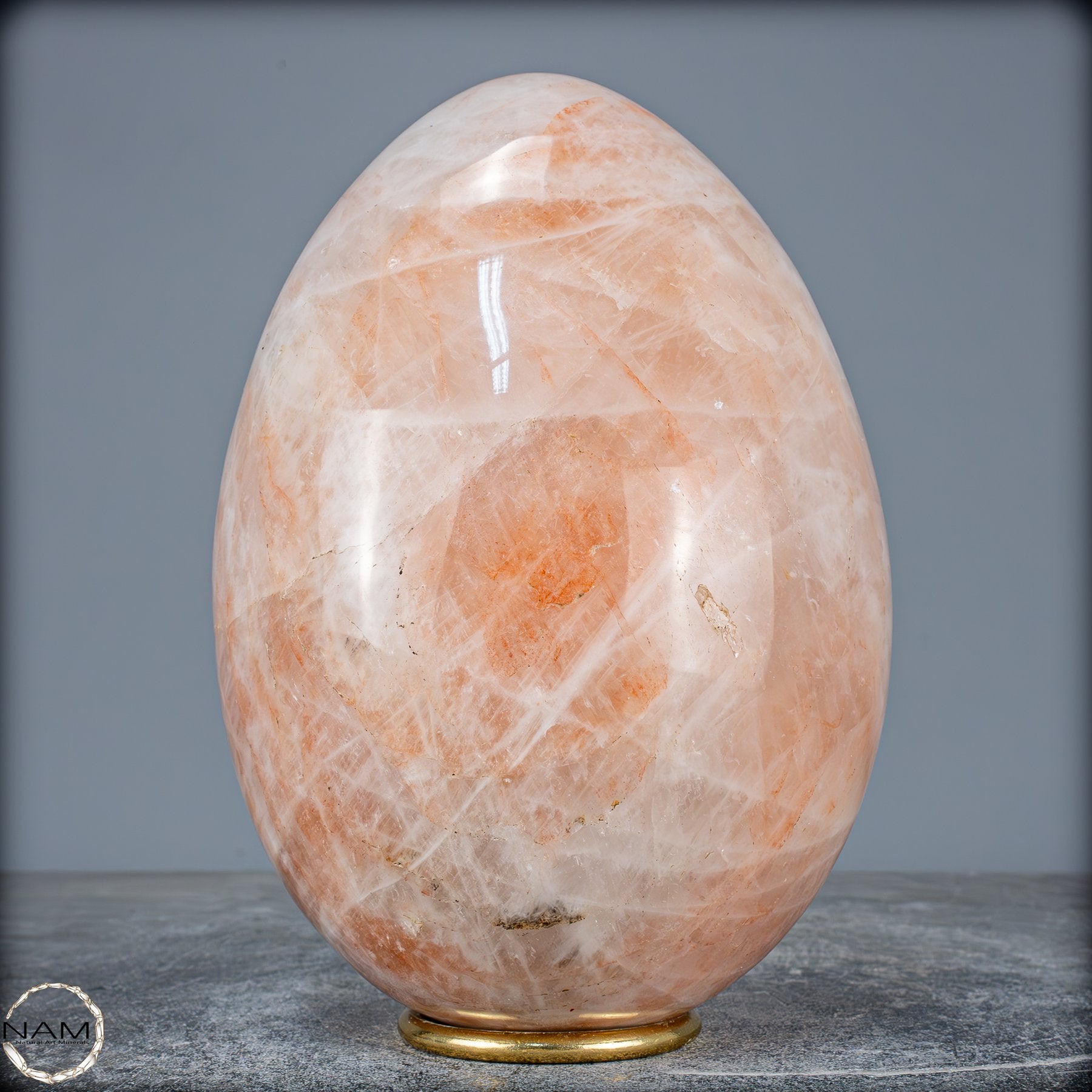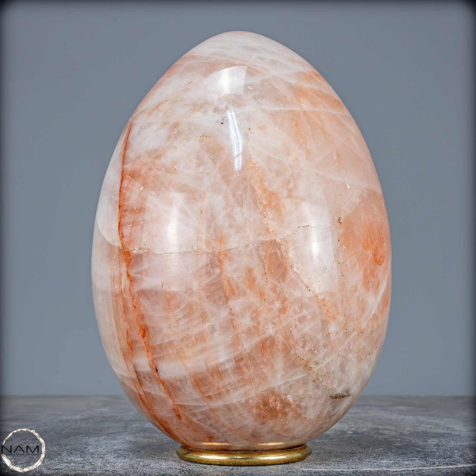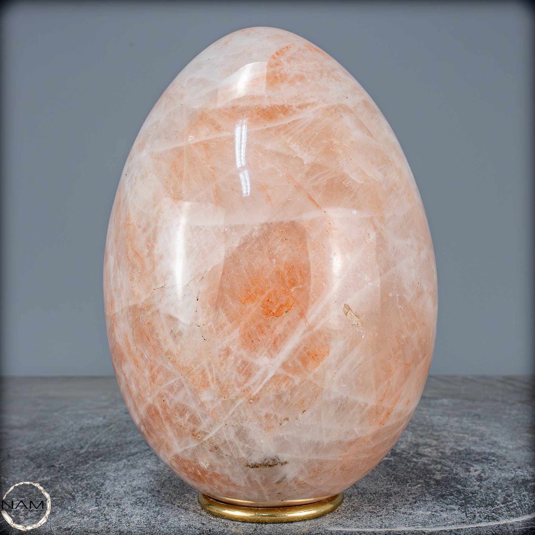 Dieses besondere rote Quarz-Ei zeigt eine interessante Mischung aus warmen, orange-roten Einschlüssen, die von klaren und milchigen Quarzpartien durchzogen werden. Die sanft polierte Oberfläche hebt die natürlichen Muster und Strukturen des Quarzes hervor und verleiht dem Ei eine faszinierende Tiefe und Eleganz. Roter Quarz wird oft wegen seiner energetisierenden und belebenden Eigenschaften geschätzt und könnte als Dekorationsstück sowie als spirituelles Werkzeug genutzt werden. Der hölzerne Ständer, auf dem das Ei präsentiert wird, verleiht ihm Stabilität und eine natürliche Ästhetik, die den Gesamteindruck abrundet. Ein wunderschönes Stück für Sammler und Liebhaber natürlicher Kristalle.