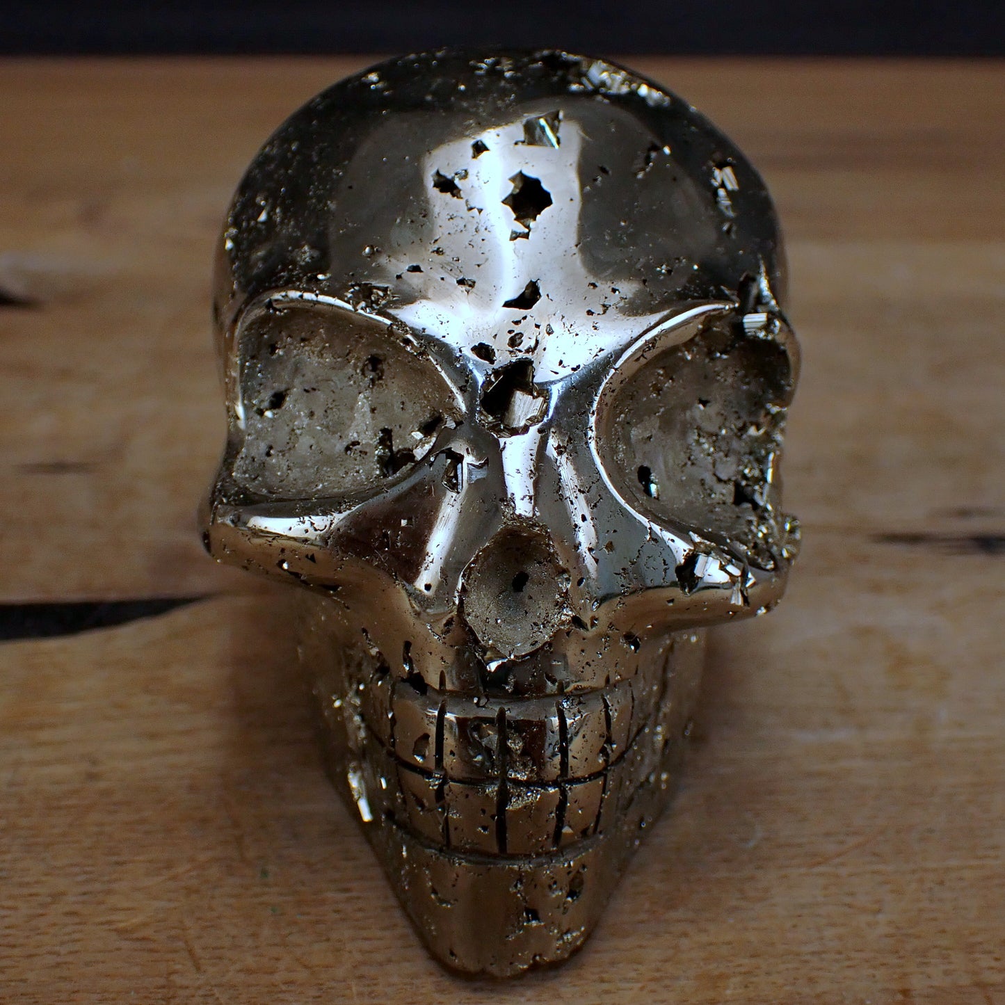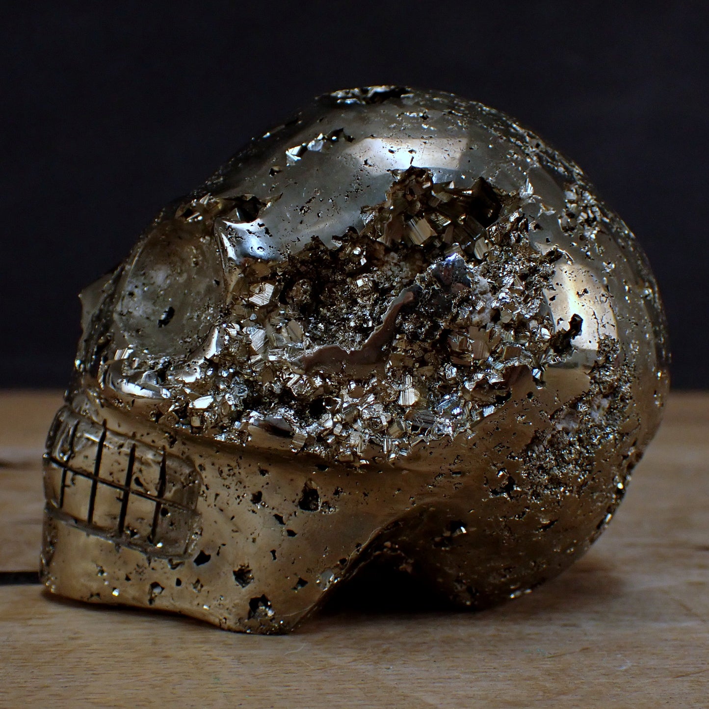 Pyrit Schädel/Totenkopf "Alien" Skulptur - 988,17g