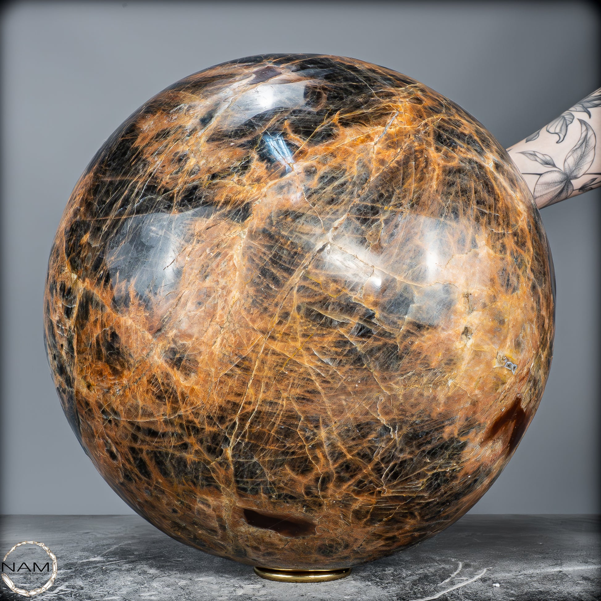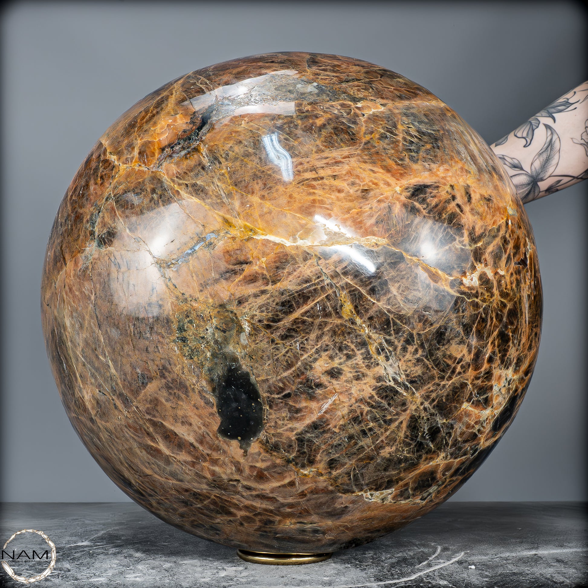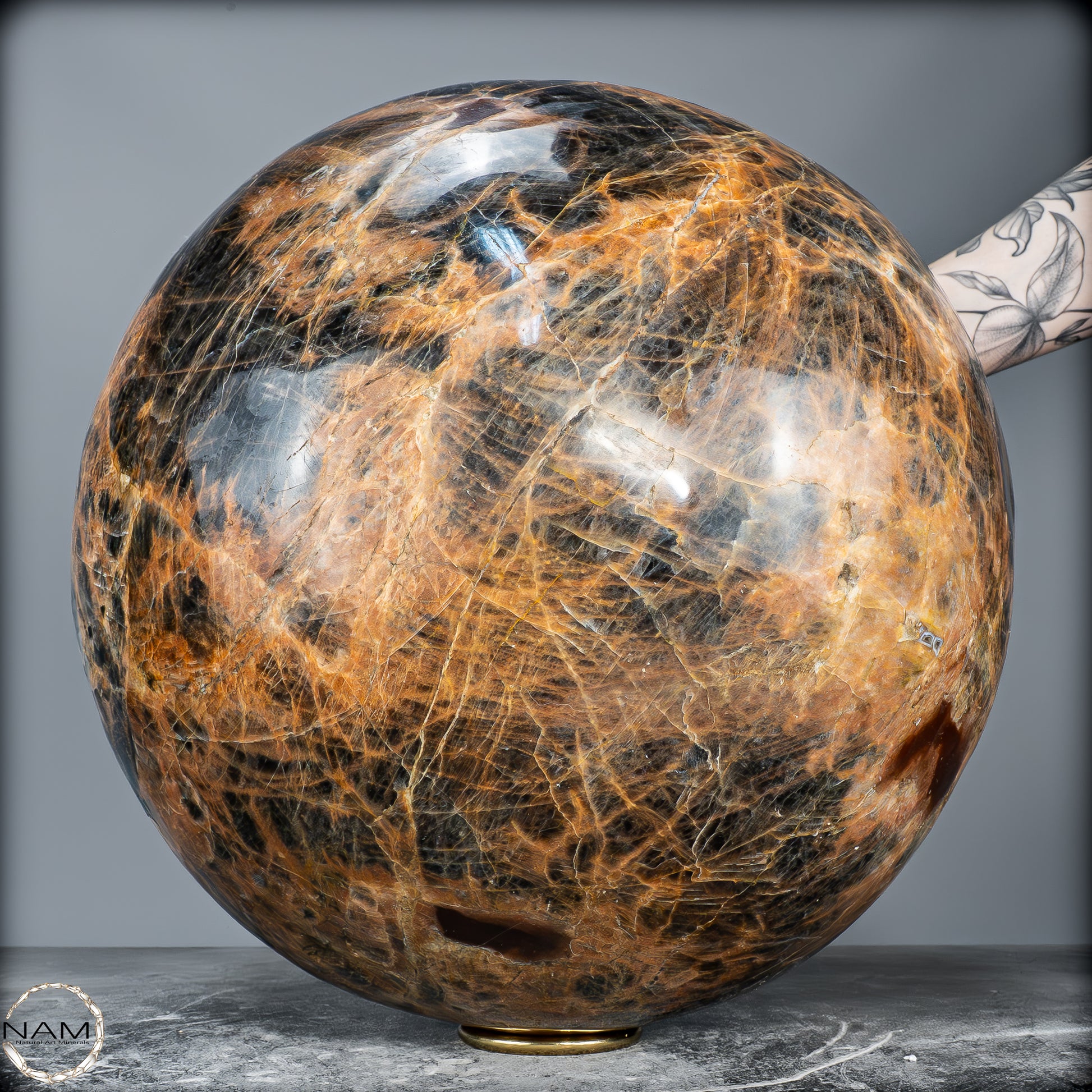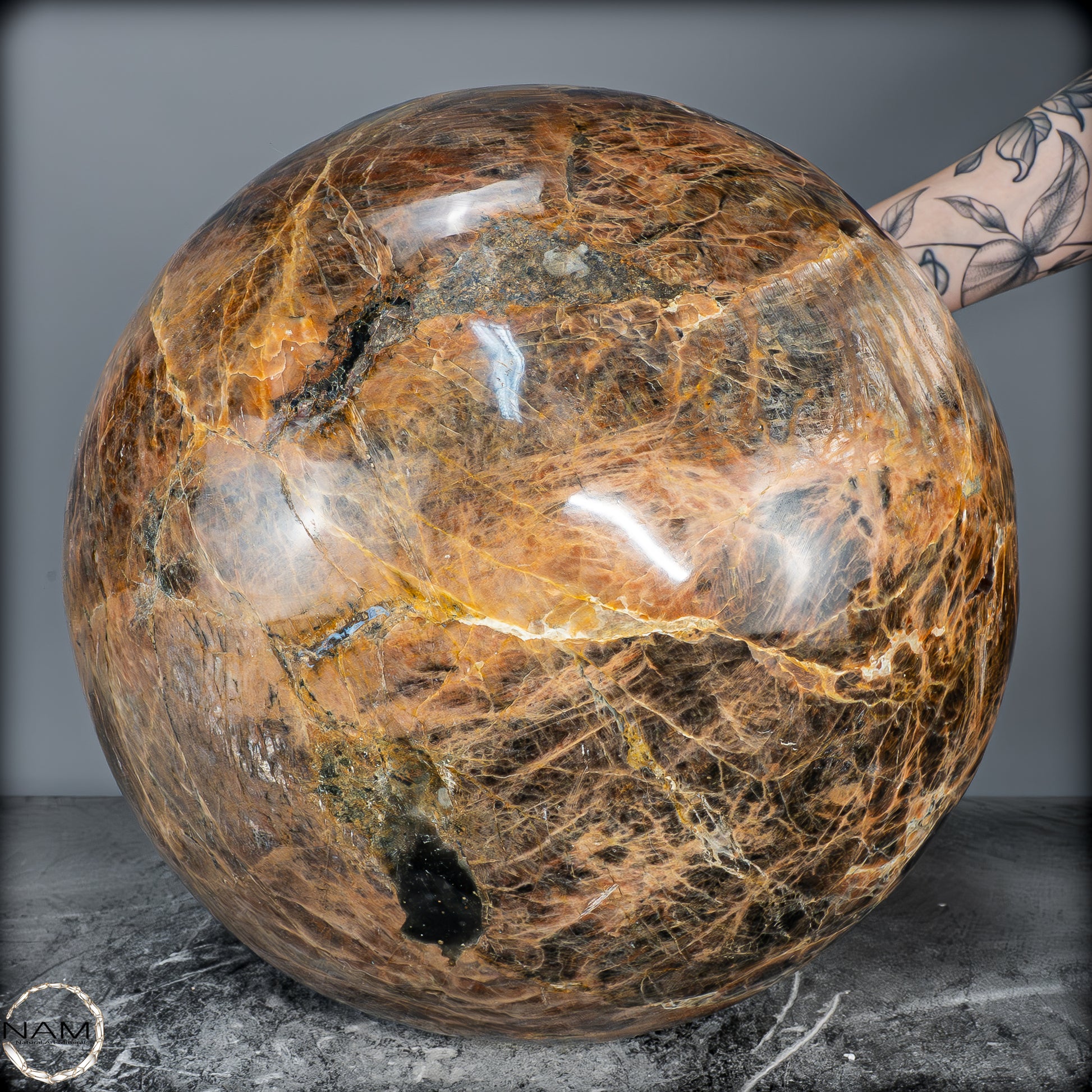 Durch ihre Größe und Qualität ist diese Mondstein-Kugel nicht nur ein dekoratives Highlight, sondern auch ein außergewöhnliches Unikat von Seltenheitswert. Solche Stücke sind nur äußerst selten auf dem Markt zu finden und stellen eine wahre Rarität für Liebhaber und Sammler dar.