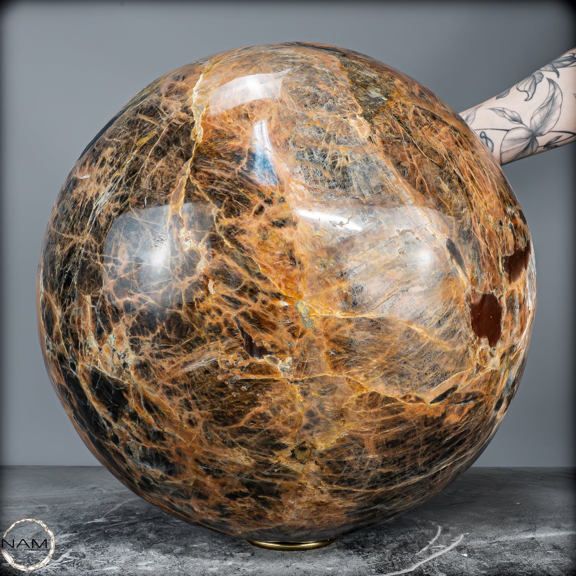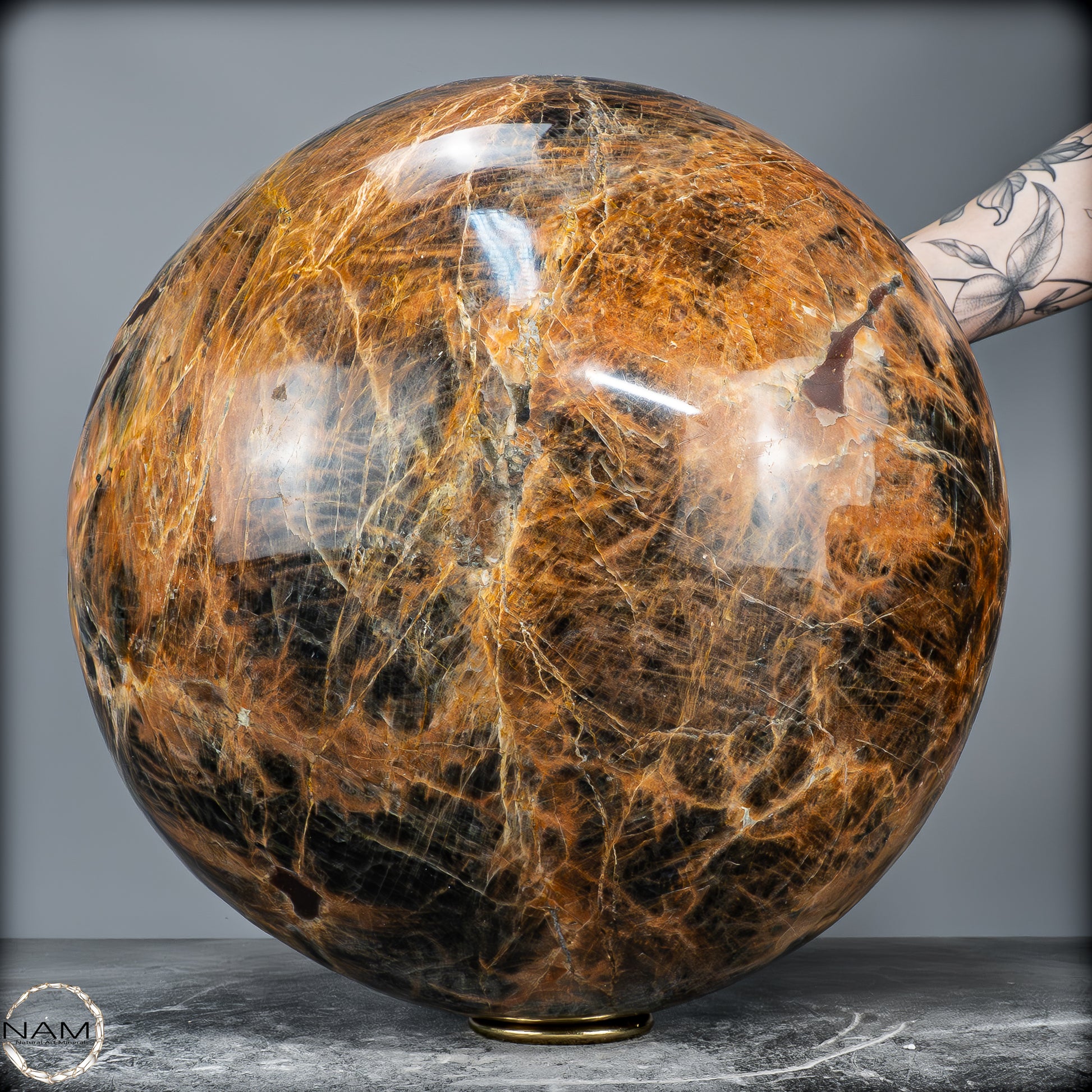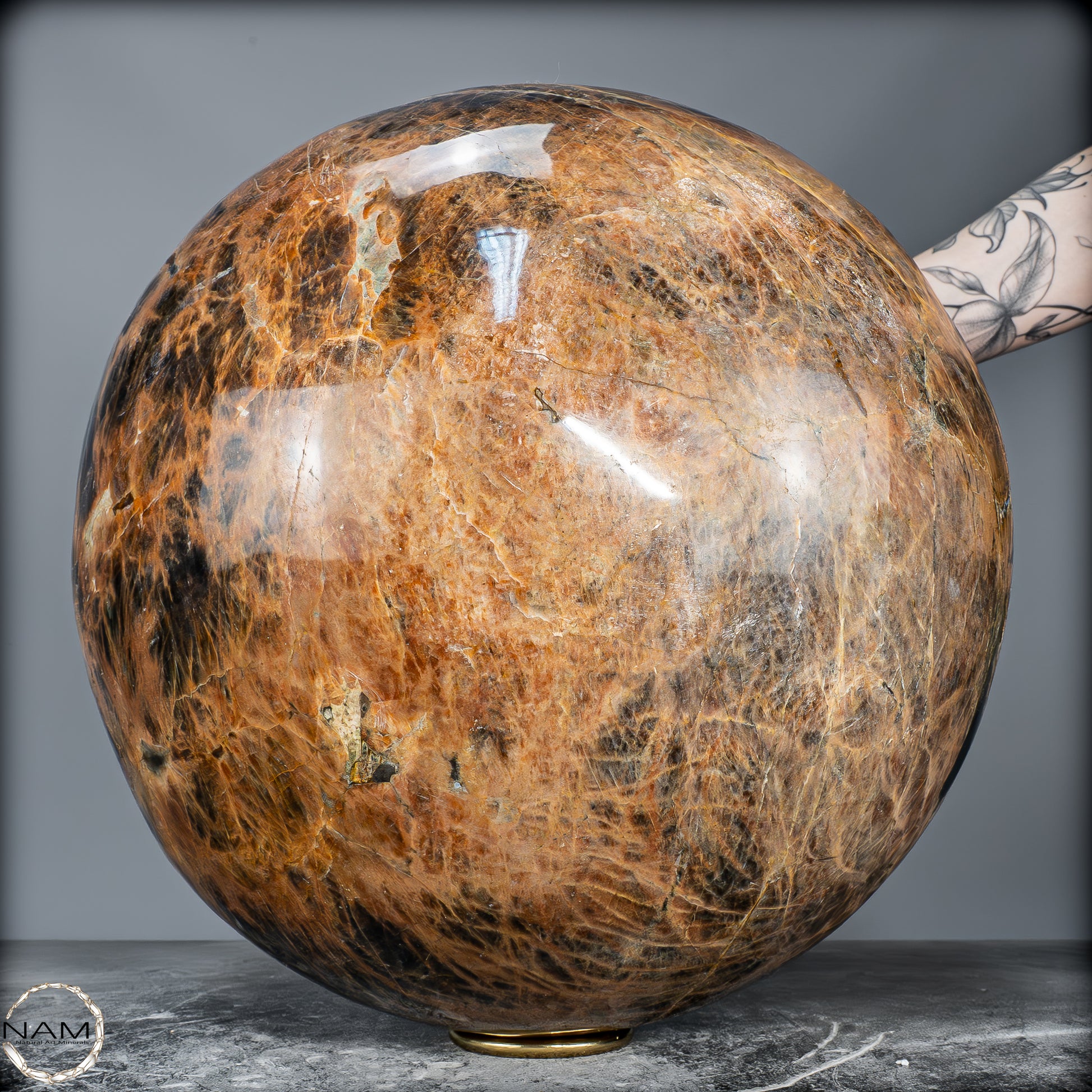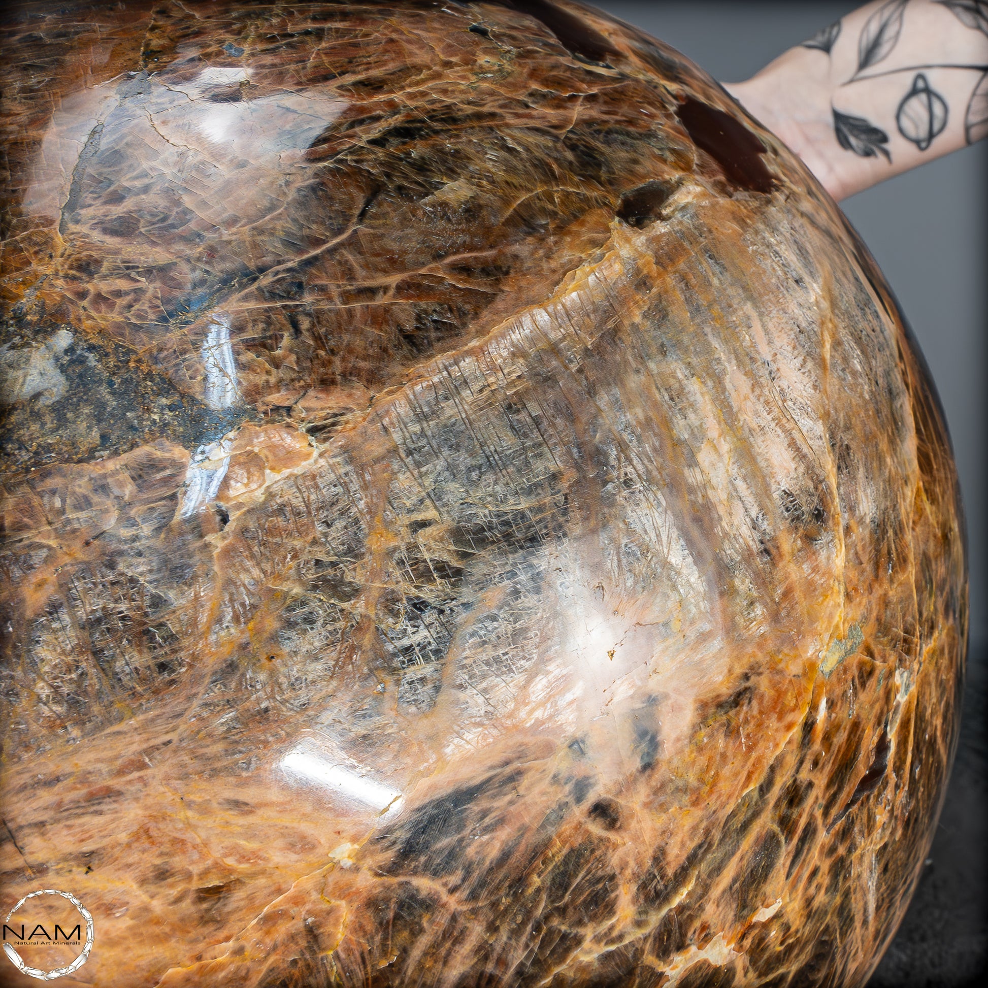 Durch ihre Größe und Qualität ist diese Mondstein-Kugel nicht nur ein dekoratives Highlight, sondern auch ein außergewöhnliches Unikat von Seltenheitswert. Solche Stücke sind nur äußerst selten auf dem Markt zu finden und stellen eine wahre Rarität für Liebhaber und Sammler dar.