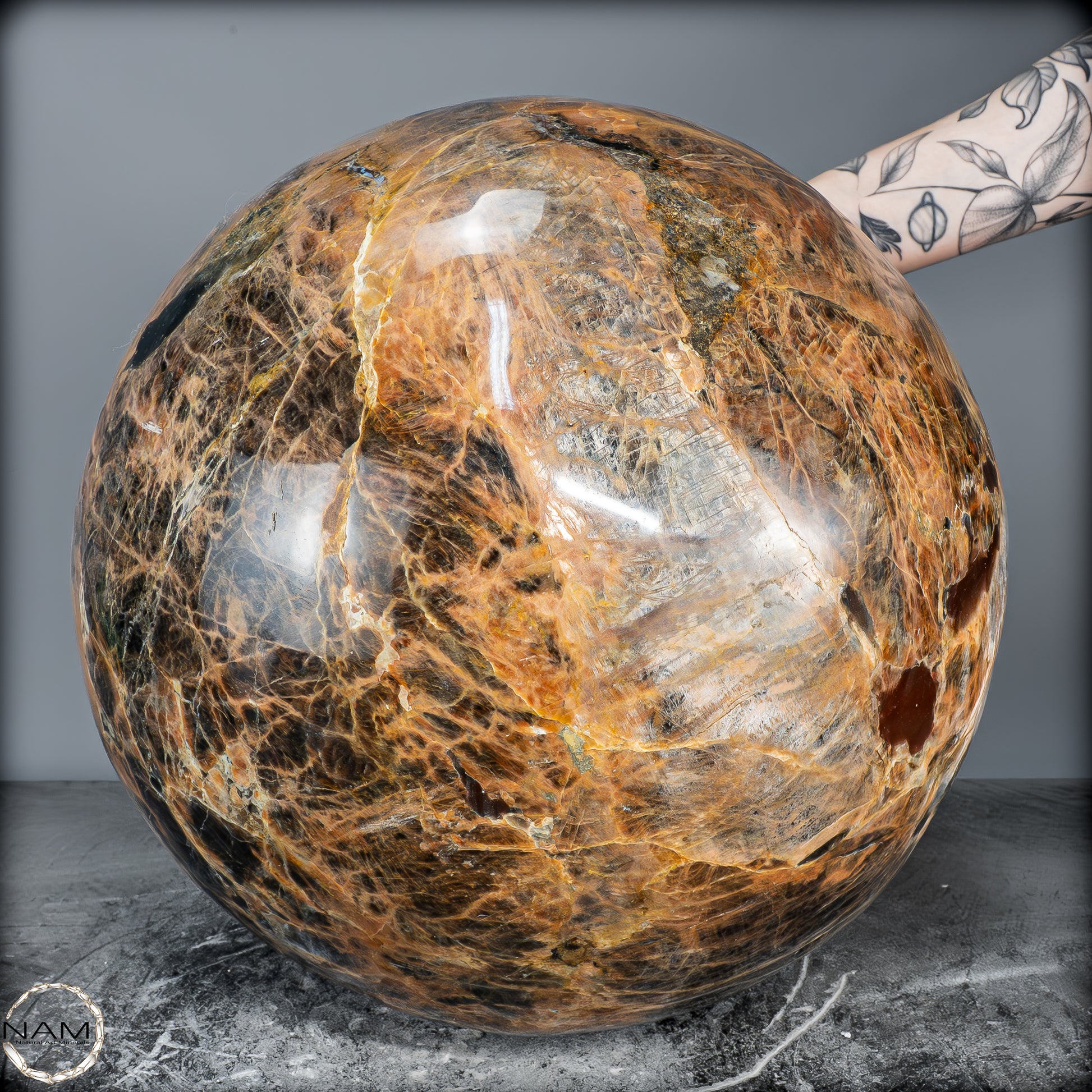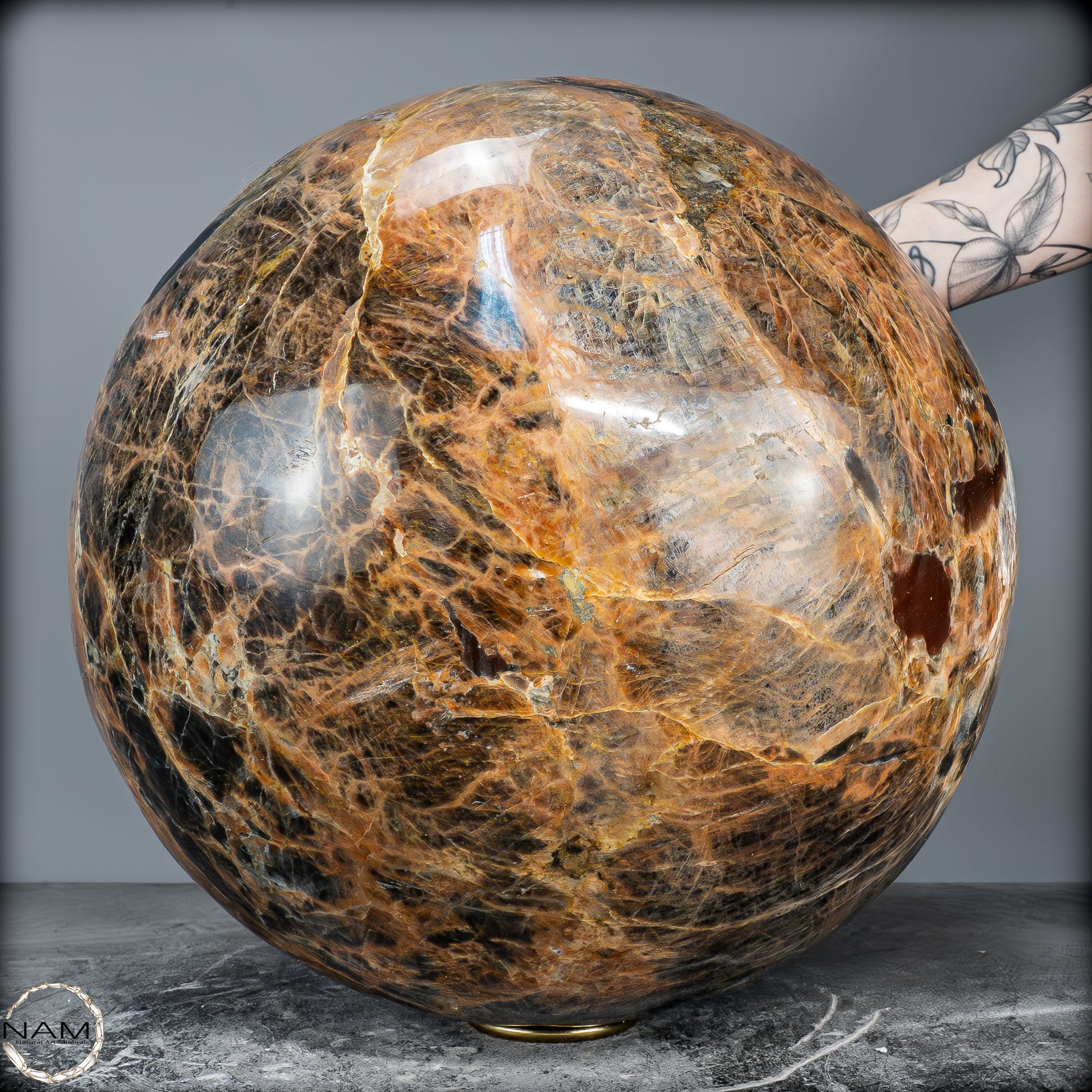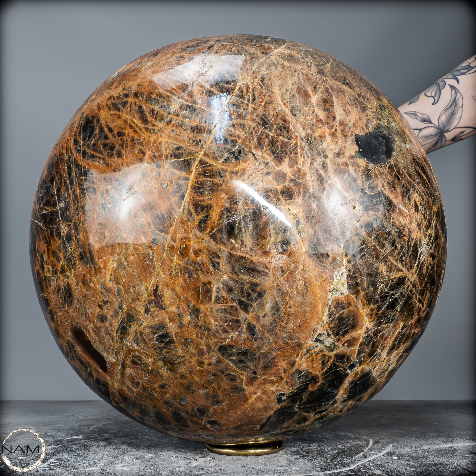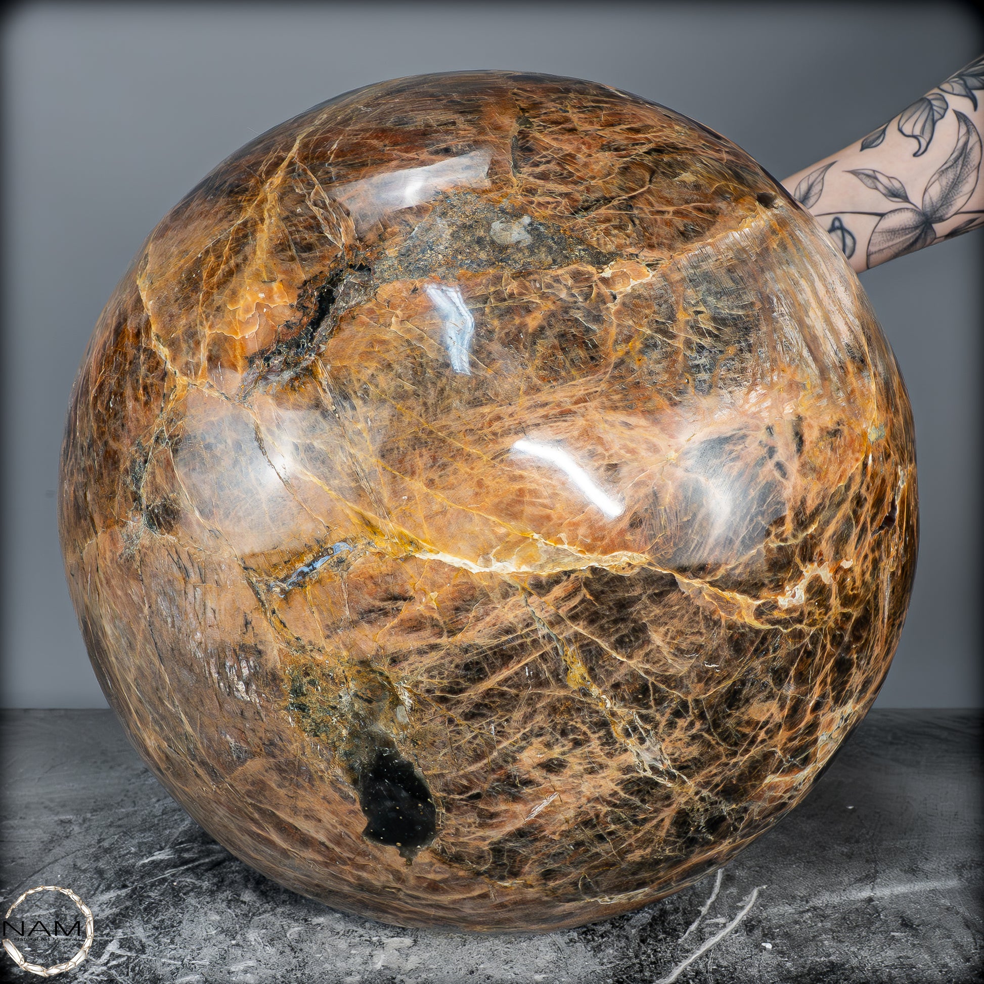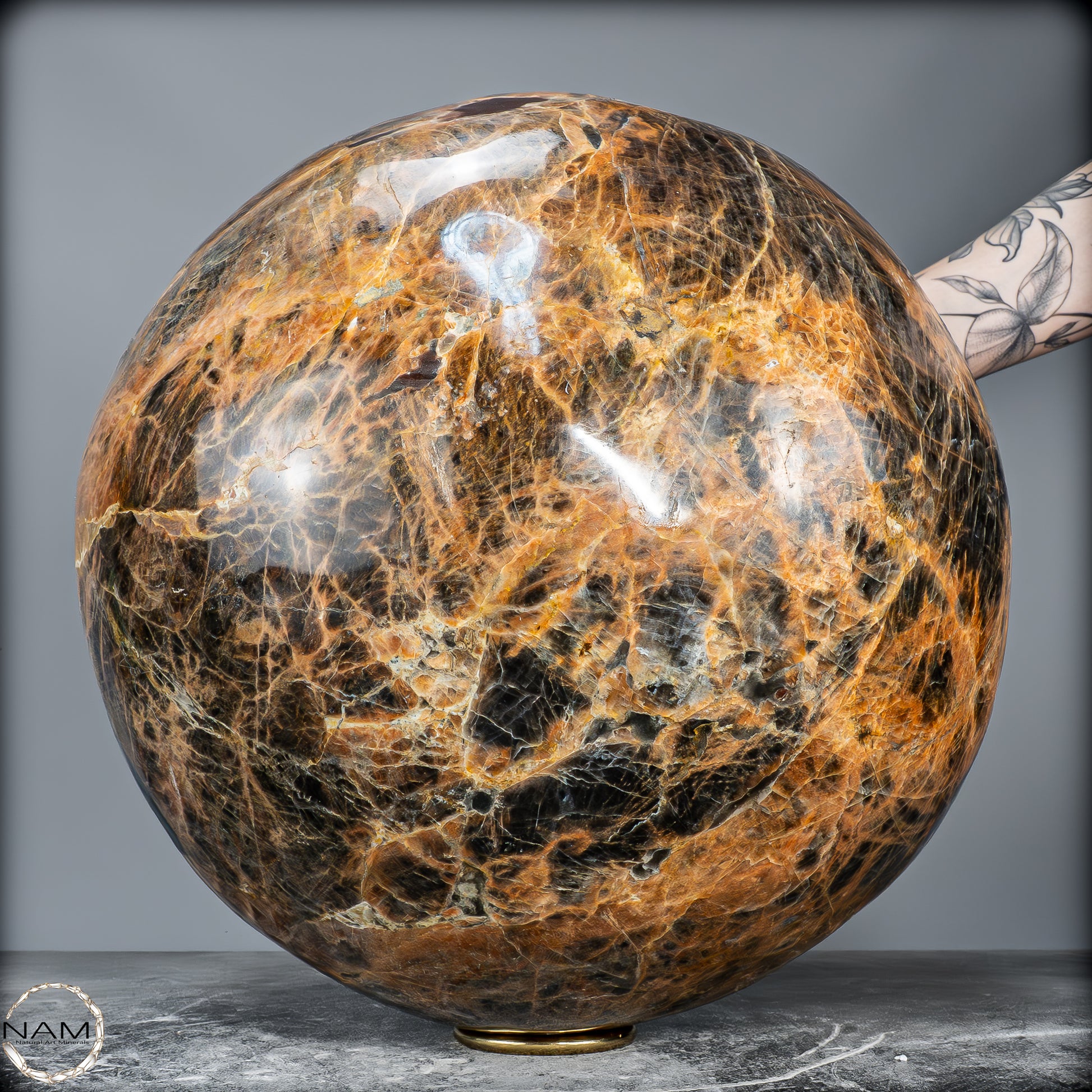 Durch ihre Größe und Qualität ist diese Mondstein-Kugel nicht nur ein dekoratives Highlight, sondern auch ein außergewöhnliches Unikat von Seltenheitswert. Solche Stücke sind nur äußerst selten auf dem Markt zu finden und stellen eine wahre Rarität für Liebhaber und Sammler dar.