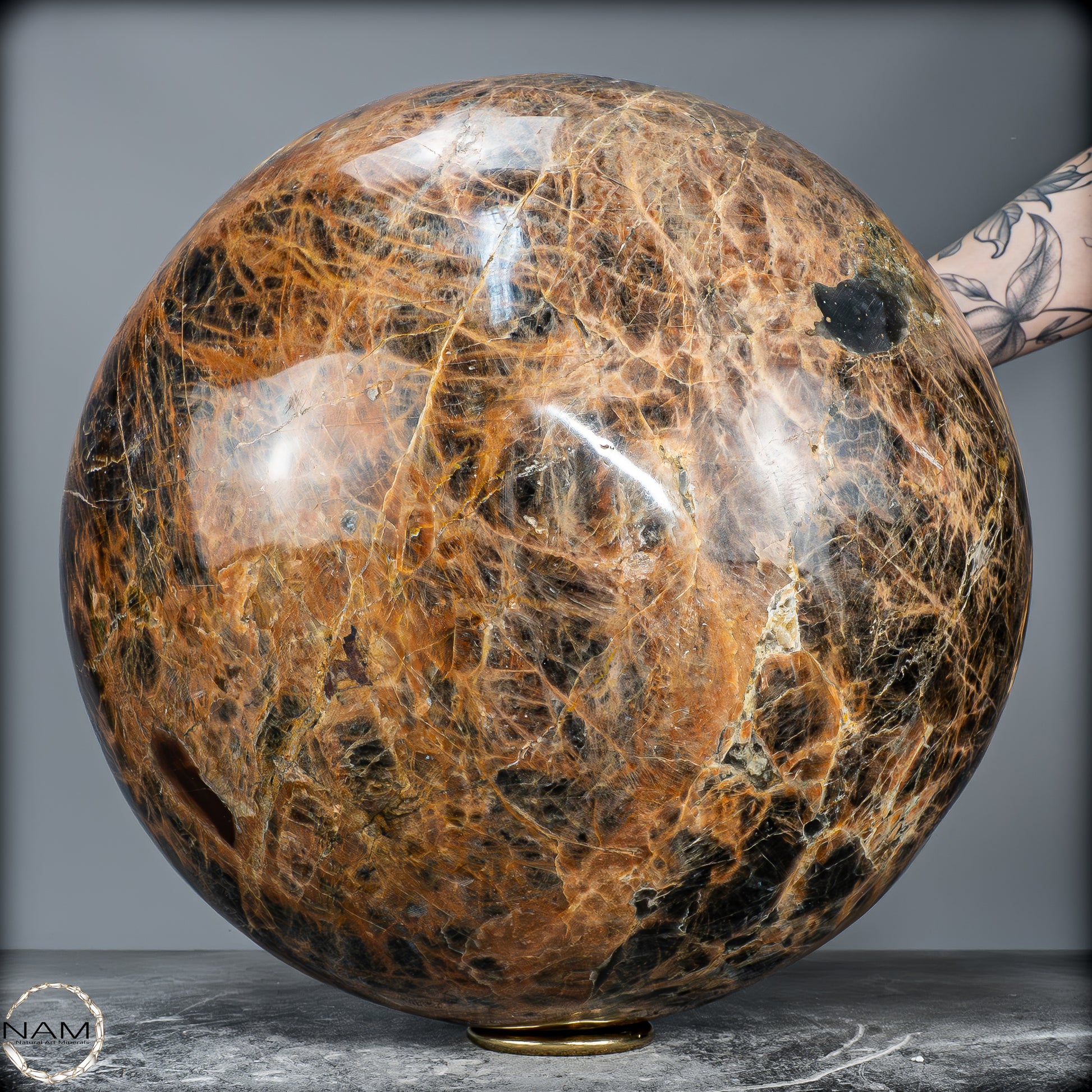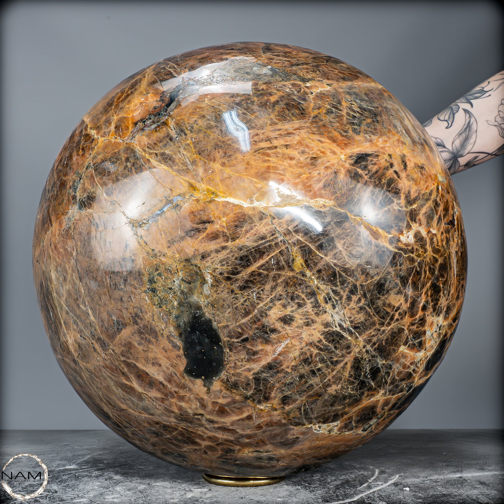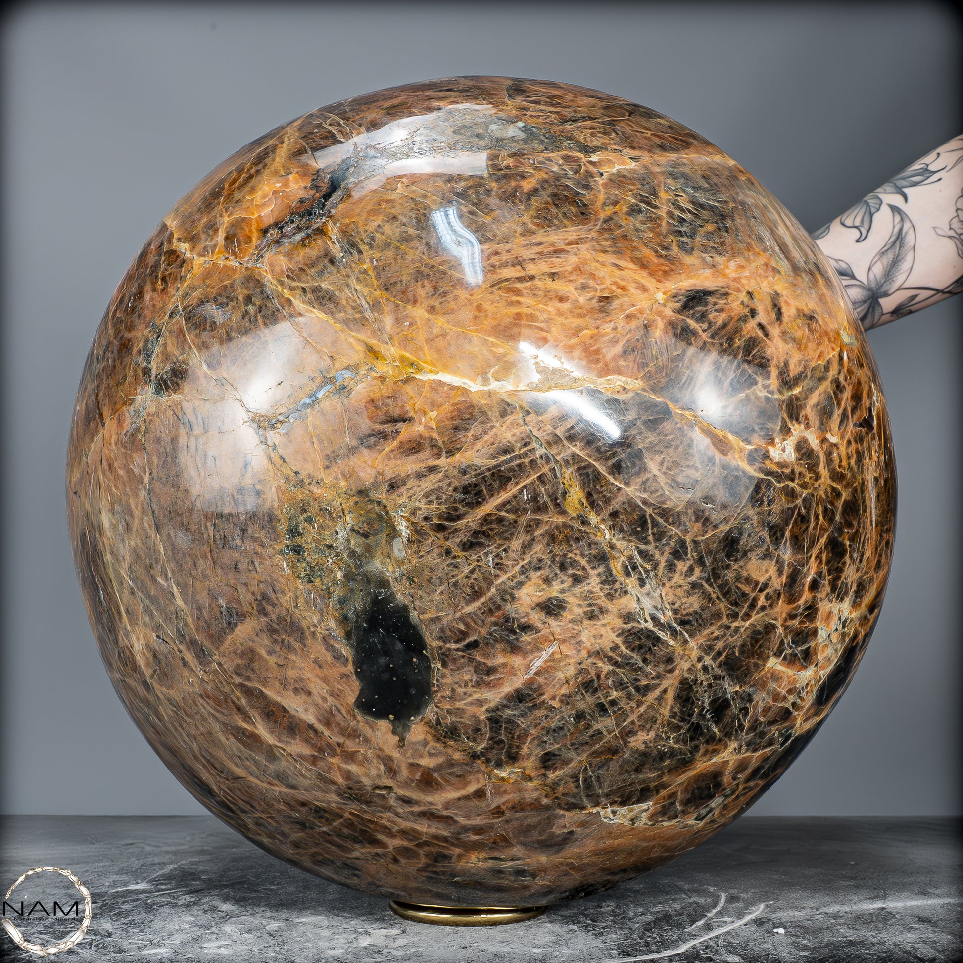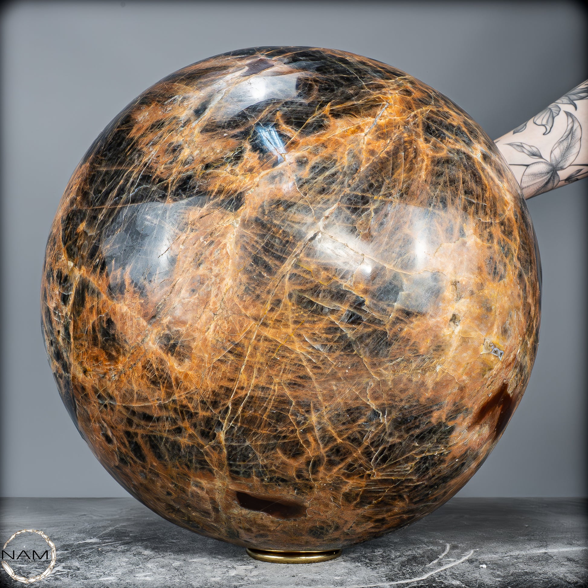 Durch ihre Größe und Qualität ist diese Mondstein-Kugel nicht nur ein dekoratives Highlight, sondern auch ein außergewöhnliches Unikat von Seltenheitswert. Solche Stücke sind nur äußerst selten auf dem Markt zu finden und stellen eine wahre Rarität für Liebhaber und Sammler dar.