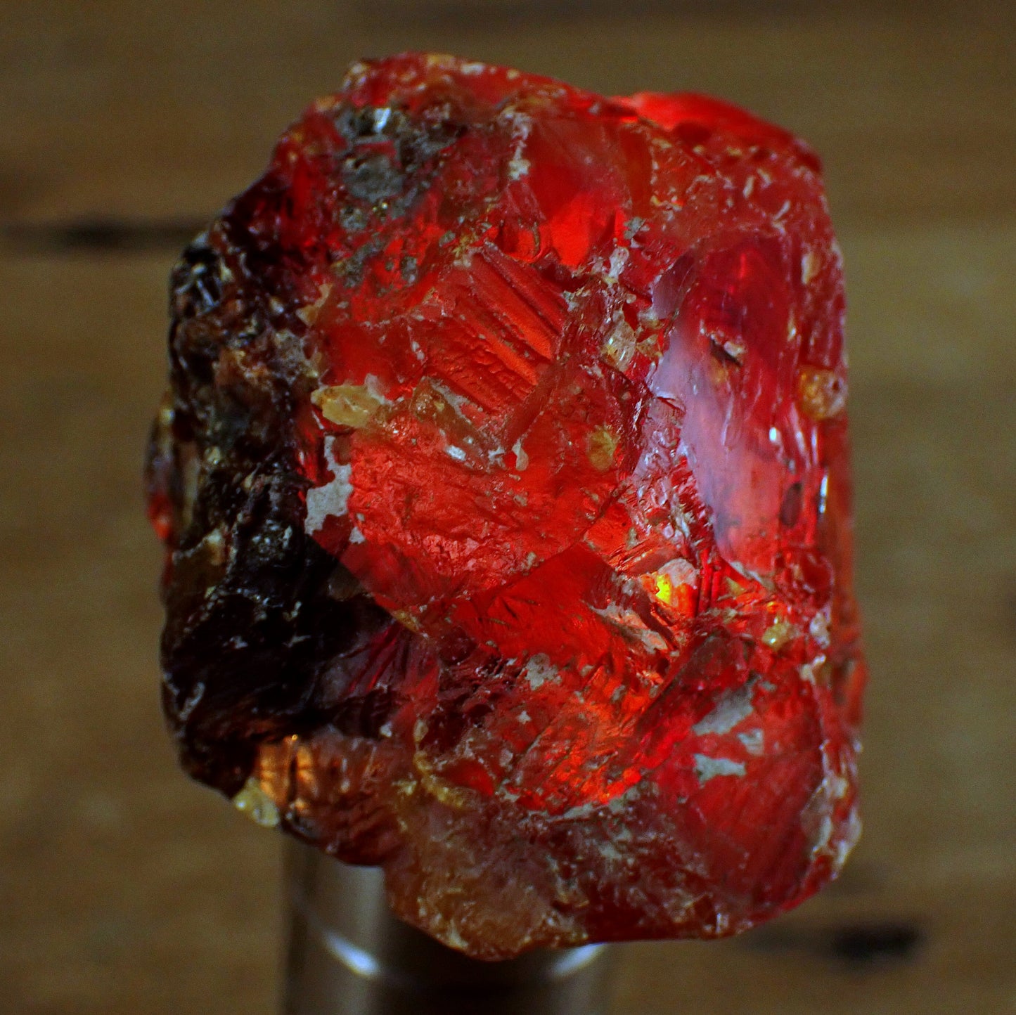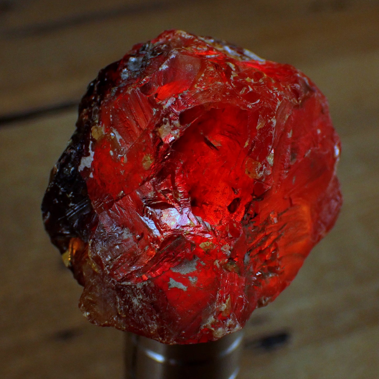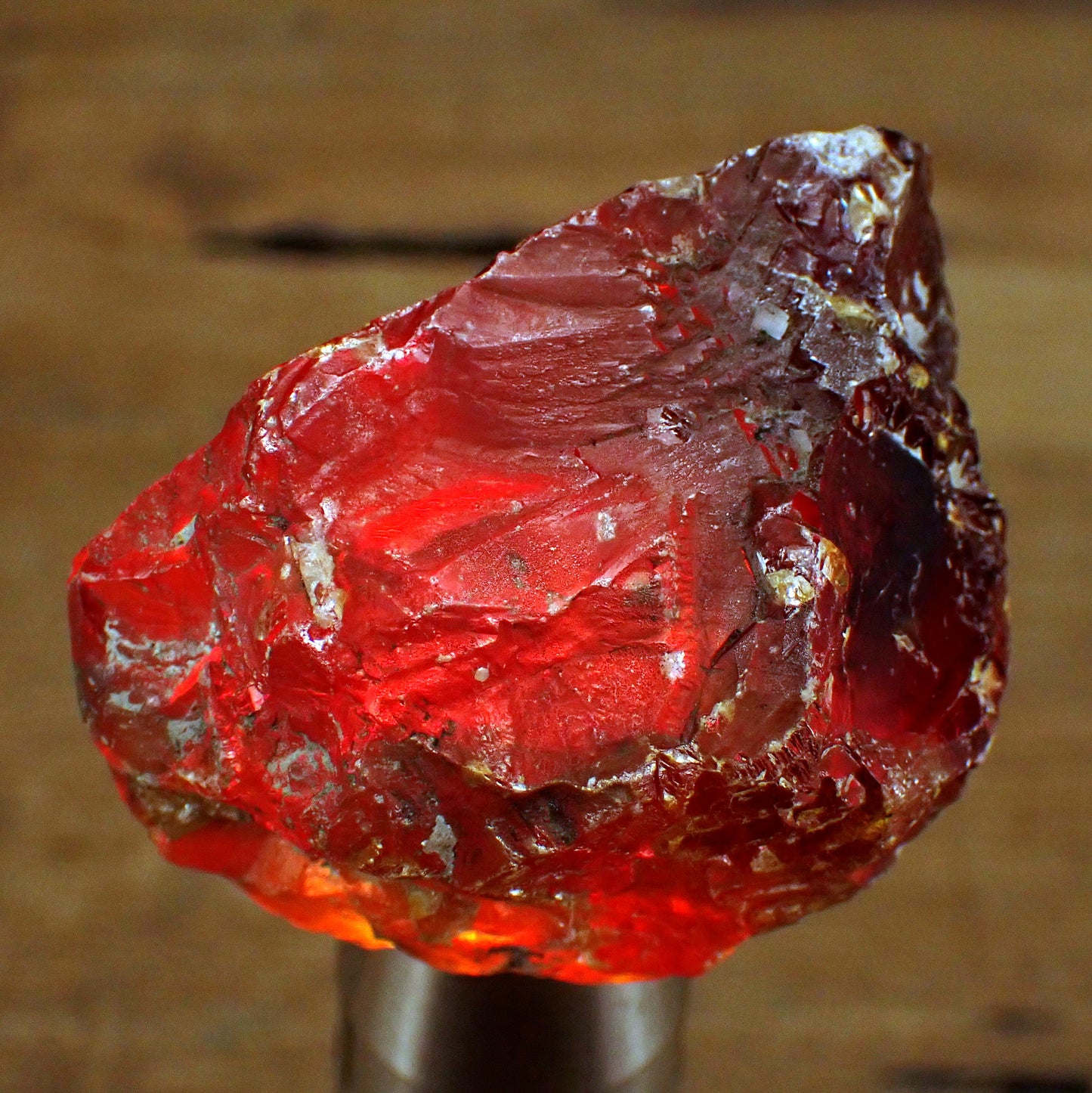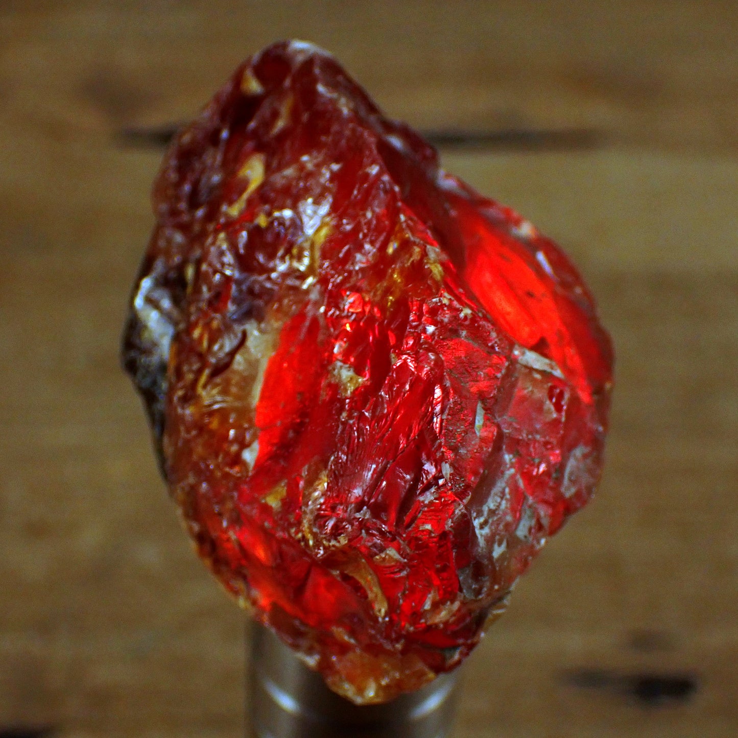 Glanz, lebendig, leuchtend orange, Tiefrot, gelb oder sogar MIDL-grün eine der ungewöhnlichsten von Aliva sind auch mit internem Feuer in verschiedenen Farbtönen und Obertönen vorhanden, mit einer großen Transparenz, um Einschlüsse und Blasen im Inneren des Steins sehen zu können.