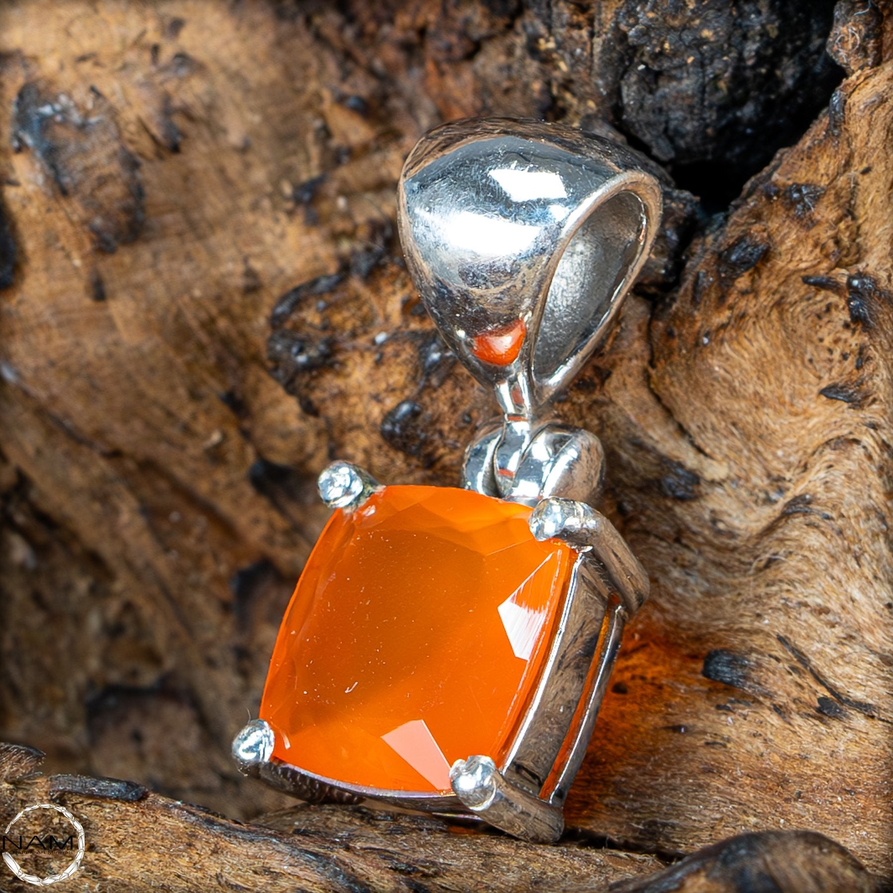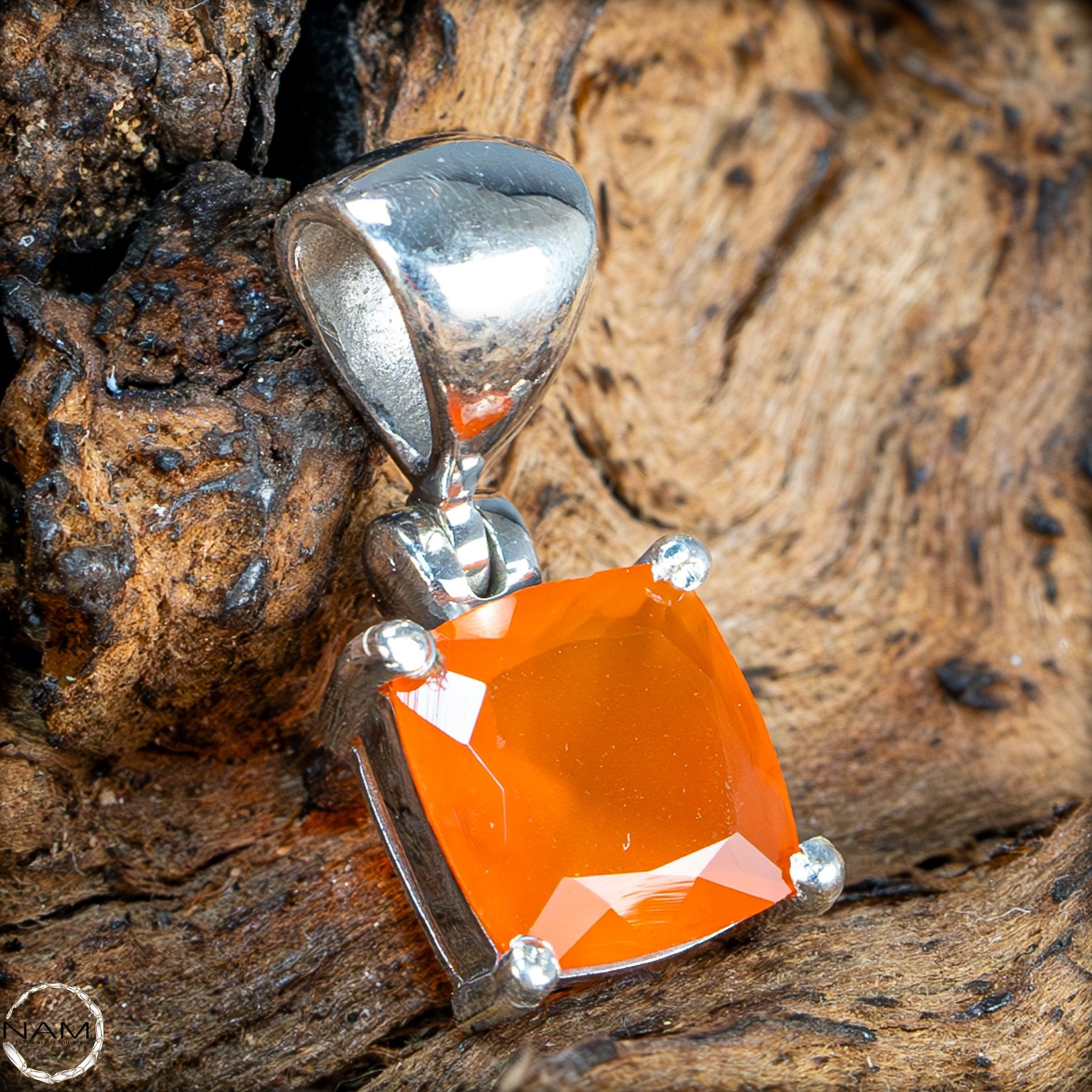 Dieser exquisite Feueropal-Anhänger besticht durch seine leuchtend orangefarbene Pracht, die in einem edlen, silbernen Rahmen perfekt zur Geltung kommt. Der rechteckige Edelstein mit präzisem Facettenschliff verleiht dem Anhänger eine beeindruckende Lichtreflexion, die die faszinierende Intensität des Steins hervorhebt. Die schlichte und dennoch elegante Silberfassung rundet das Design ab und sorgt für Stabilität und Komfort beim Tragen. Dieser Anhänger ist ein wahrer Hingucker und ein Symbol für Leidenschaft und Energie – ein ideales Schmuckstück für besondere Anlässe oder um Ihrem täglichen Stil einen Hauch von Luxus zu verleihen.