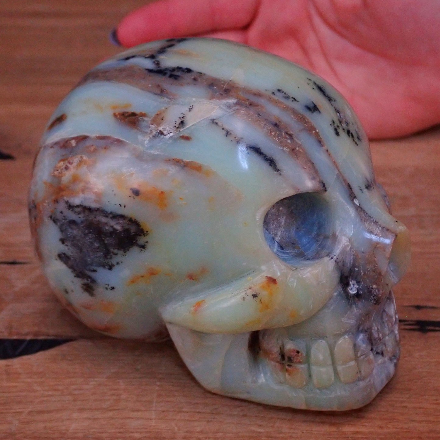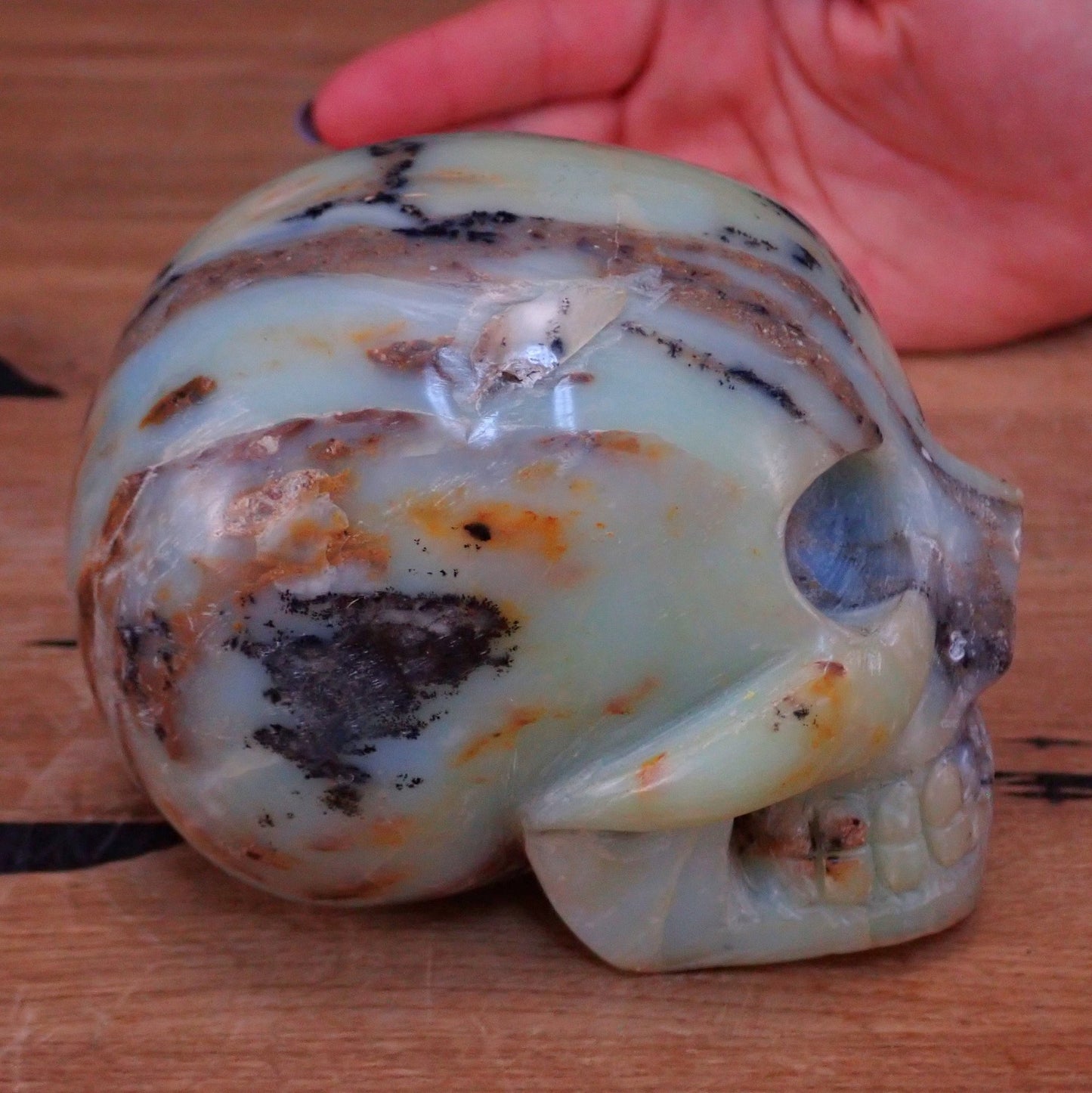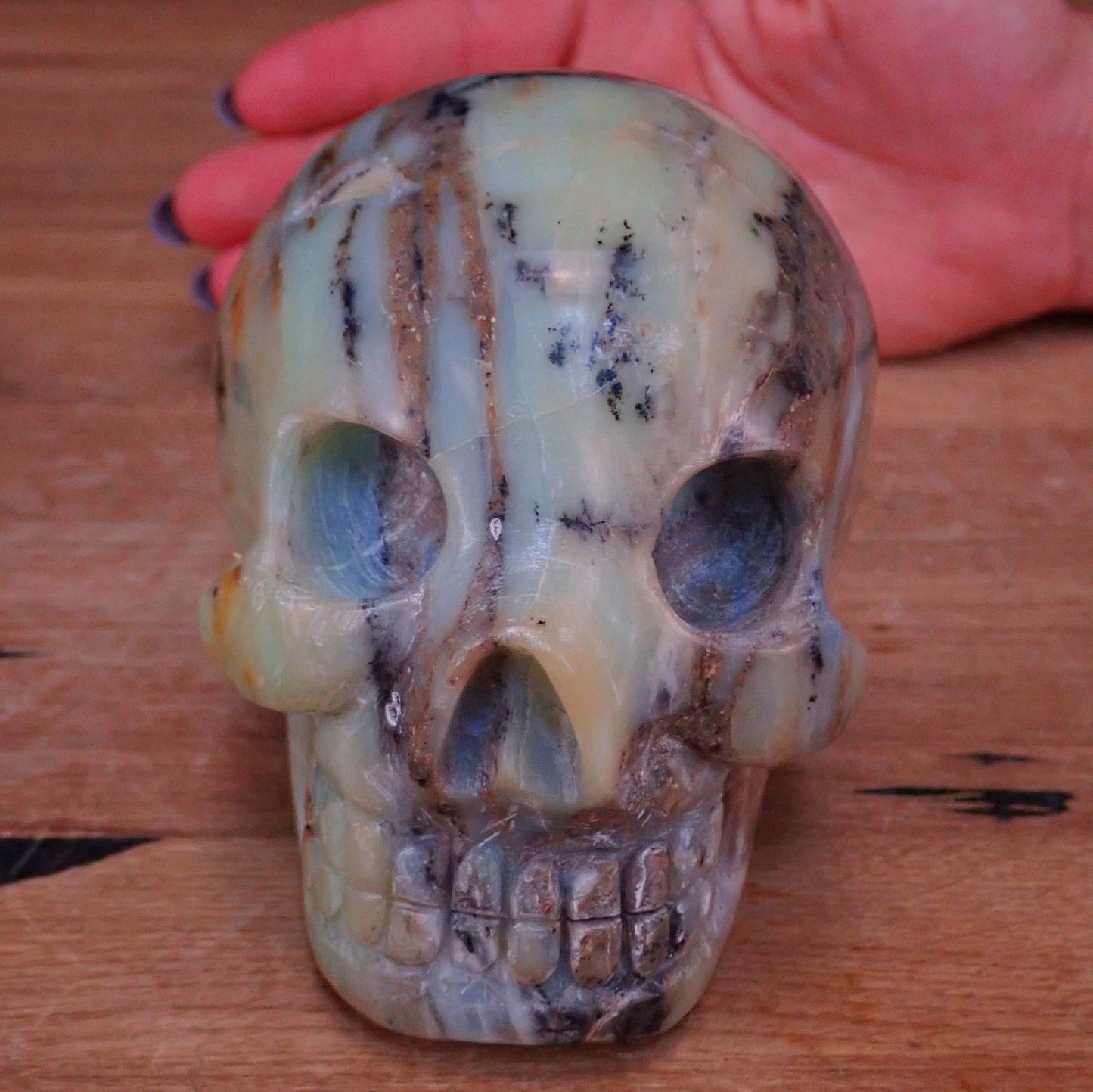 Seltener Blau-Grüne-Schwarzer Opal Schädel - Totenkopf - 978,24g