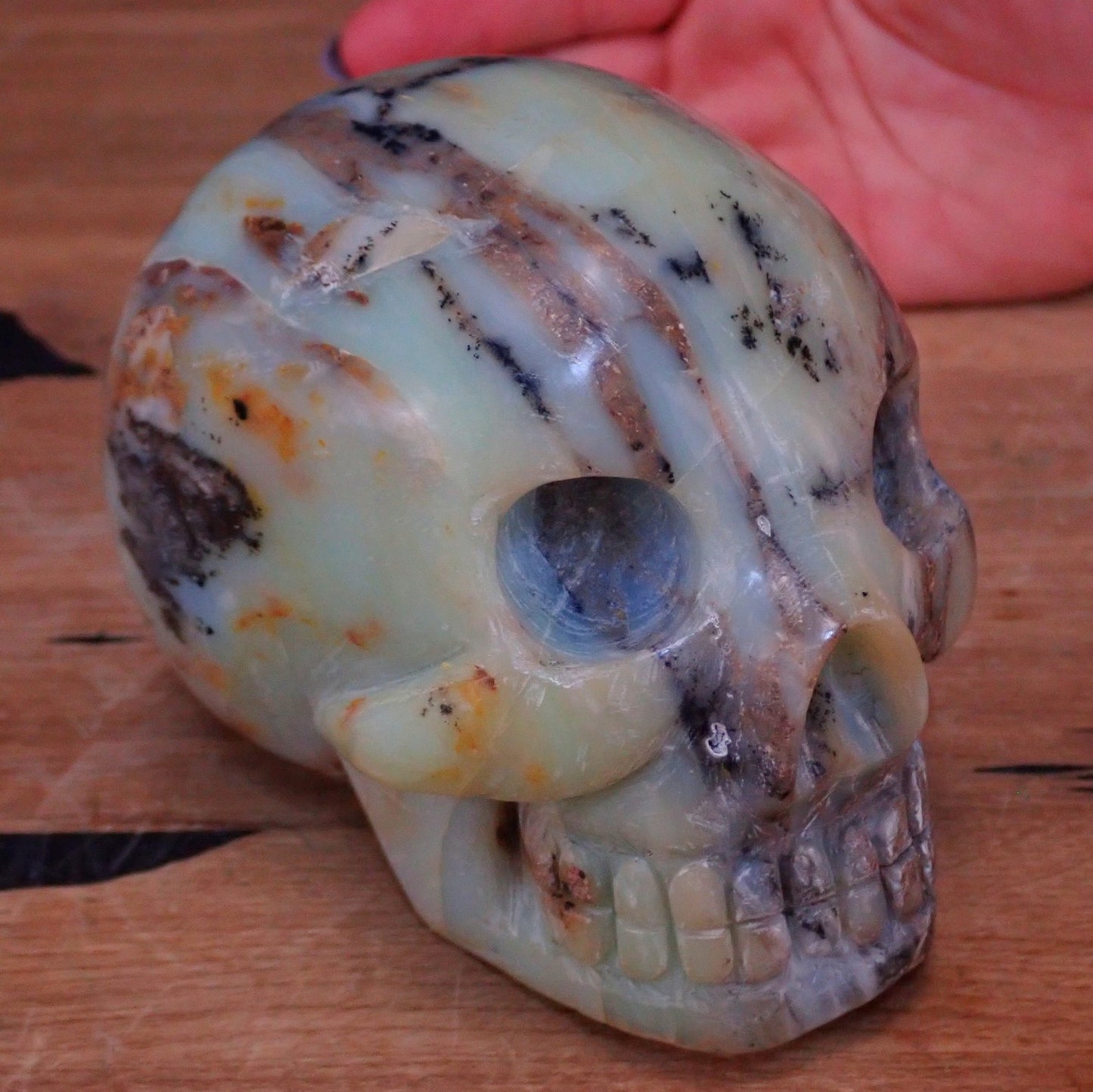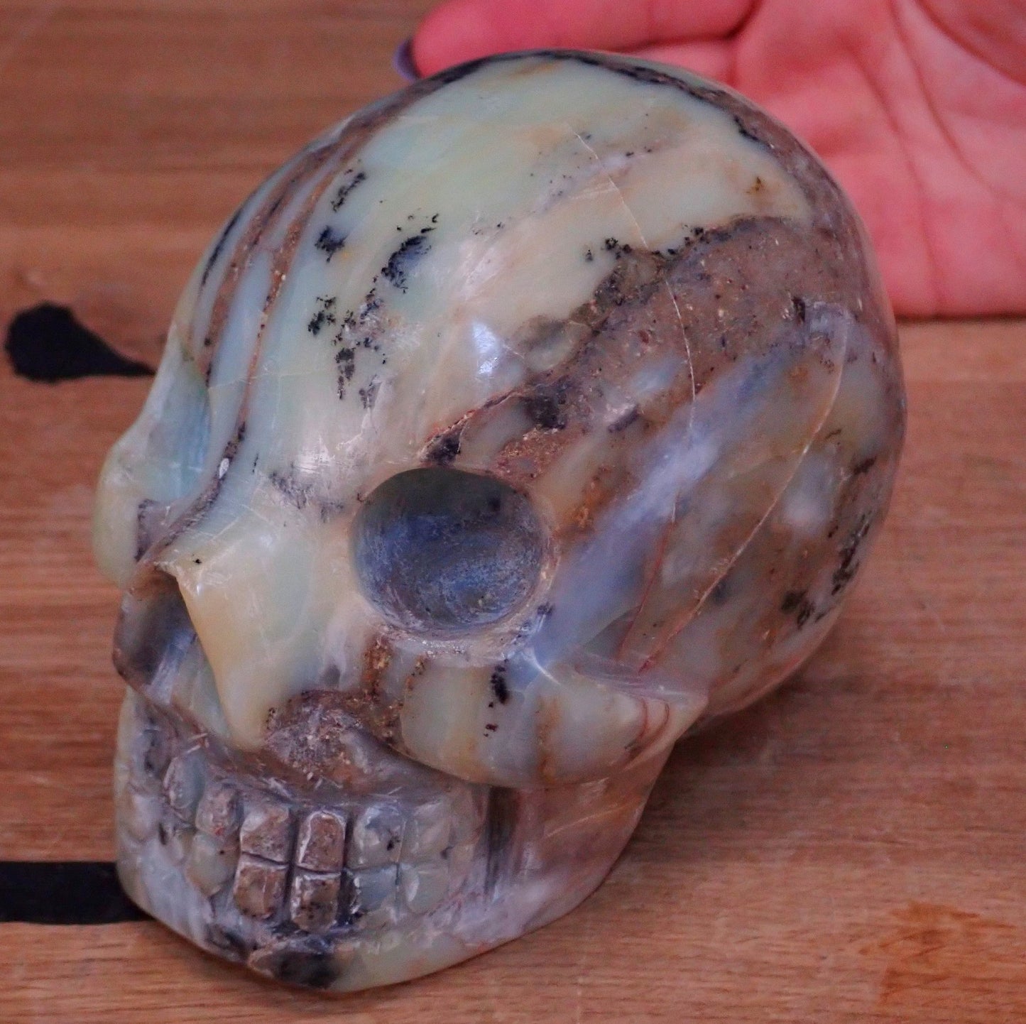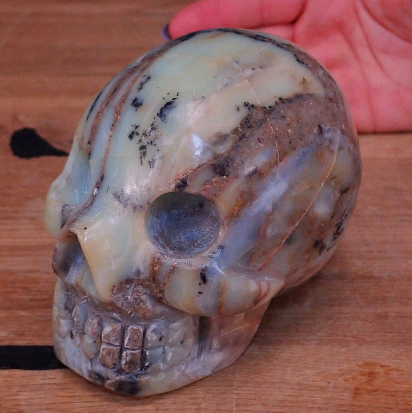 Seltener Blau-Grüne-Schwarzer Opal Schädel - Totenkopf - 978,24g