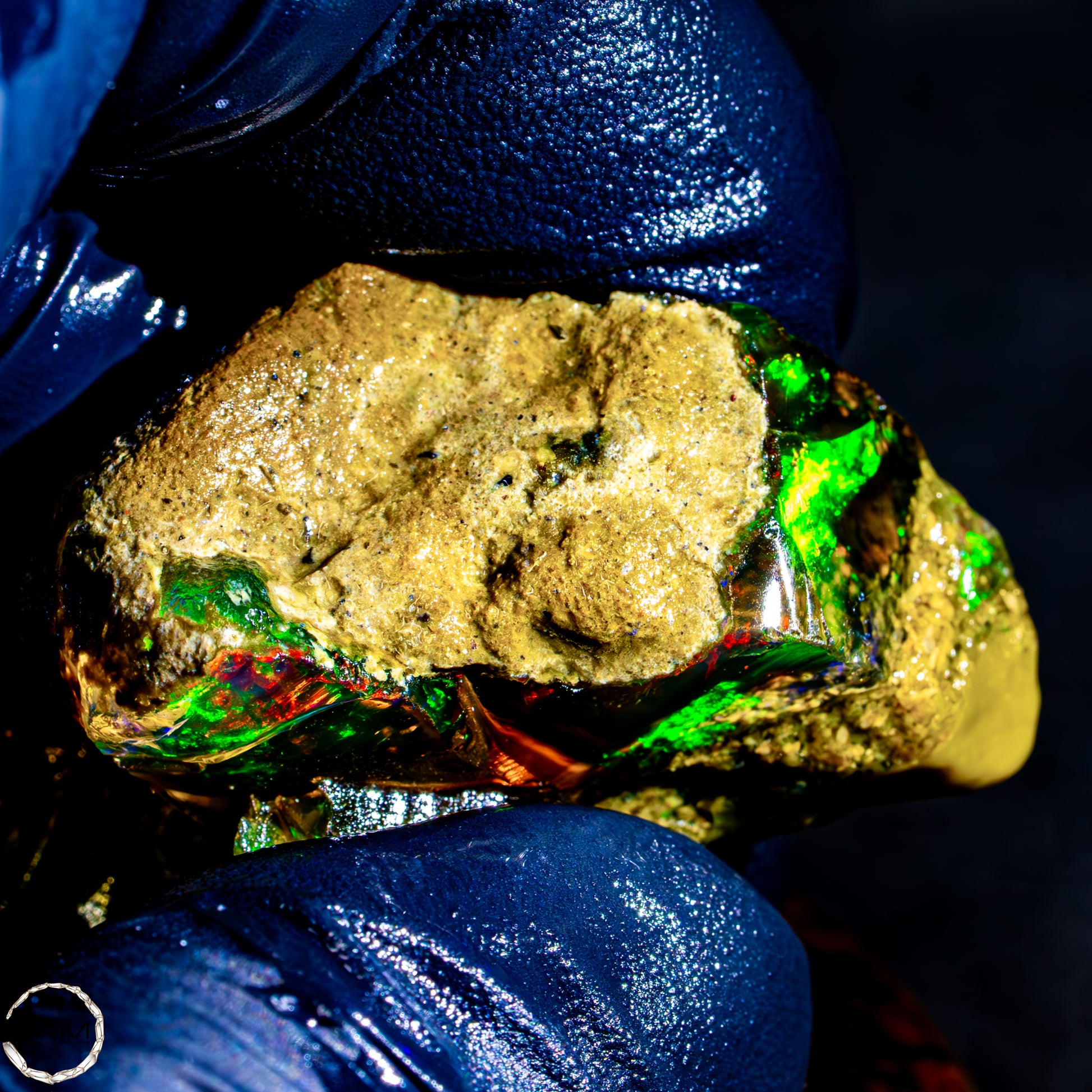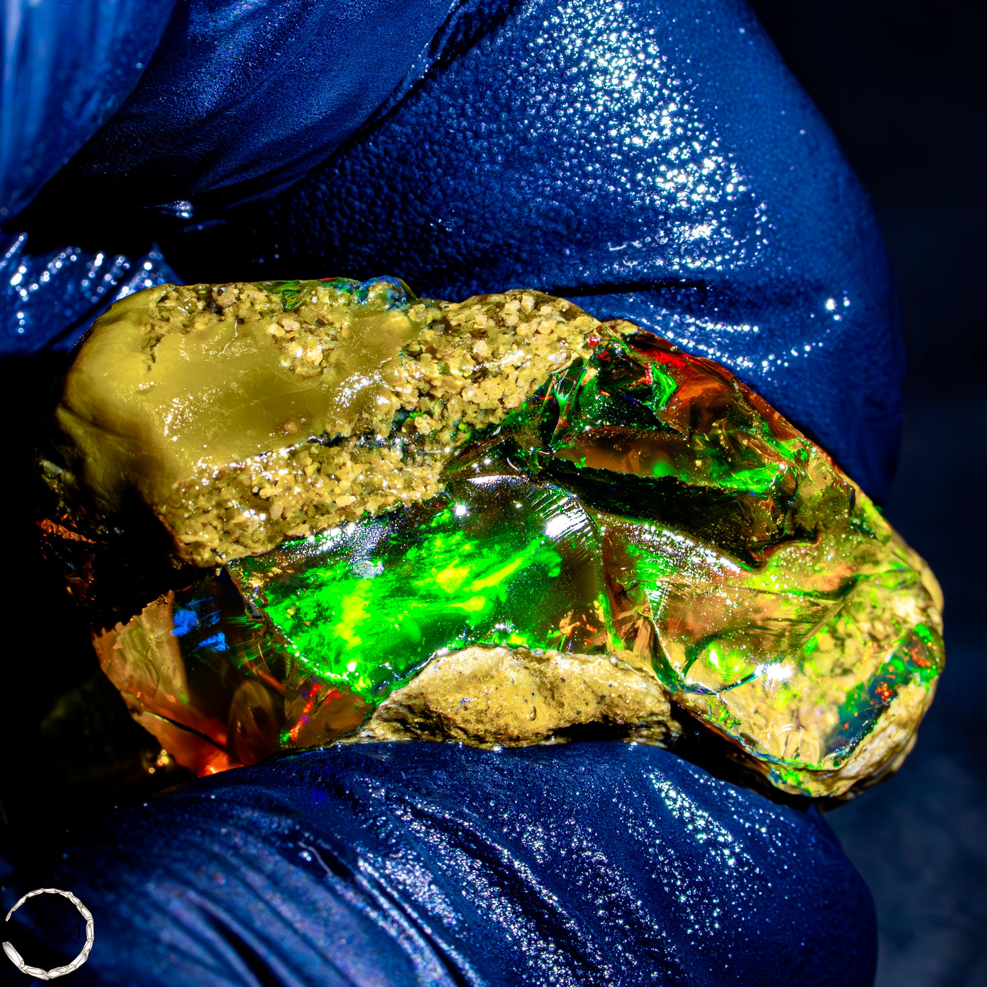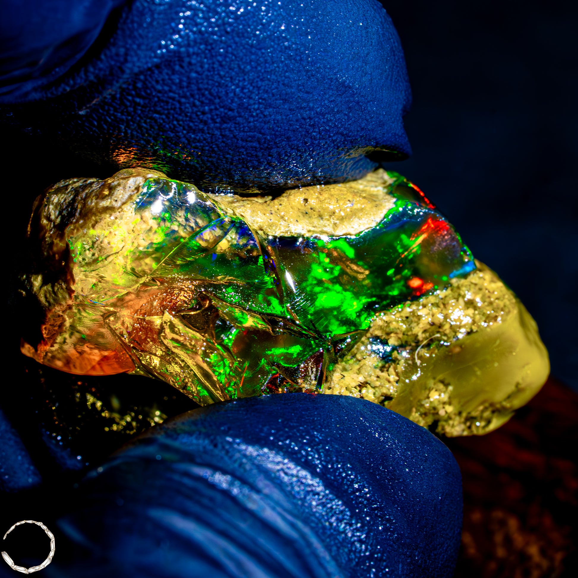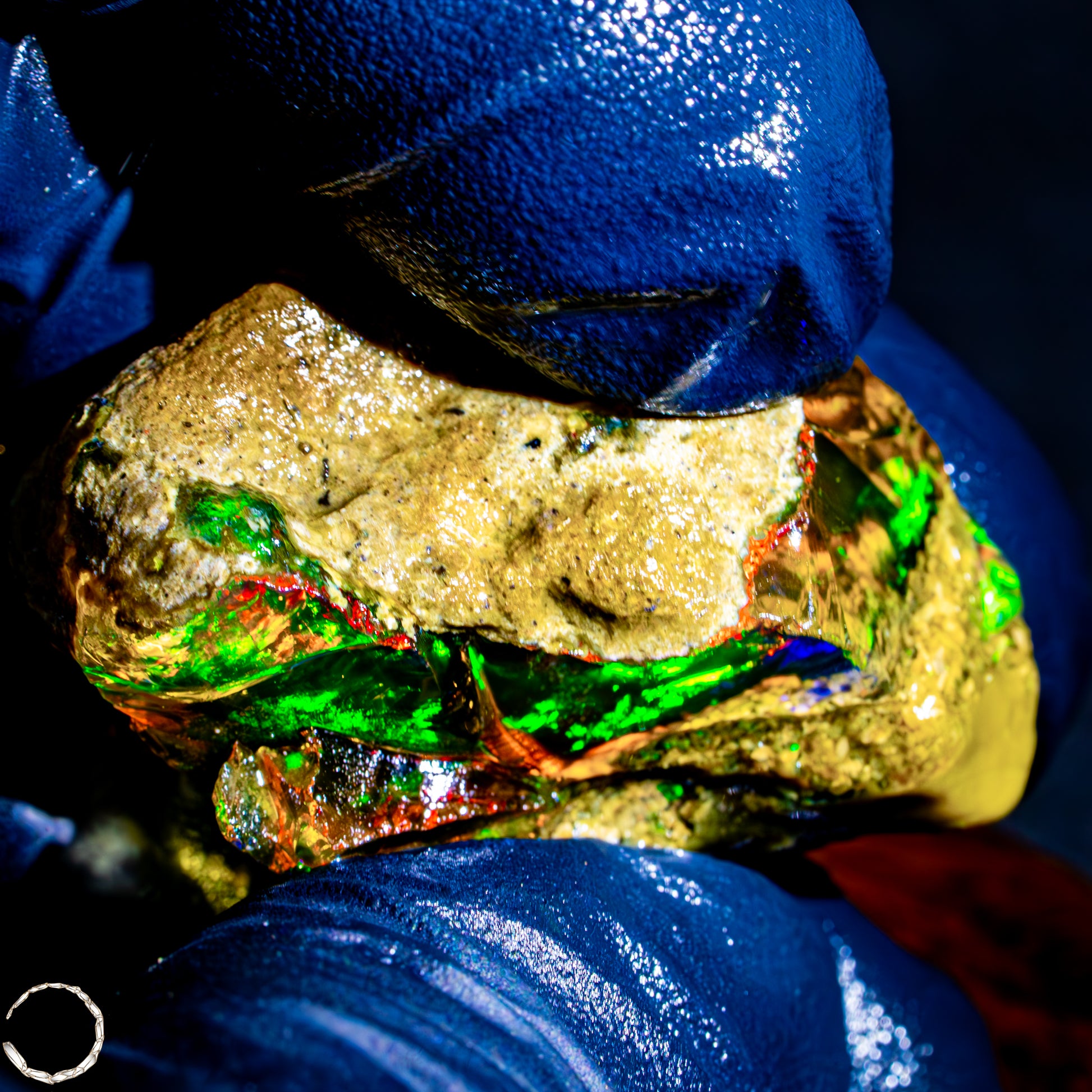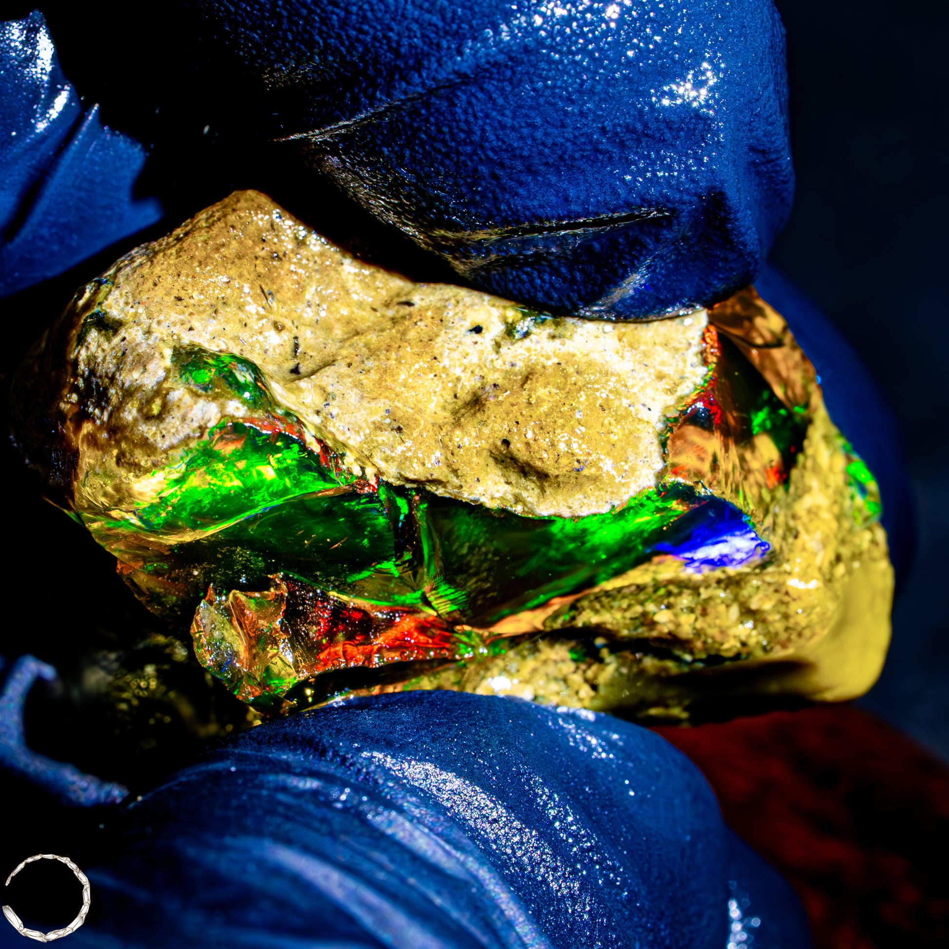 Dieser spektakuläre Kristall-Opal-Rohstein zeigt ein beeindruckendes Farbspiel in intensiven Gelb-, Orange-, Grün- und Rottönen. Das transparente bis transluzente Material wirkt wie flüssiges Feuer und offenbart eine faszinierende Tiefe. Die schillernden Farben scheinen aus dem Inneren heraus zu leuchten und wechseln je nach Lichteinfall auf magische Weise. Die natürlichen Bruchkanten und die erhaltene Mutterstein-Partie am oberen Rand verleihen dem Stück seinen authentischen, makellosen Charakter. Ein faszinierendes Sammlerstück für Liebhaber außergewöhnlicher Edelsteine.